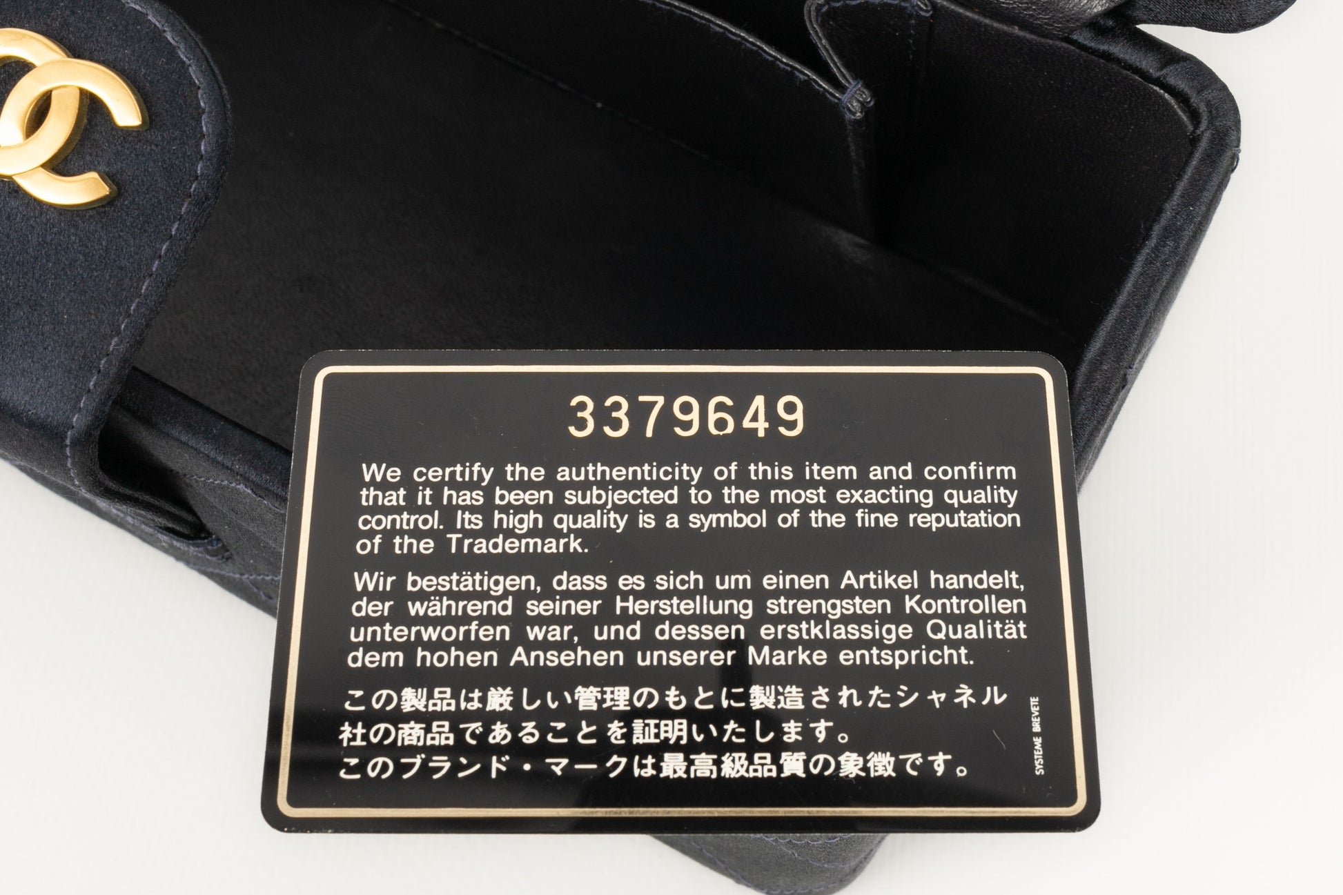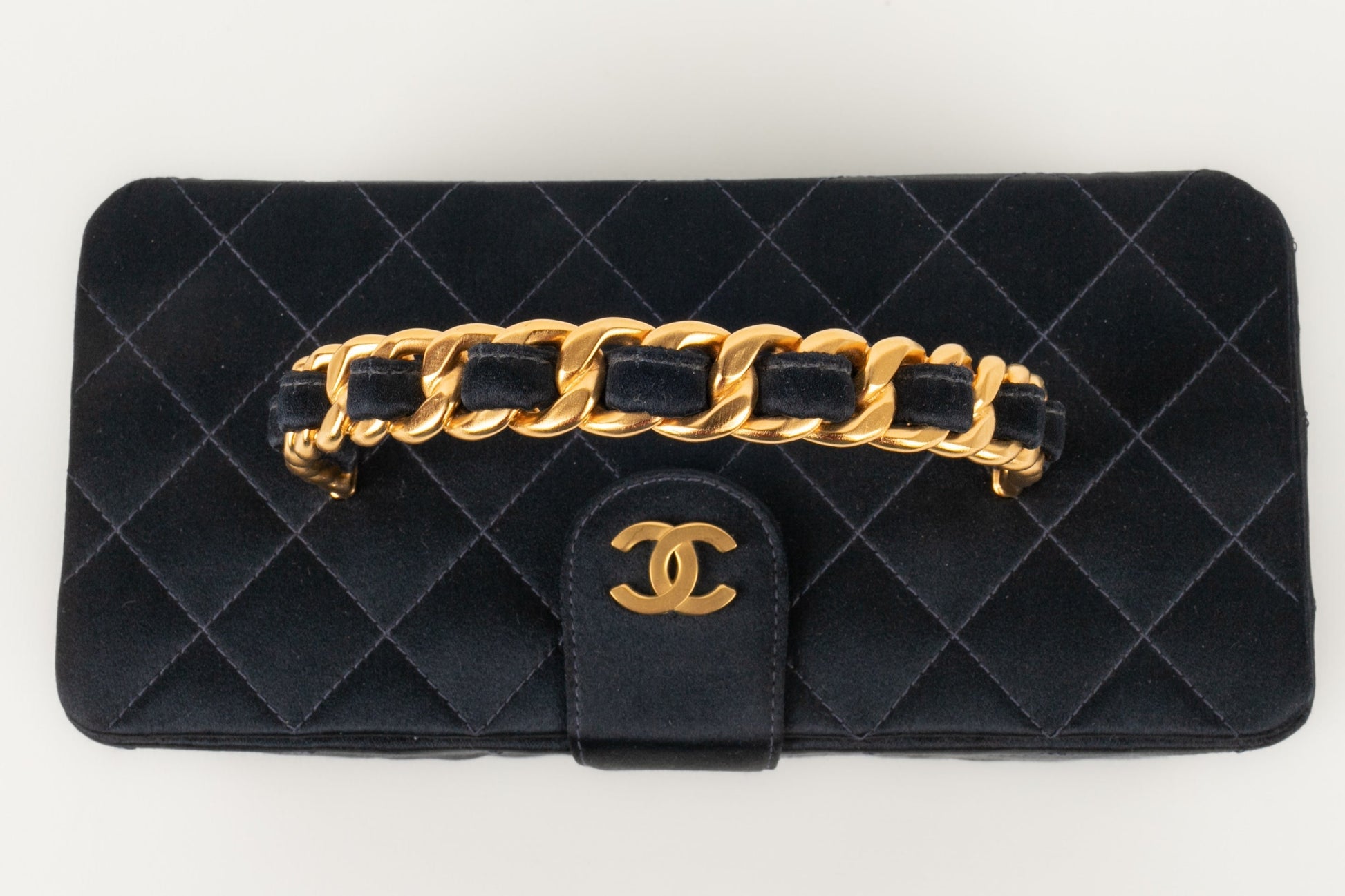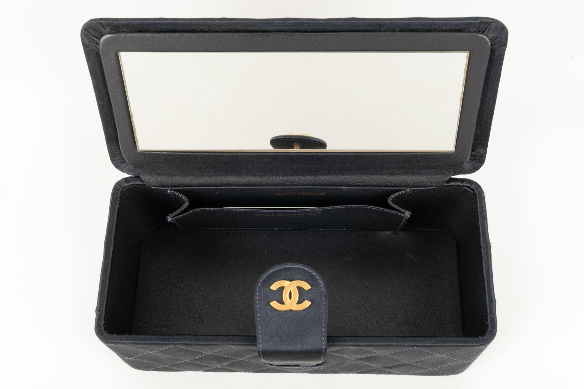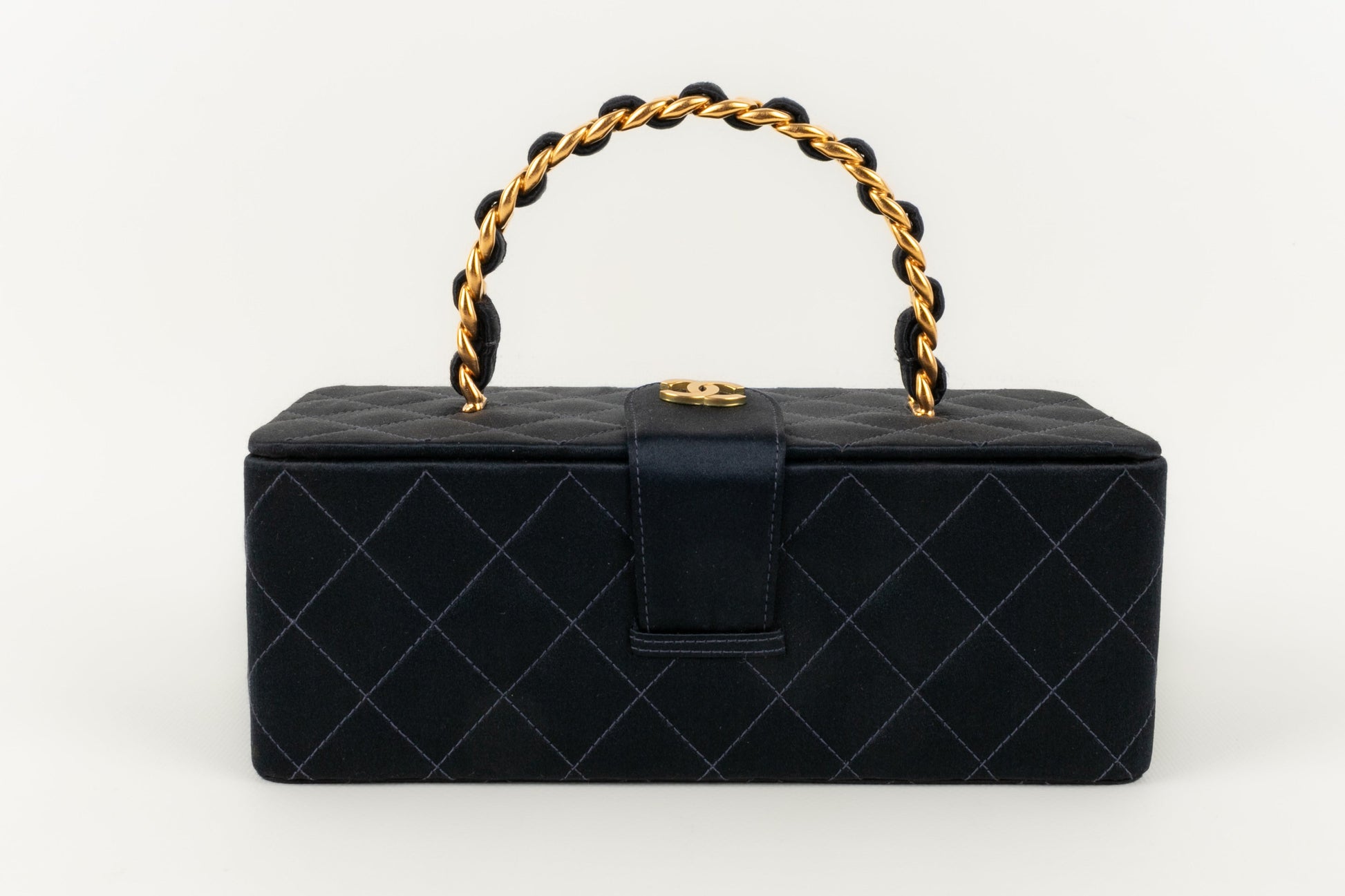 CHANEL - (Made in France) Sac en satin de soie matelassé, attributs en métal doré. Numéro de série présent. Collection 1994/1996.