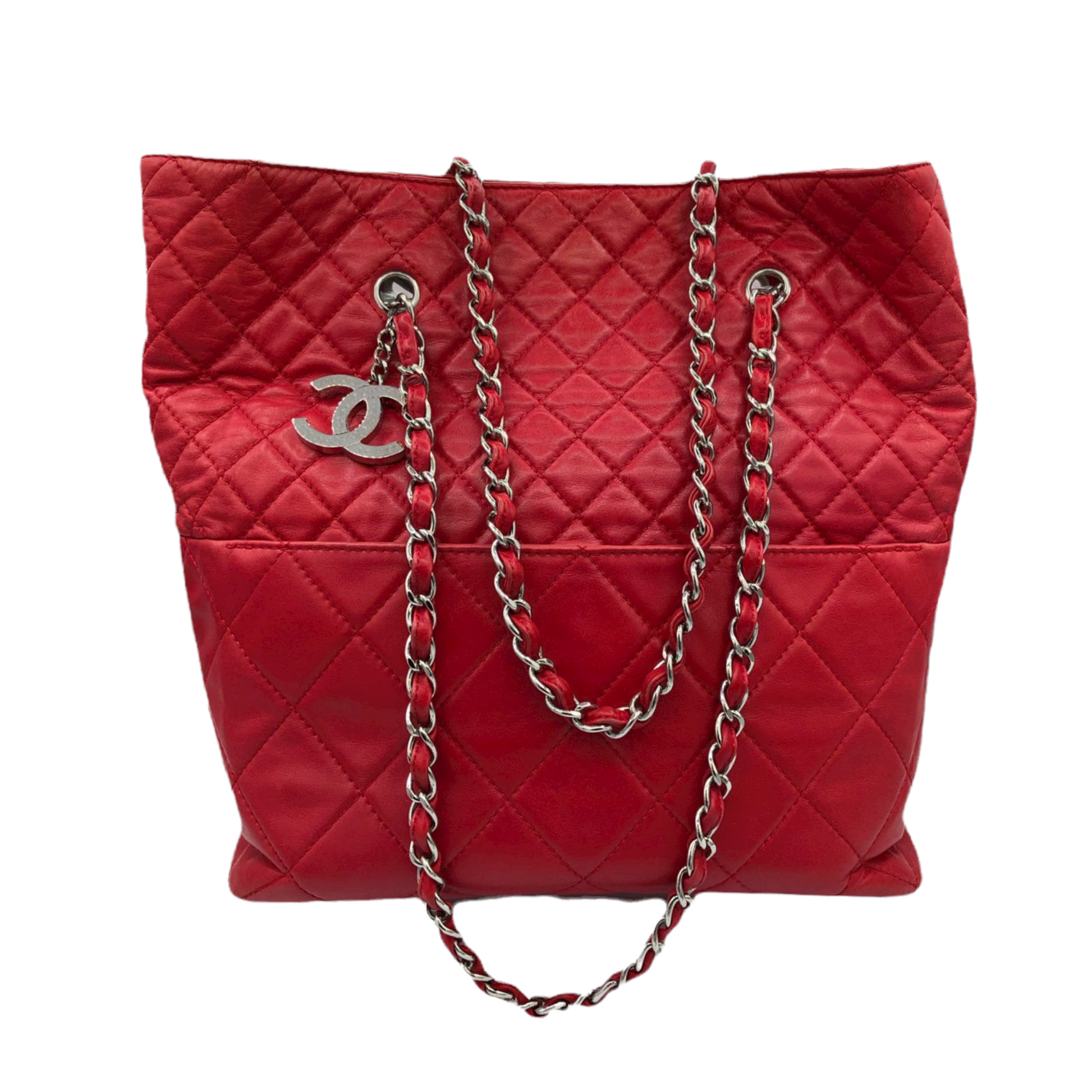 � DESCRIPTION: Chanel tote bag -�Chanel chain handle 68cm - Chanel logo - Closing with a clip