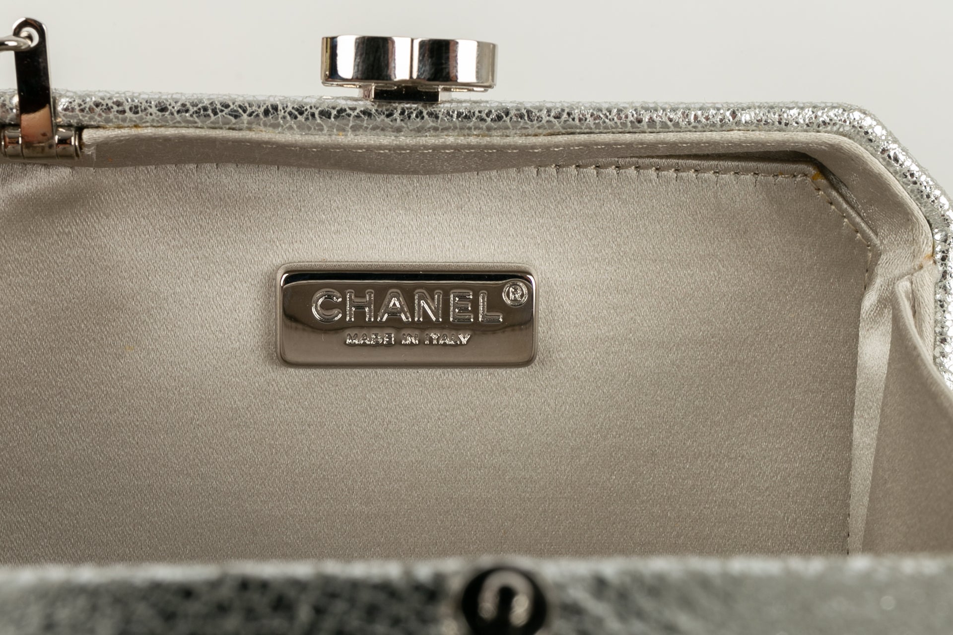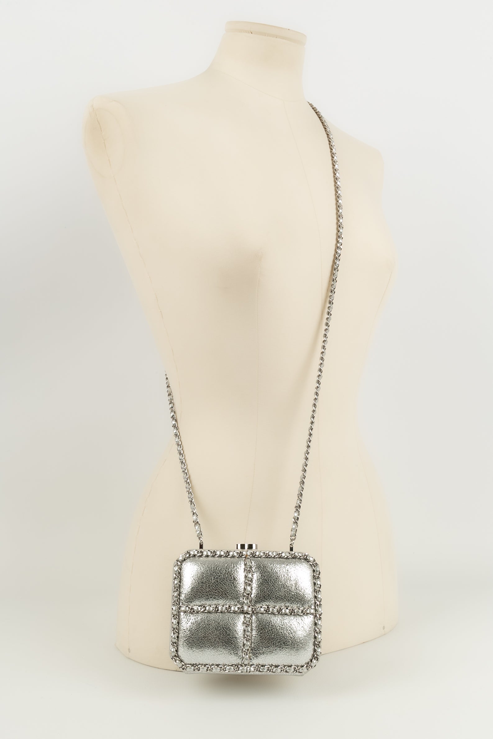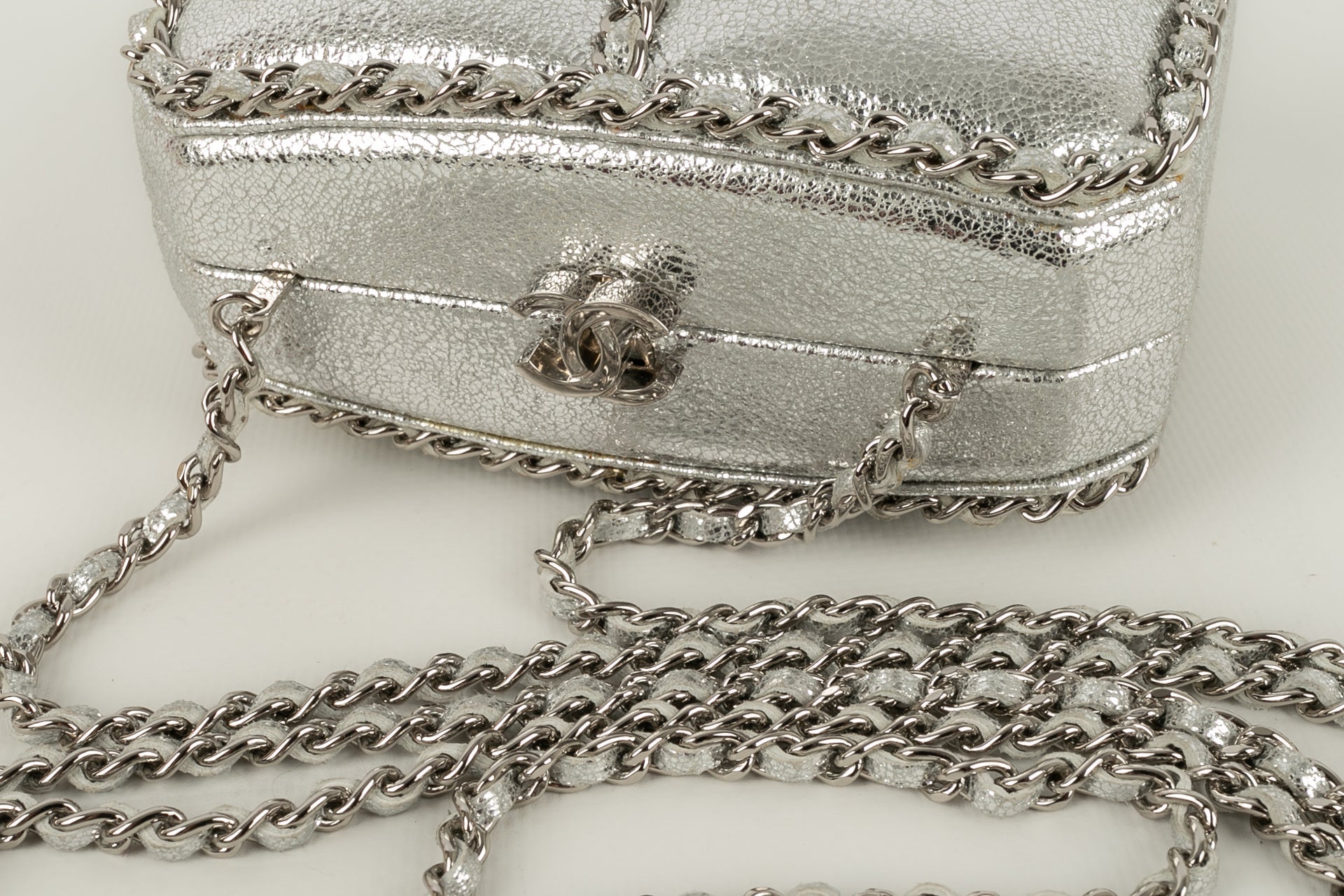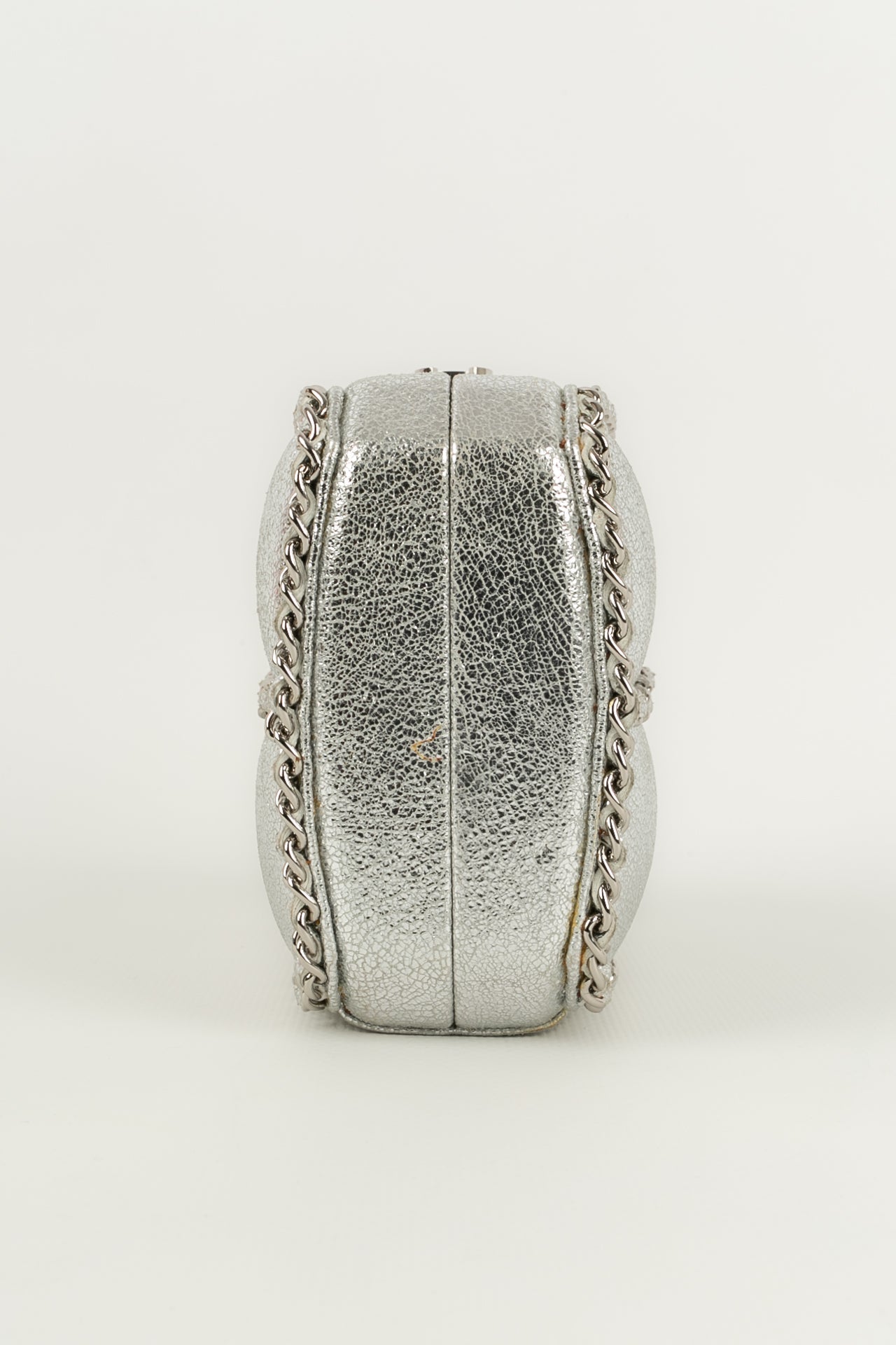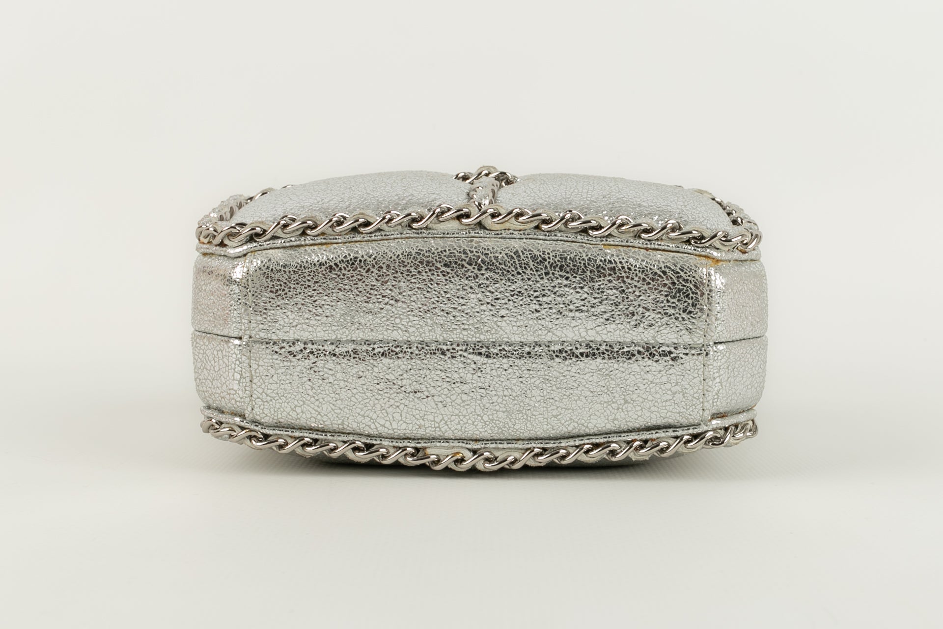 CHANEL -(Made in Italy) Sac � bandouli�re en cuir et m�tal argent�. Collection 2011.