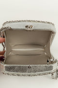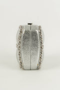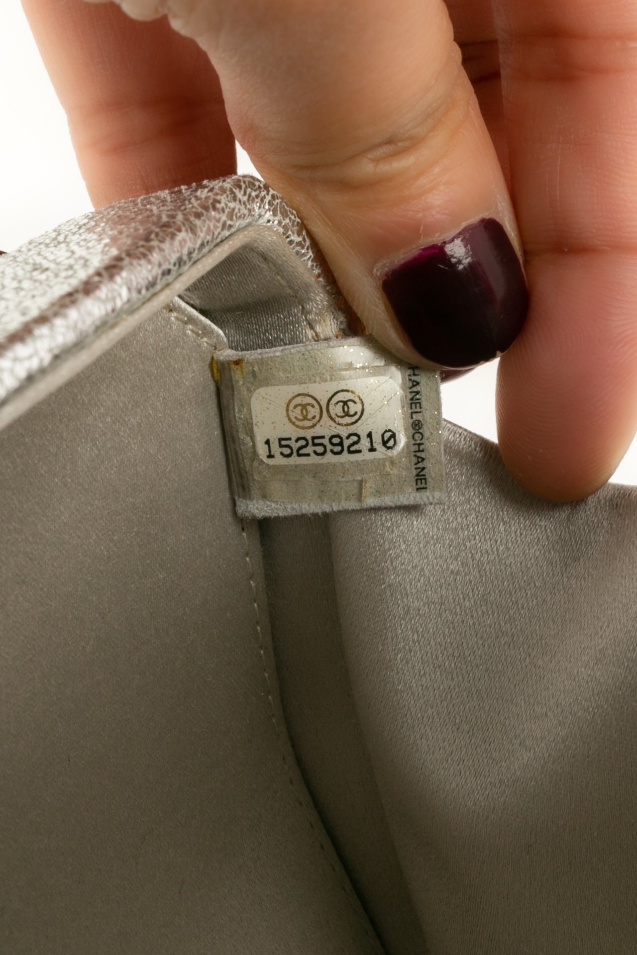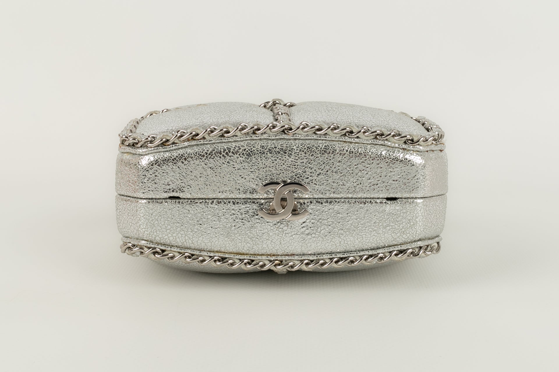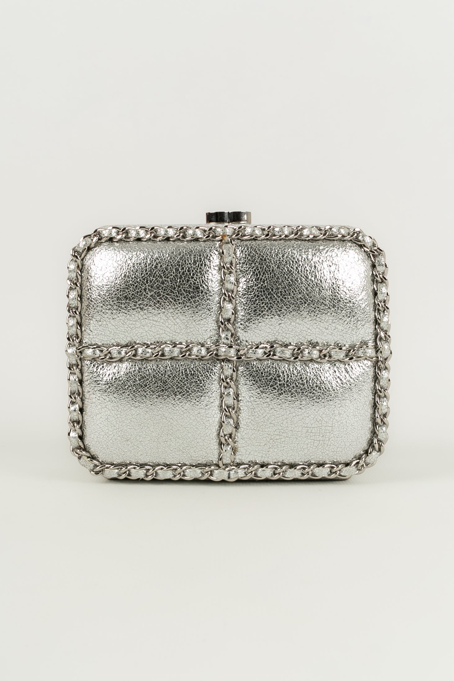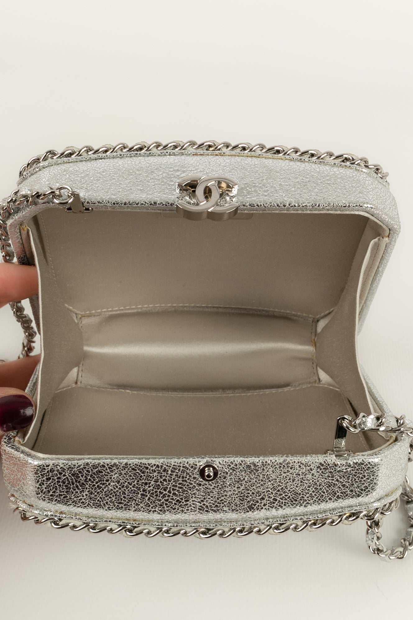 CHANEL -(Made in Italy) Sac � bandouli�re en cuir et m�tal argent�. Collection 2011.