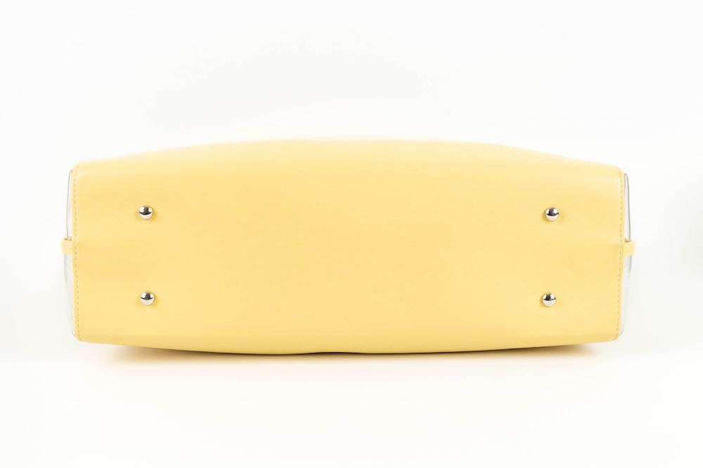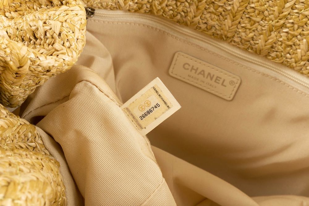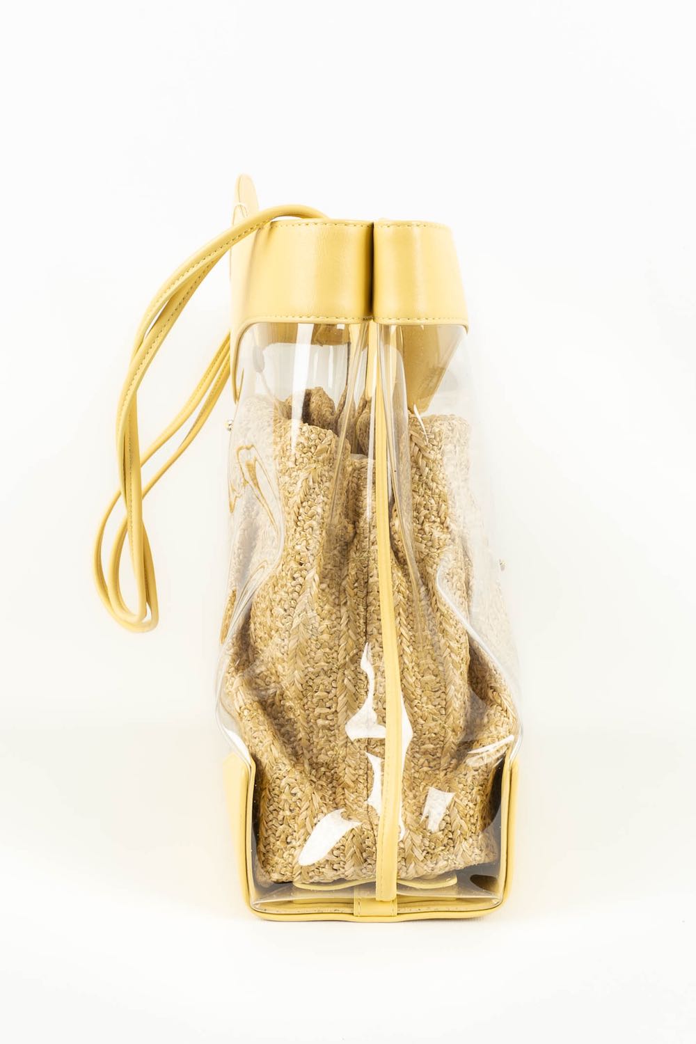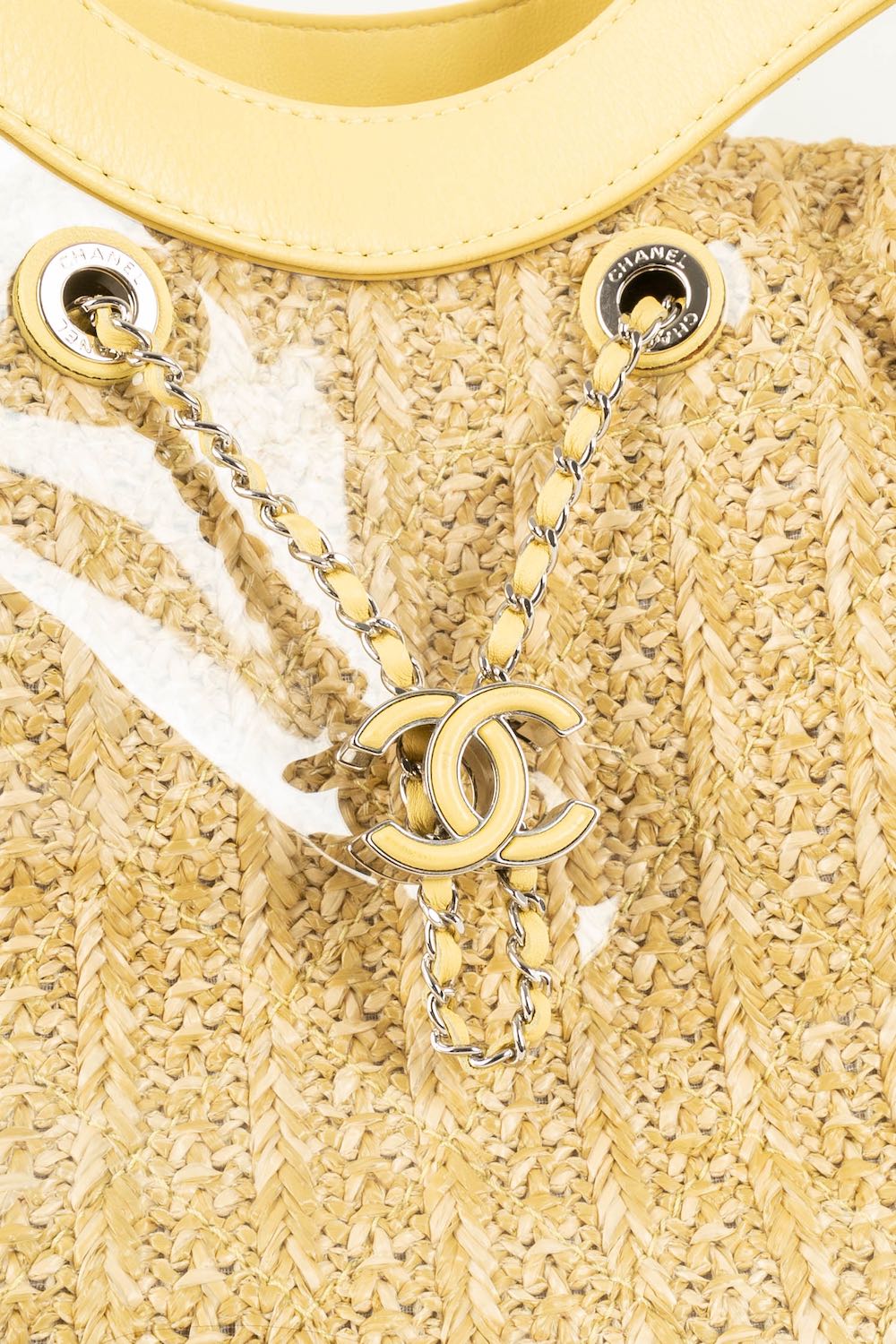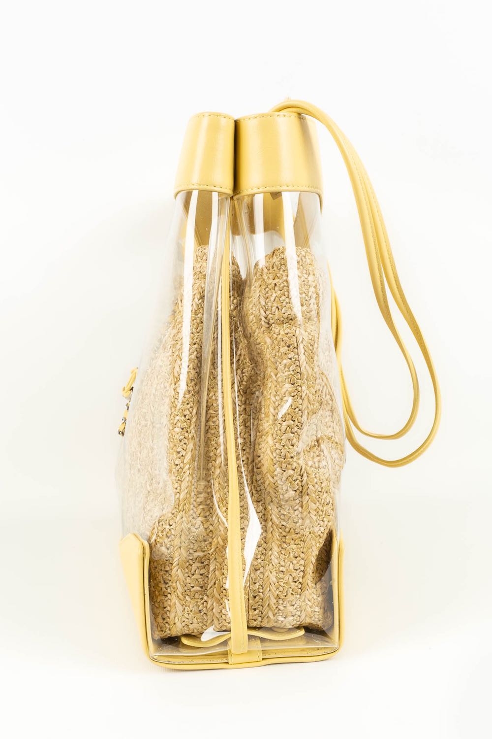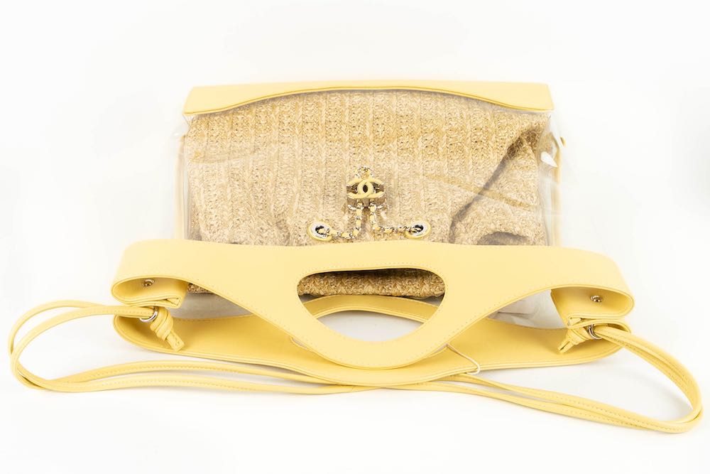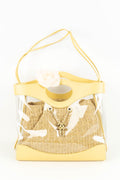CHANEL - (Made in Italy) Sac en cuir jaune, pvc et int�rieur en raphia. Attributs en m�tal argent�. Num�ro de s�rie pr�sent. Collection 2018/2019.