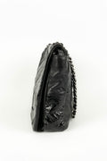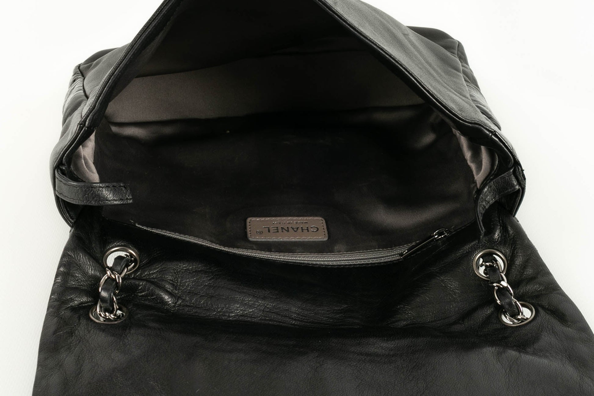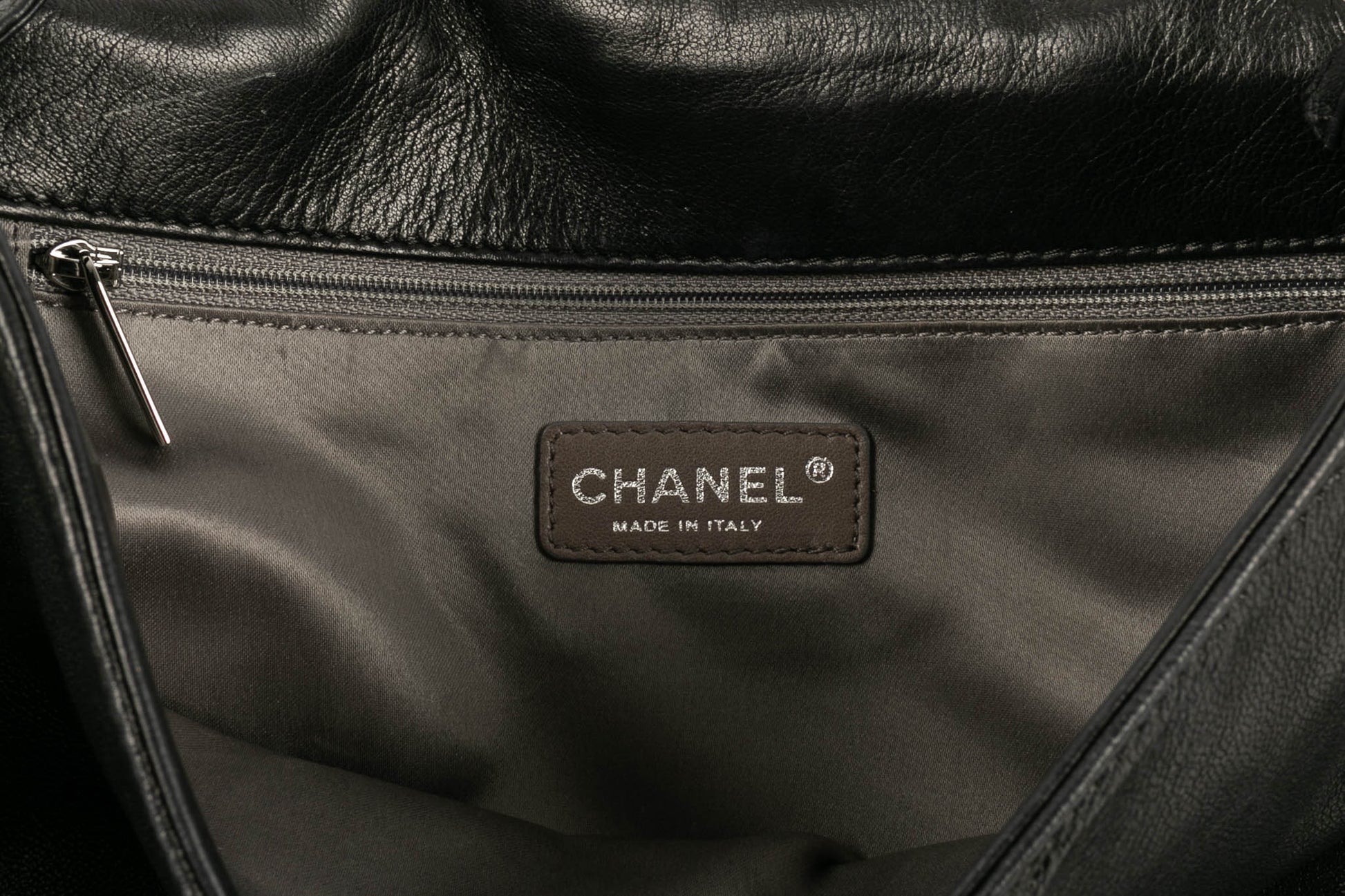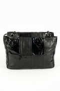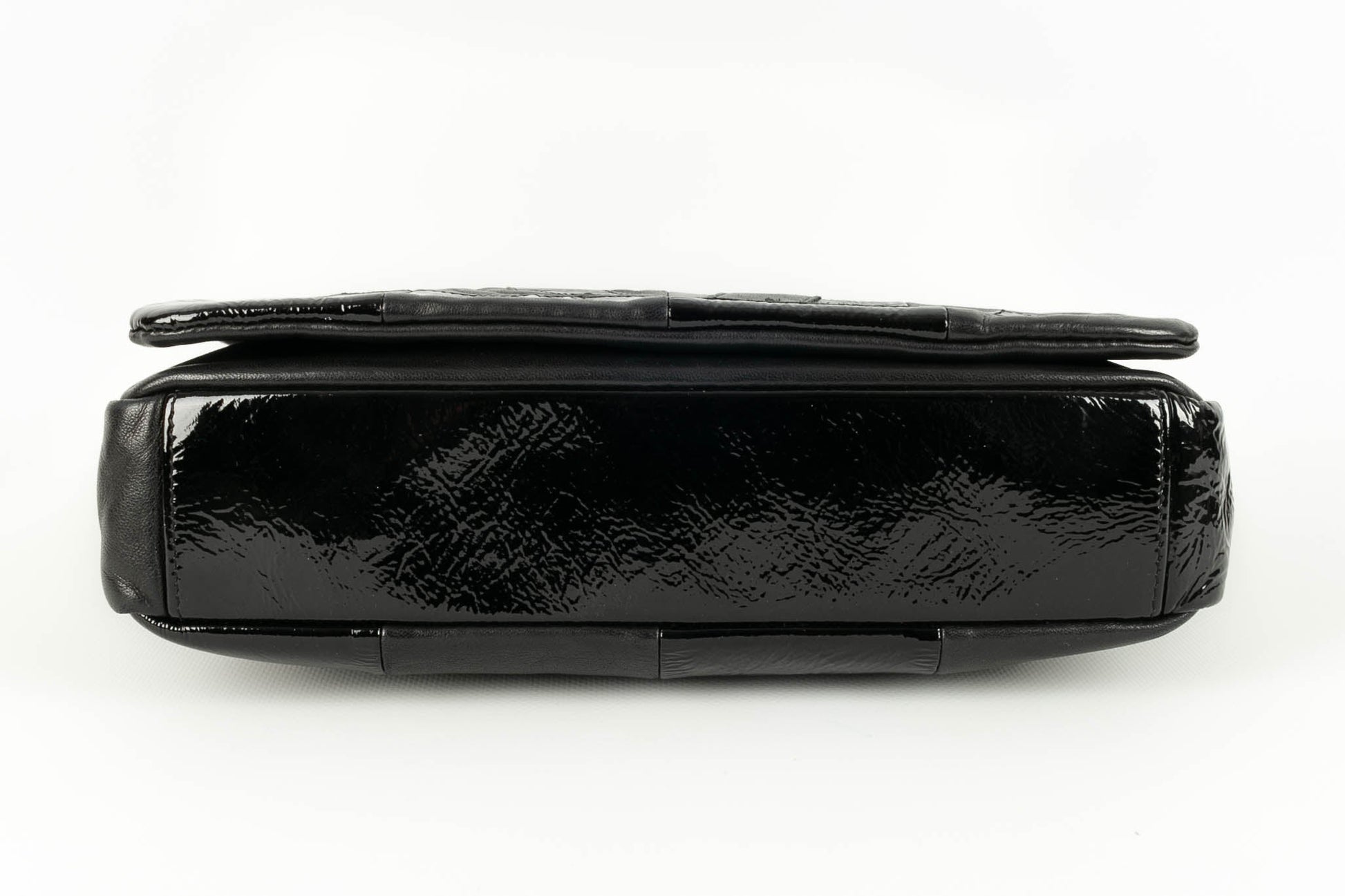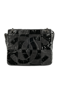 CHANEL - (Made in Italy) Sac patchwork en cuir et cuir verni noir. Attributs en m�tal argent�. Num�ro de s�rie pr�sent. Collection 2006/2007. A signaler, rares marques sur le cuir et le satin de la doublure.