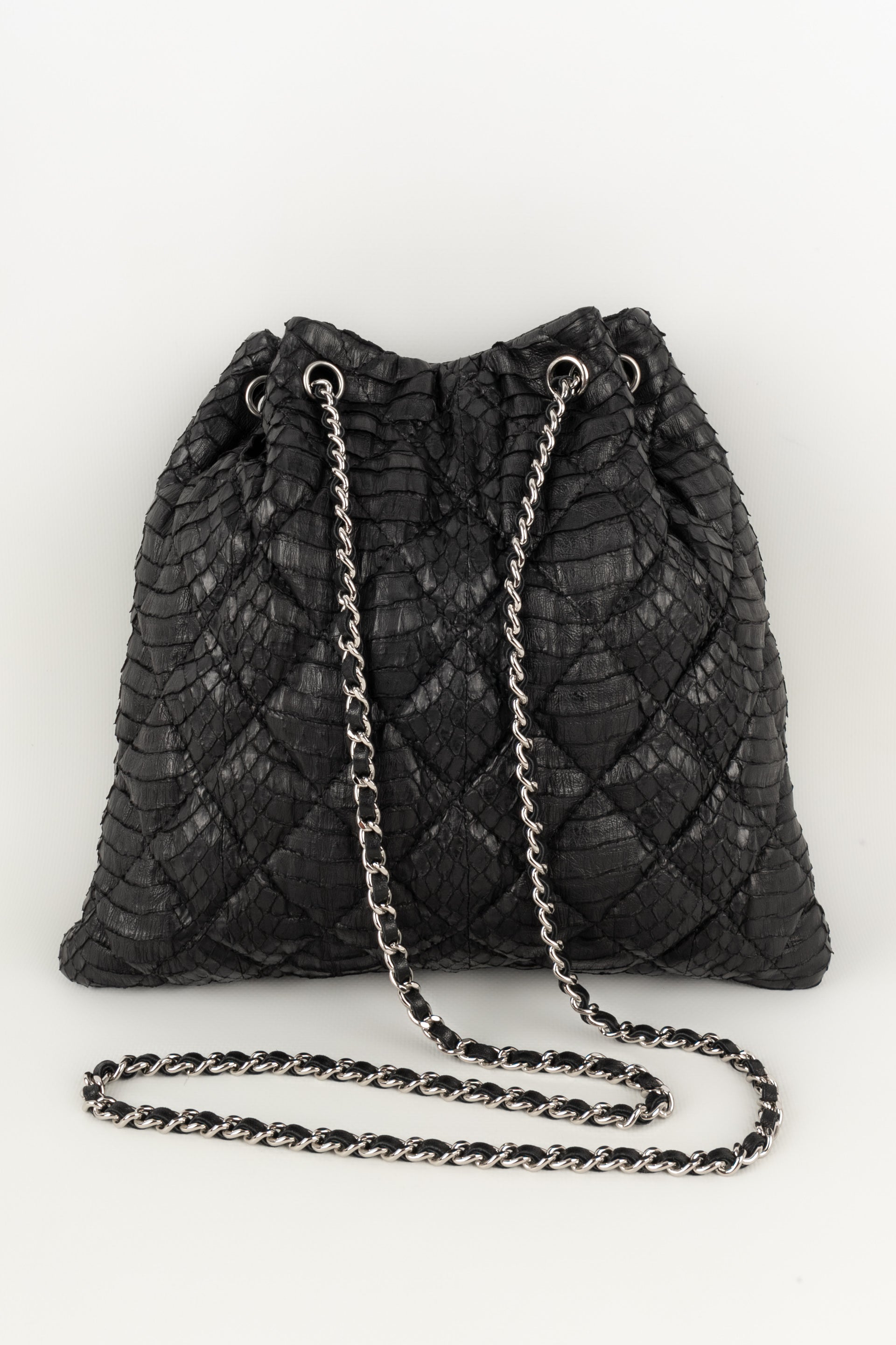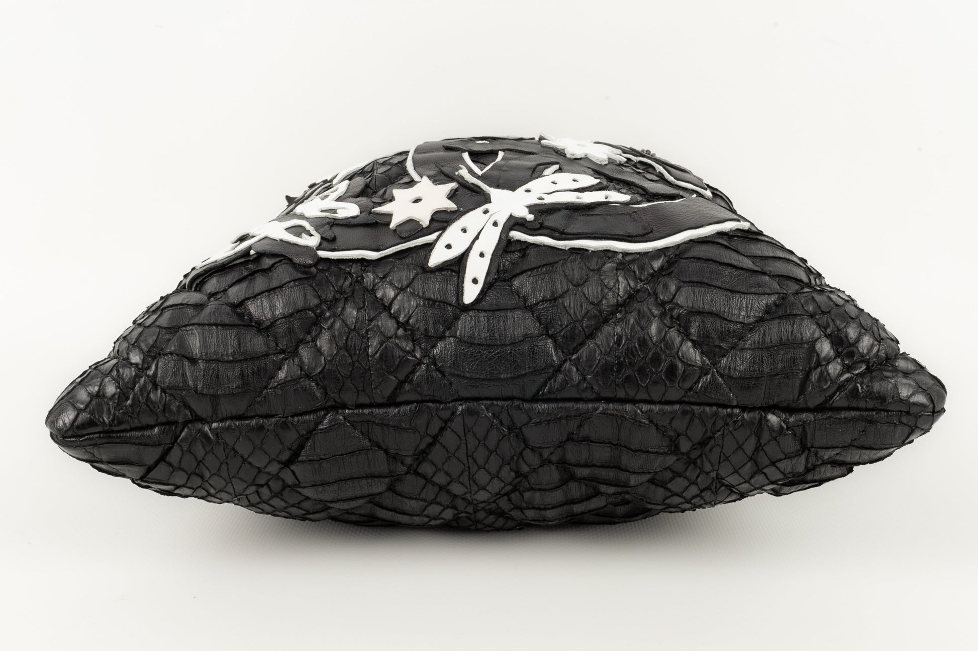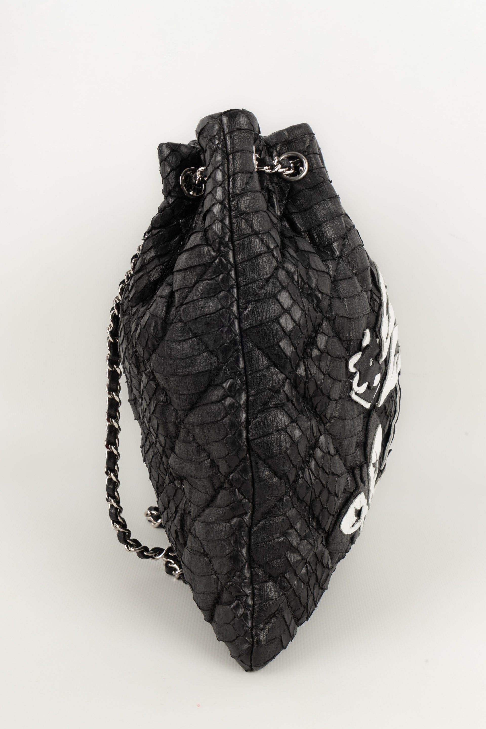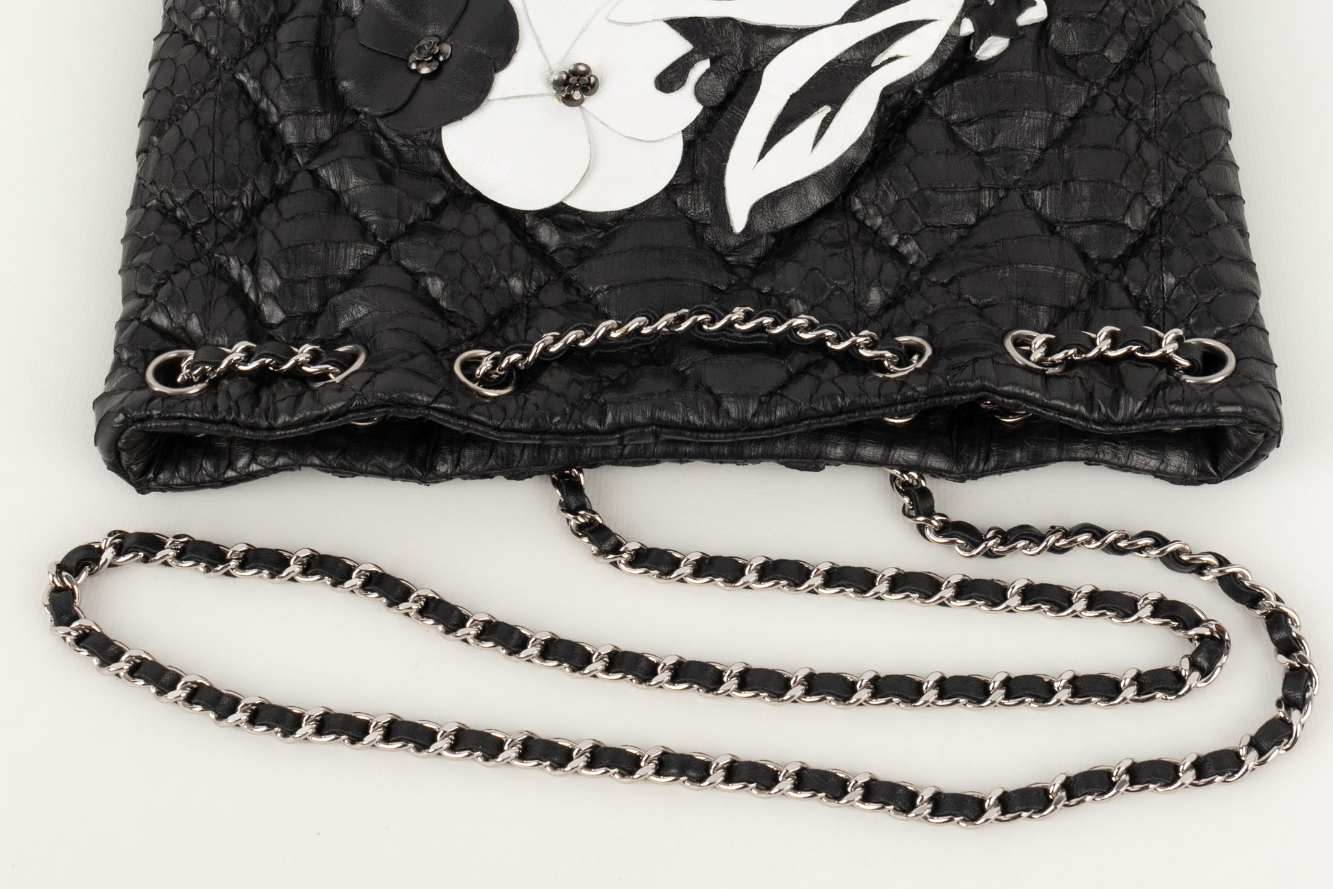 CHANEL - (Made in Italy) Sac en cuir exotique noir et cuir blanc, attributs en métal argenté. Numéro de série absent.