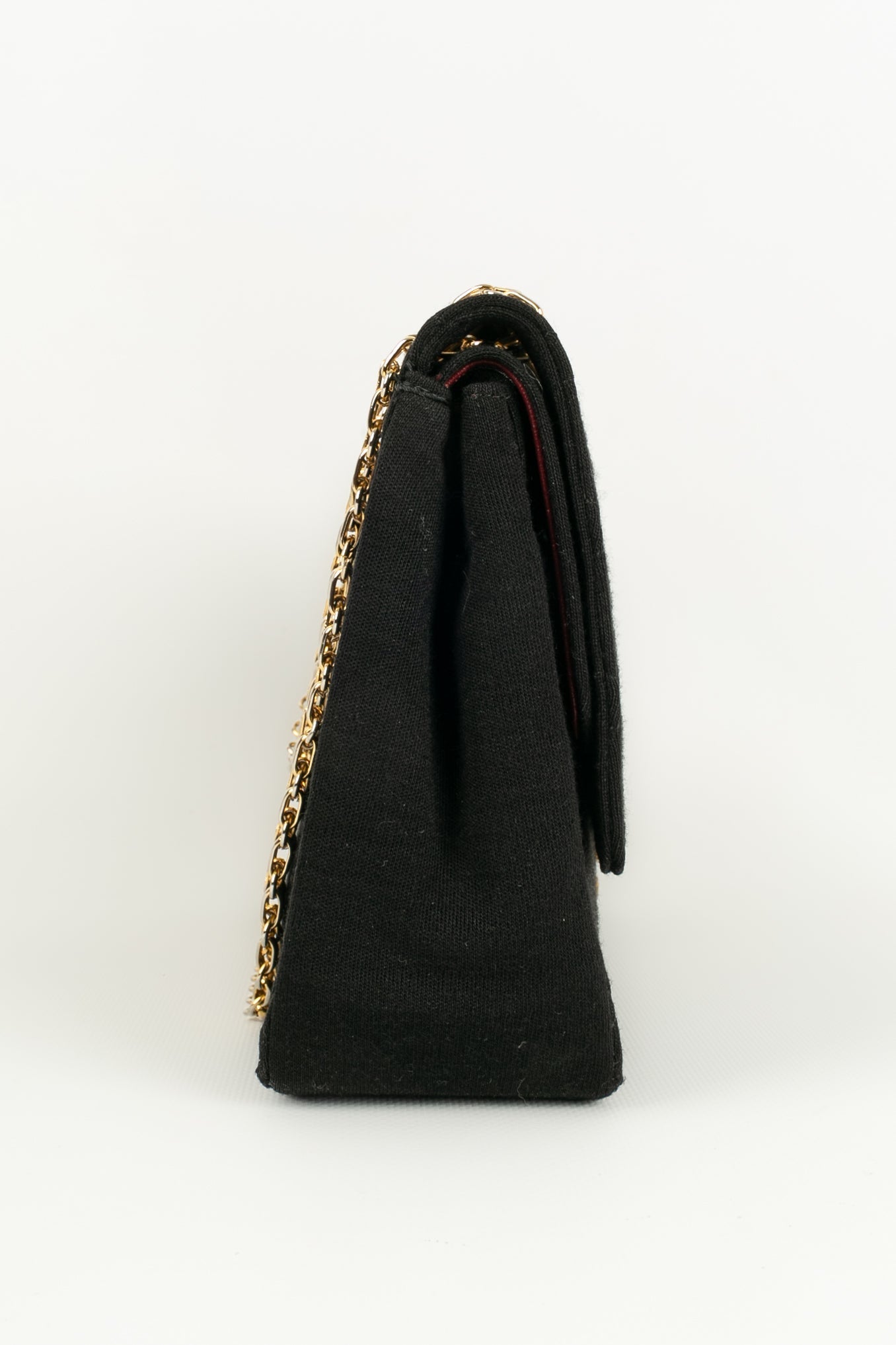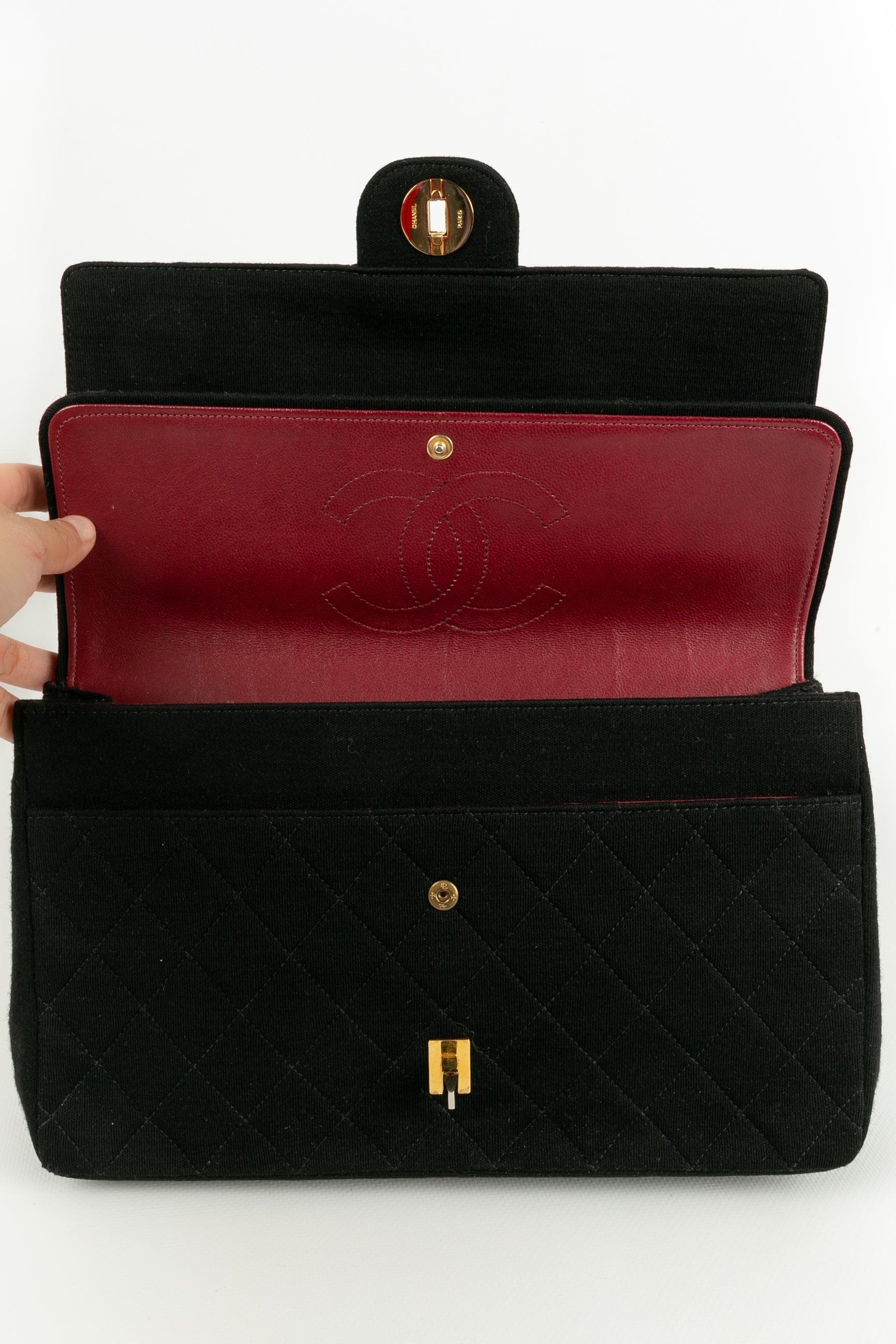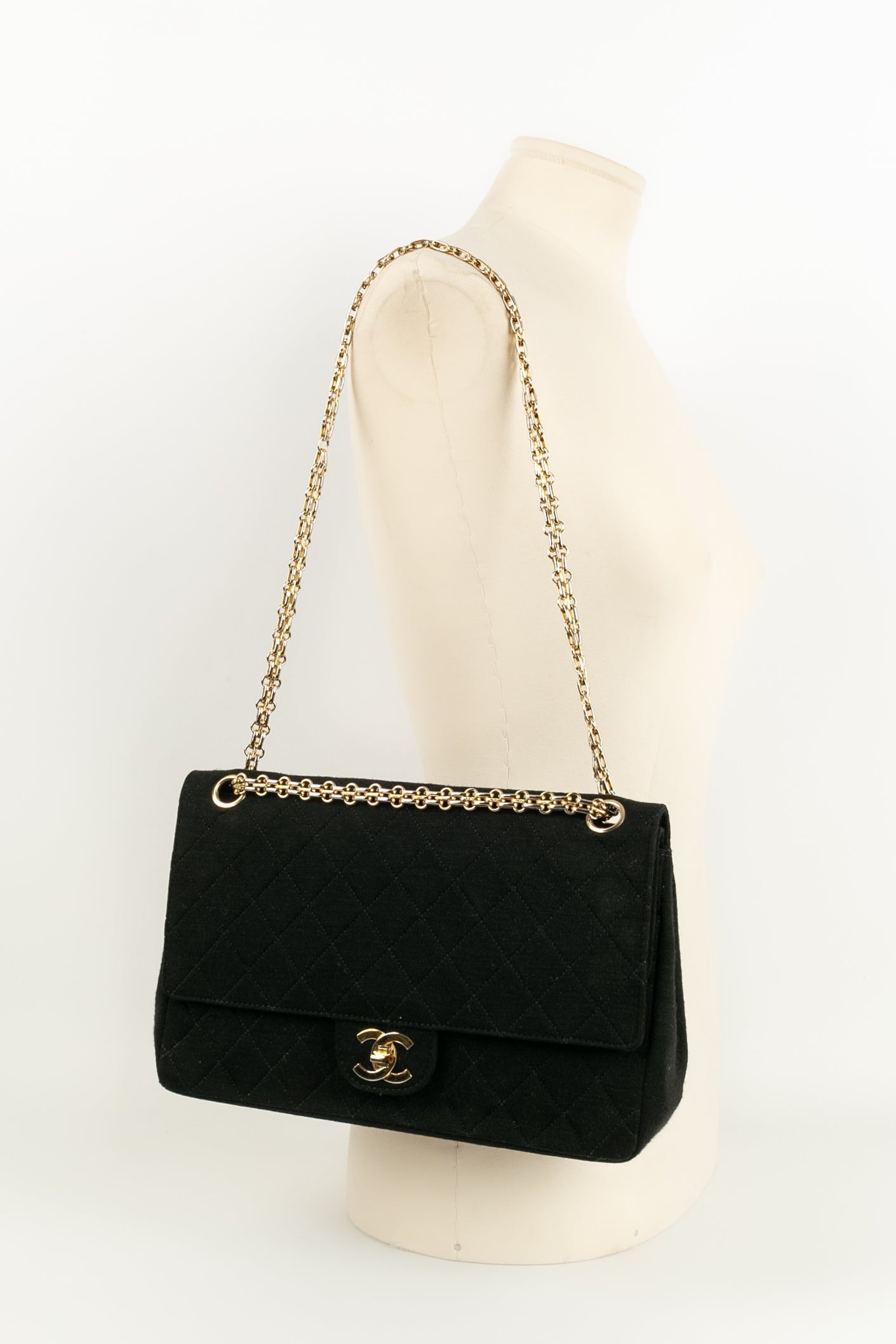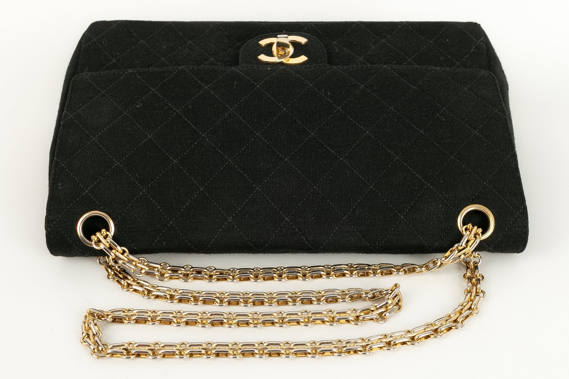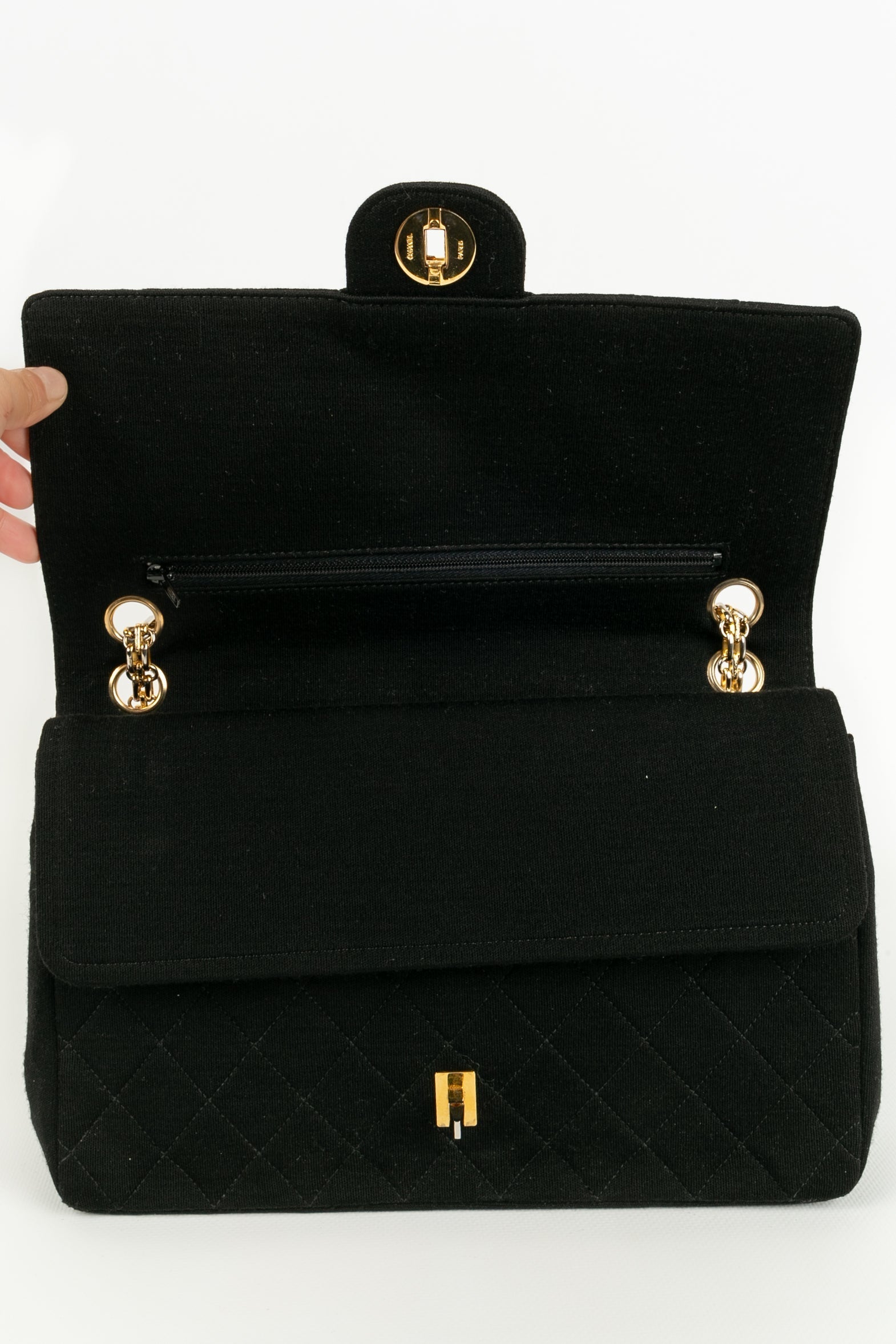 CHANEL - Sac en jersey noir matelass� et attributs en m�tal dor�.