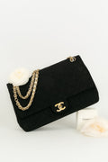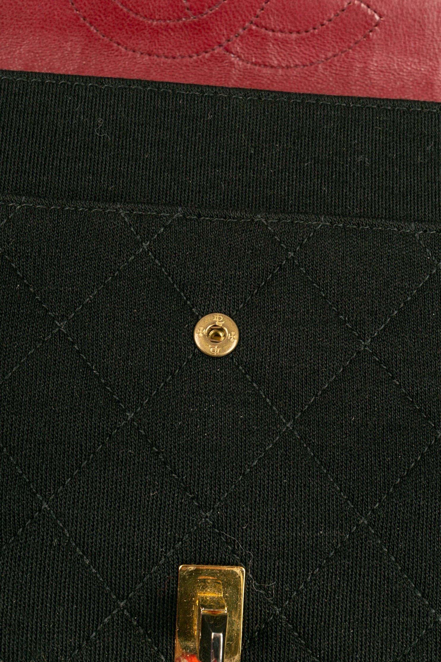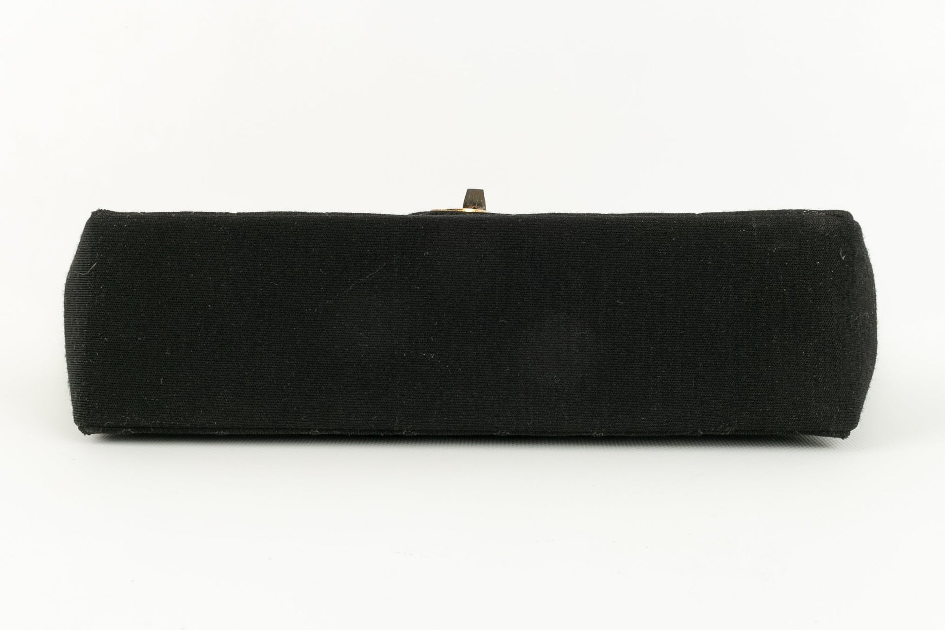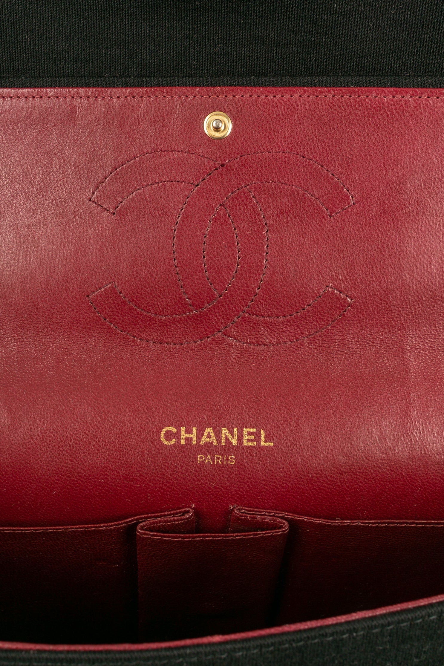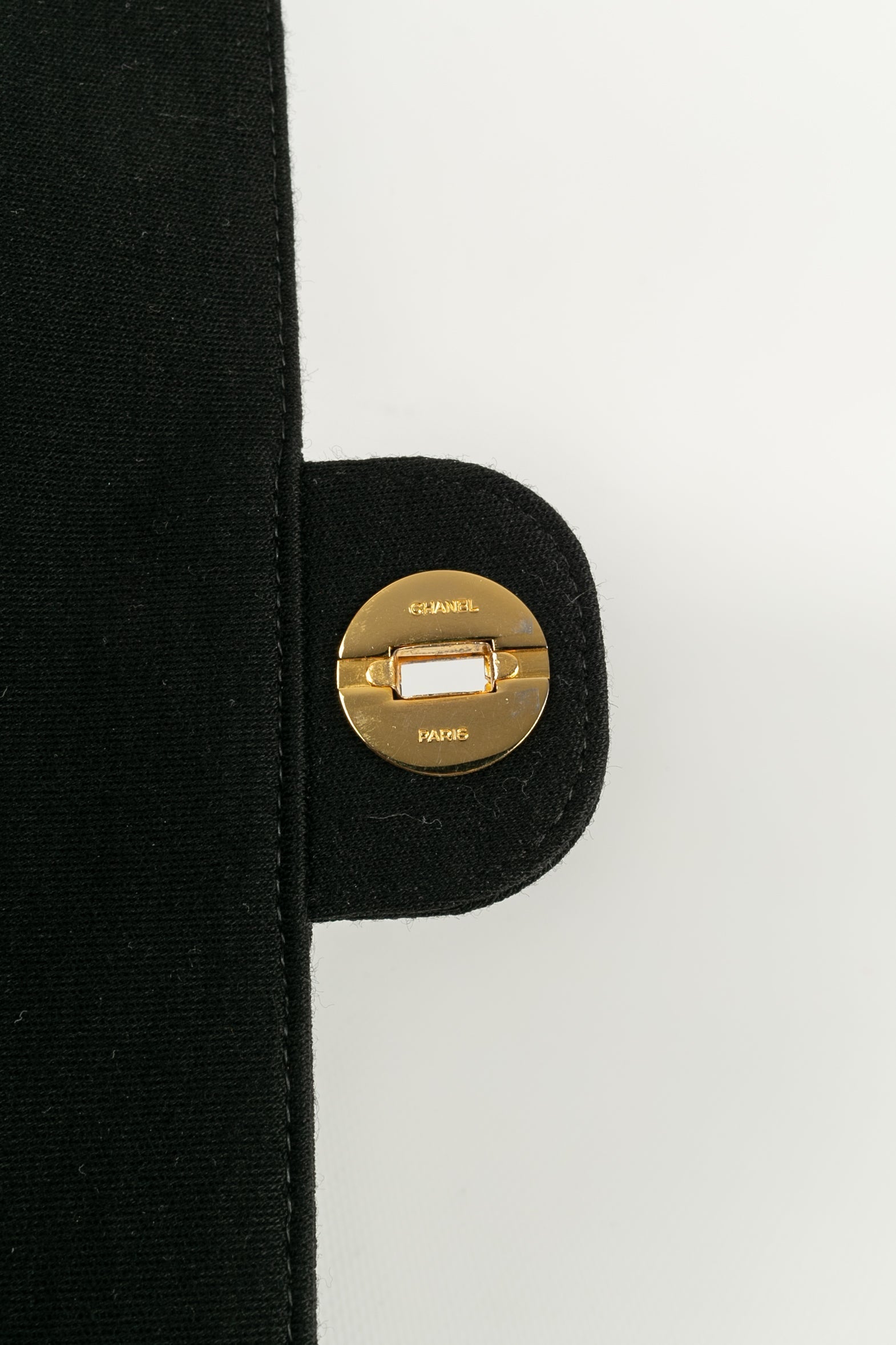 CHANEL - Sac en jersey noir matelass� et attributs en m�tal dor�.