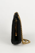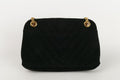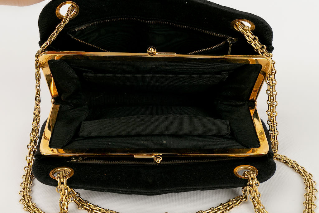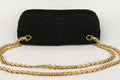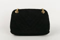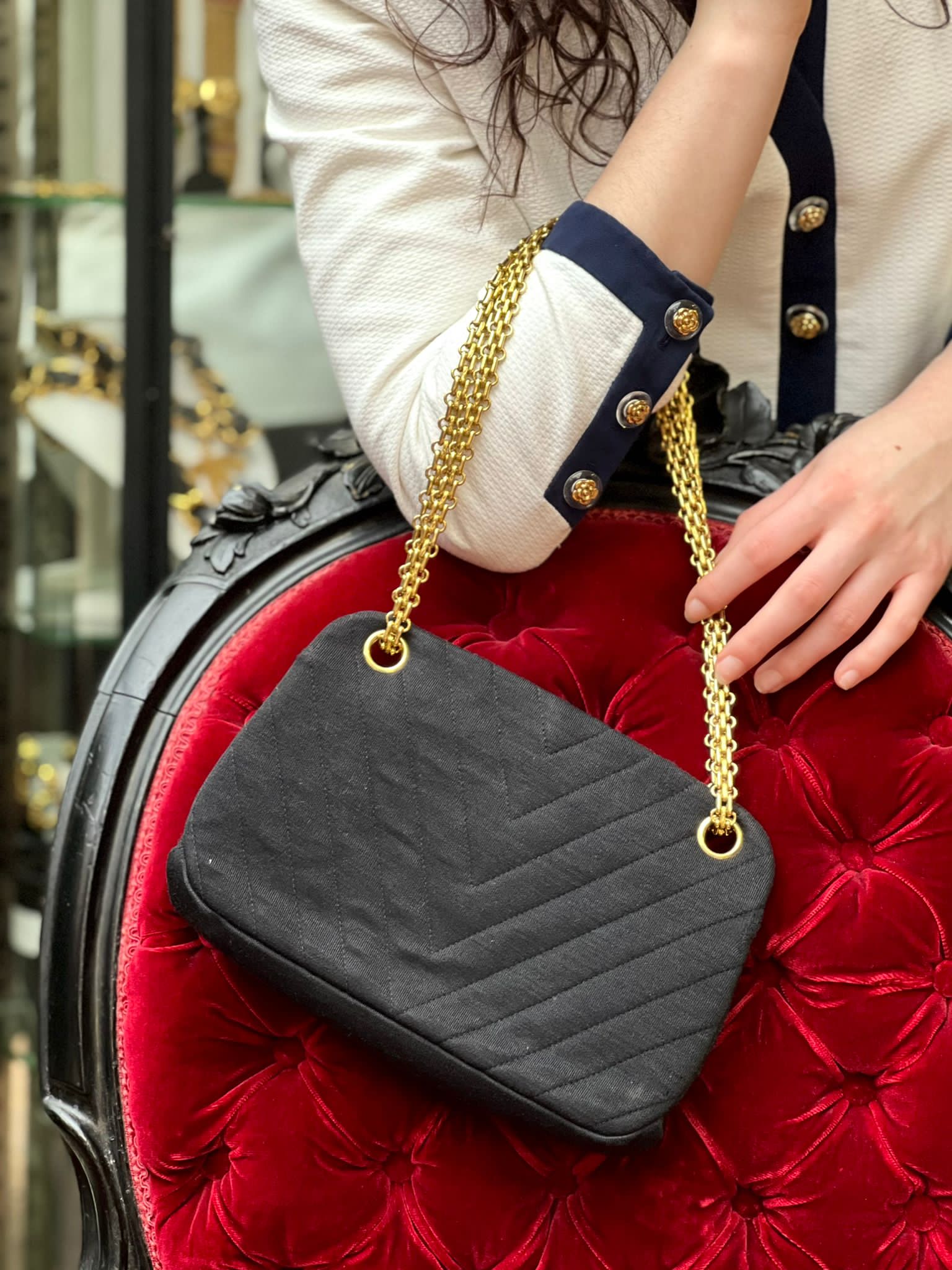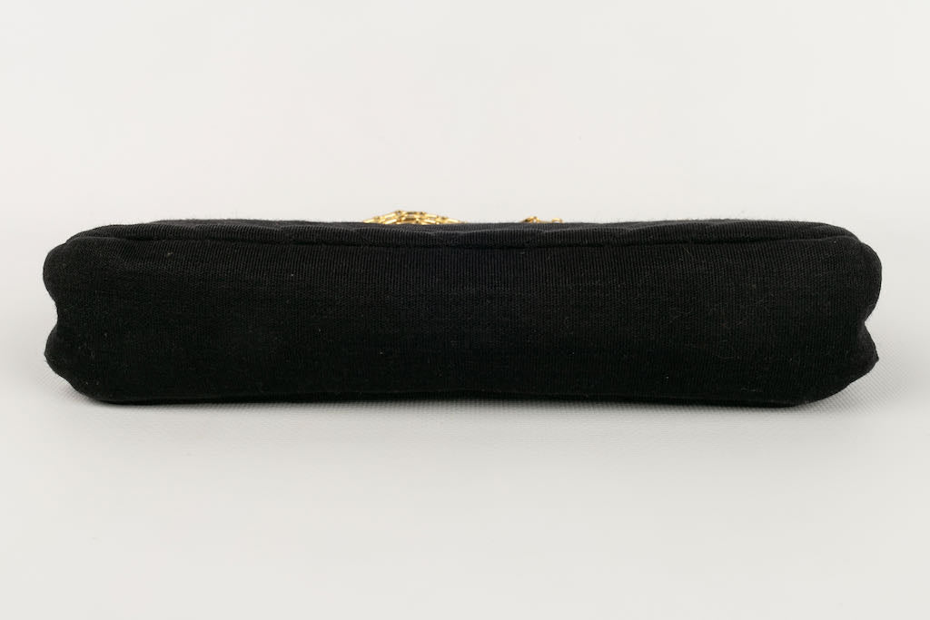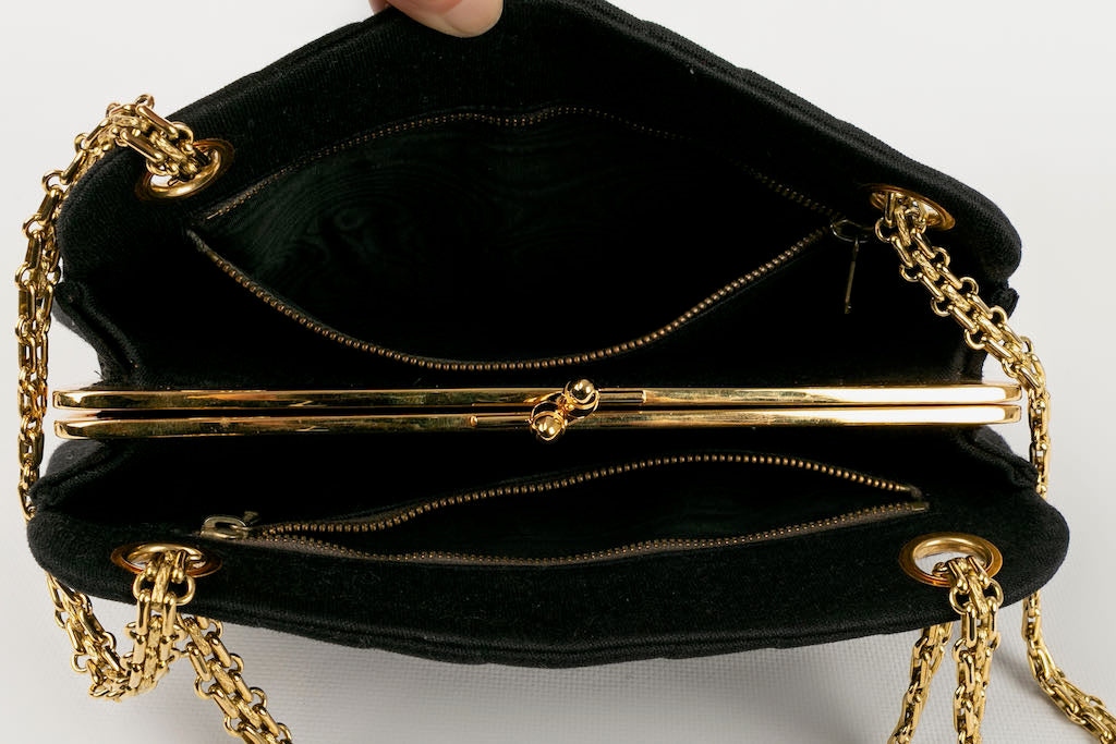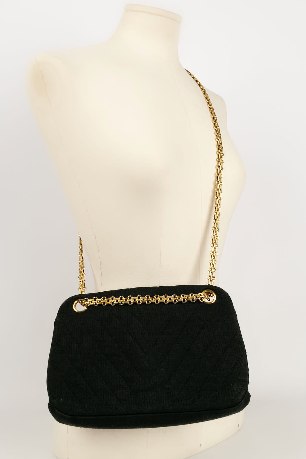 CHANEL -Sac en jersey noir surpiqu�. Mod�le ancien. Bon �tat g�n�ral. A signaler, usure du tissu.
