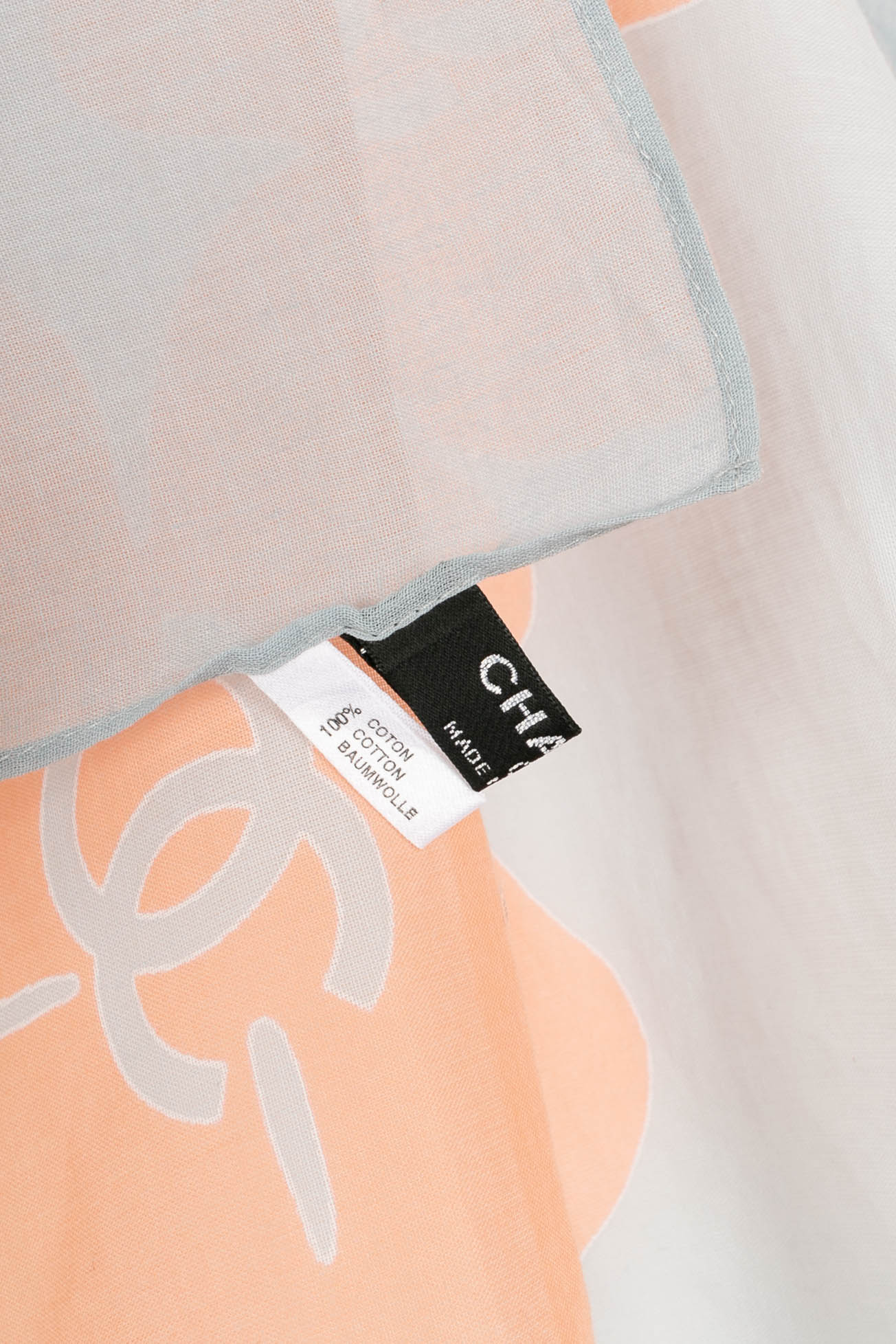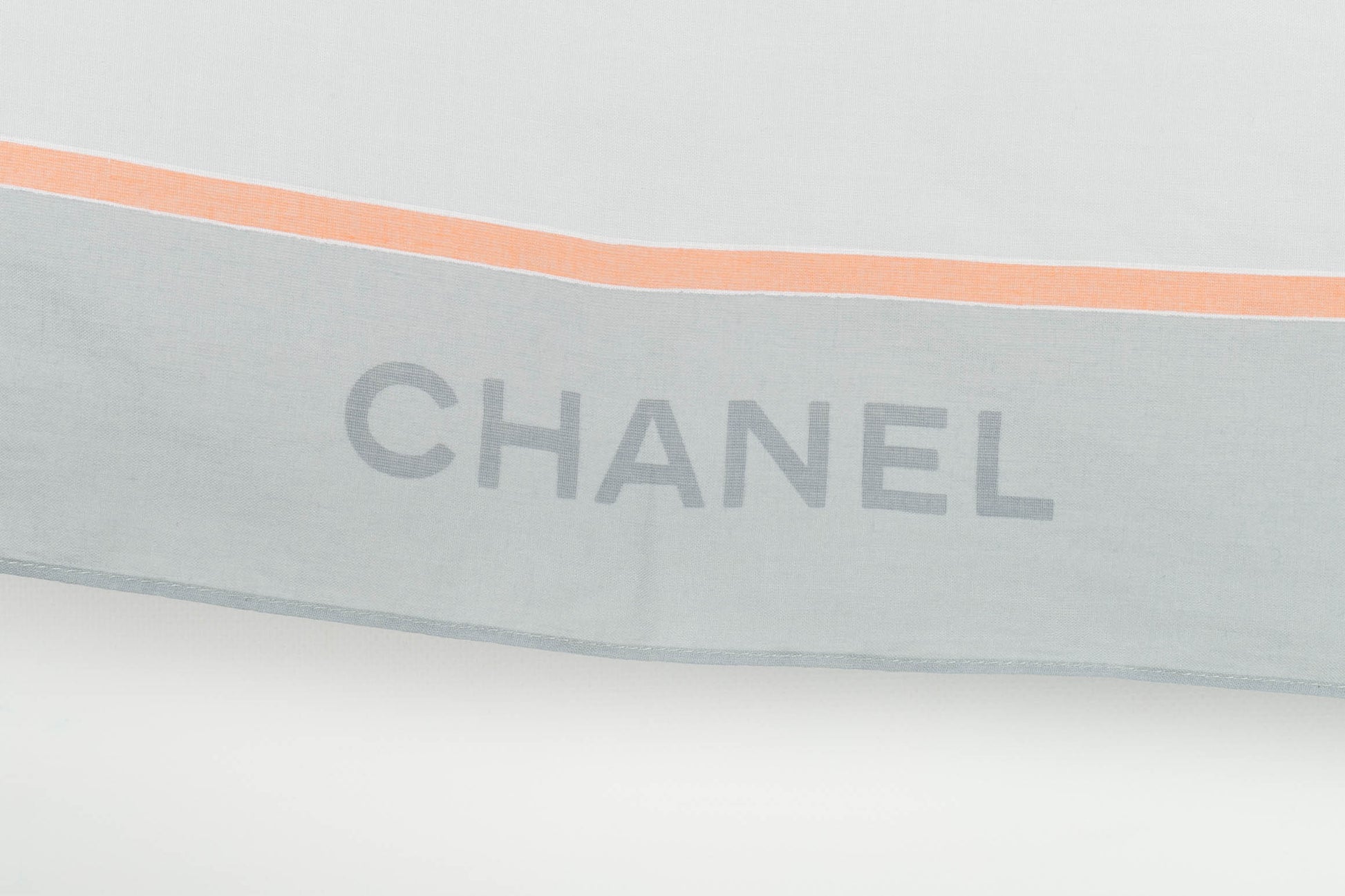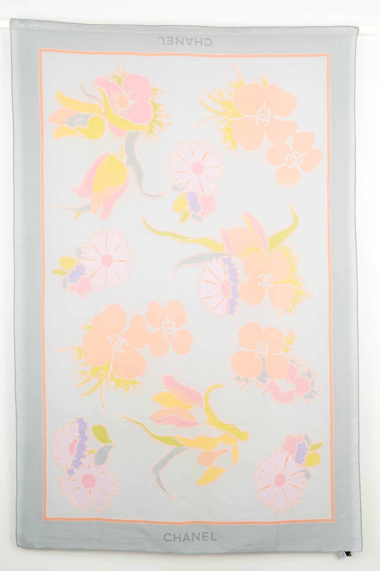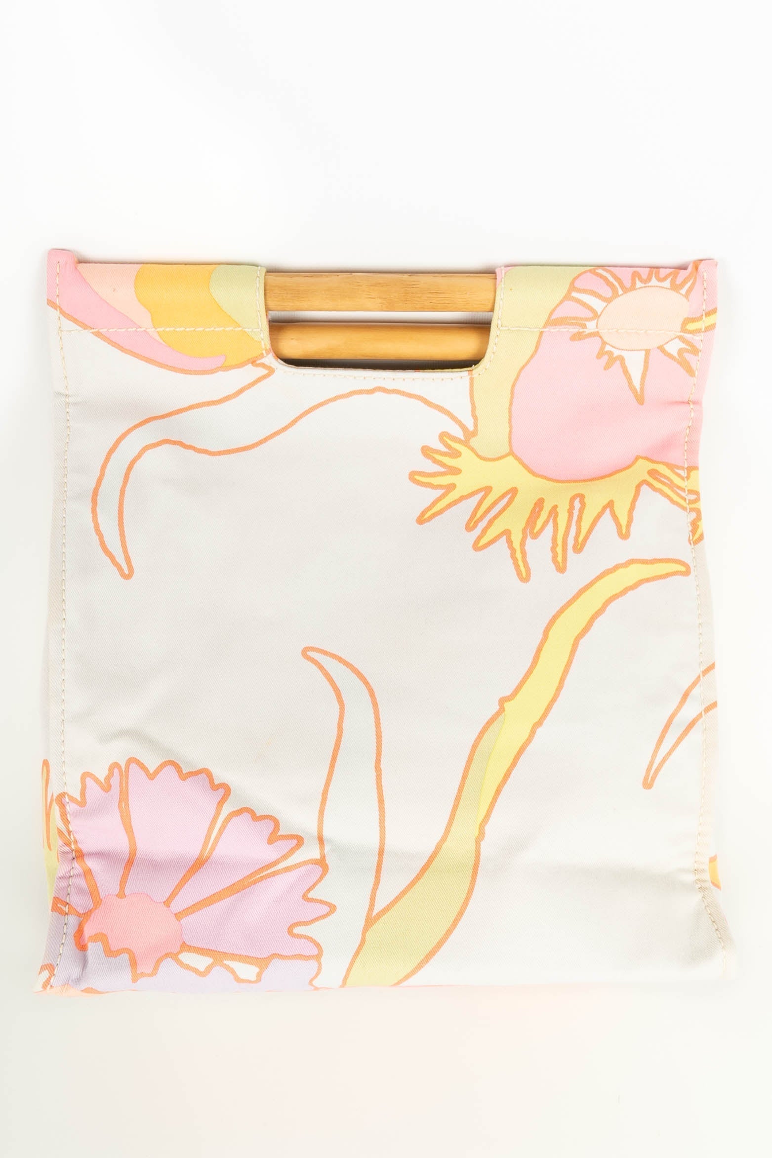 CHANEL - (Made in Italy) Sac en toile multicolore, cuir et anses en bois. Il est accompagn� d'un foulard en �tamine de coton. Num�ro de s�rie et carte d'it� pr�sents. Collection 2003/2004.