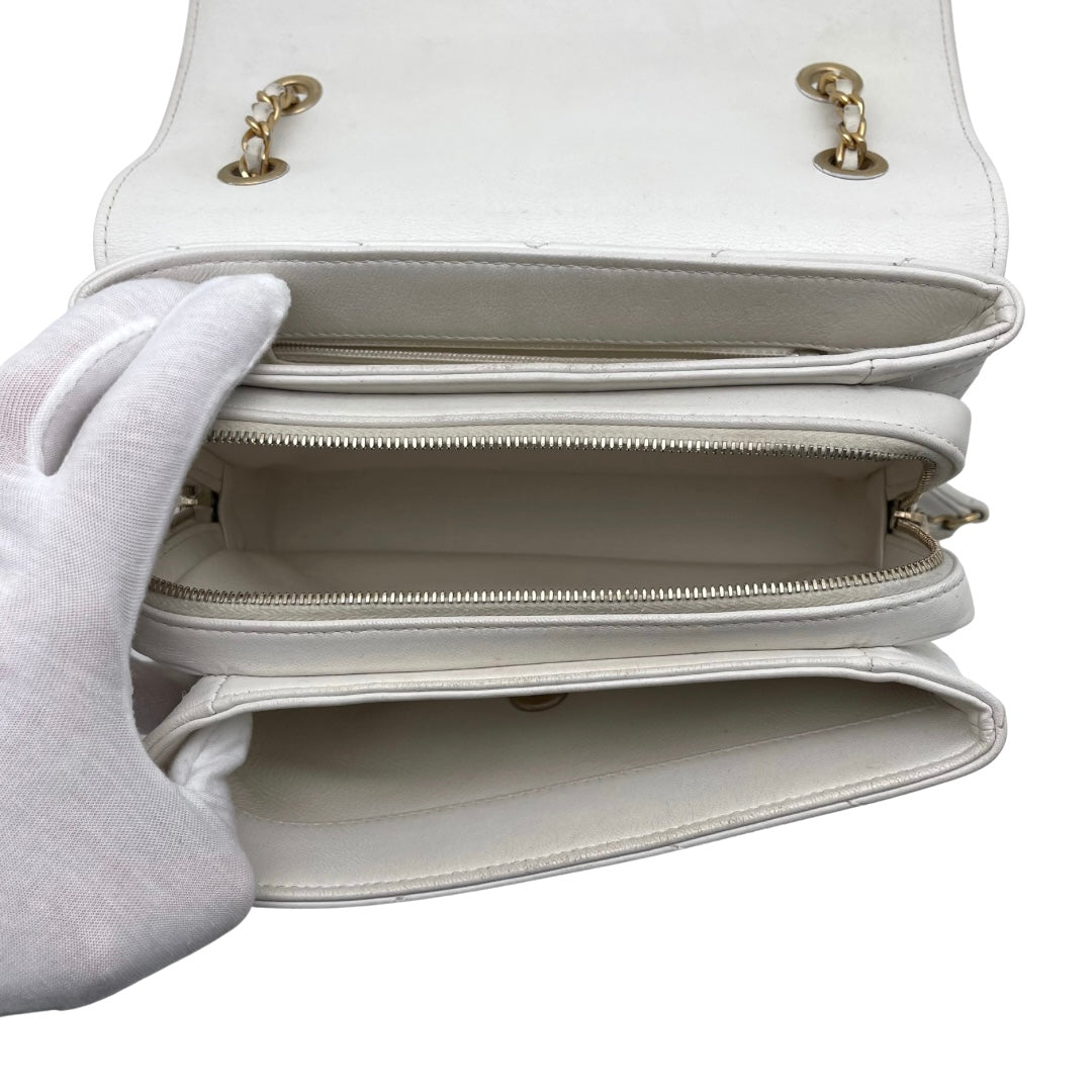 Sac enveloppe blanc avec finition doré. Il se porte épaule ou crossbody.