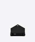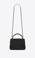 Classic Saint Laurent top handle bag with chain and leather removable shoulder strap and interlocking YSL signature buckle closure.