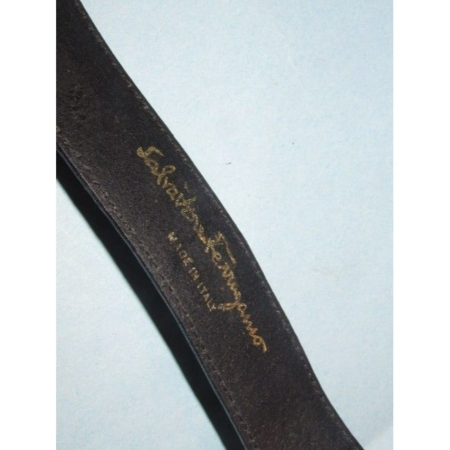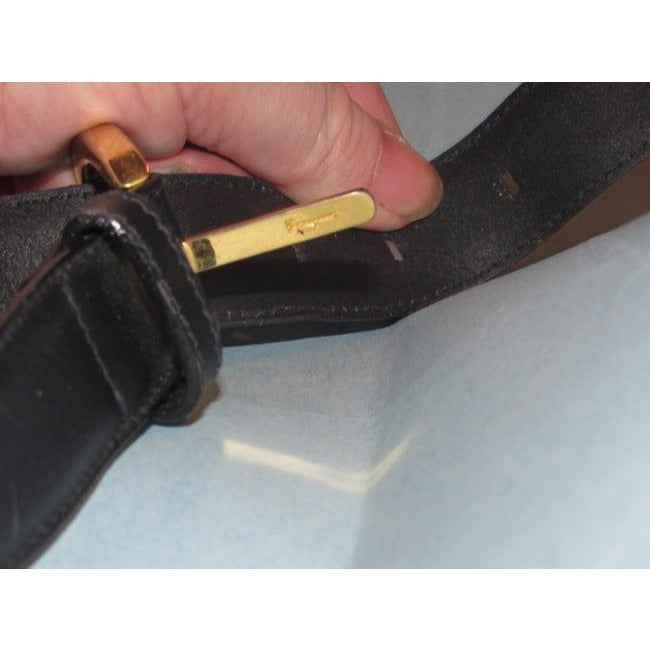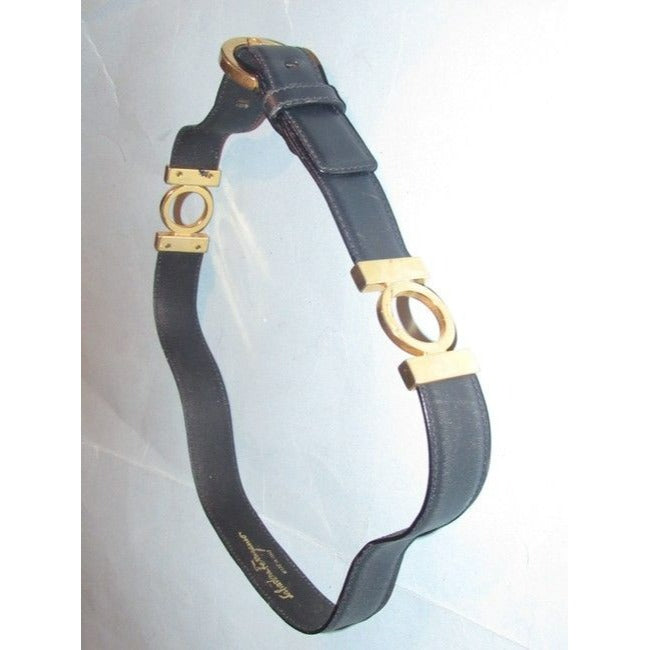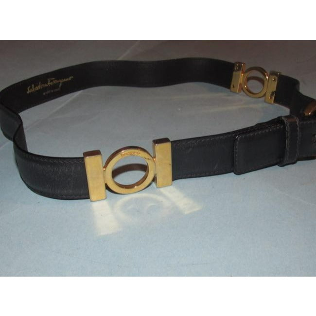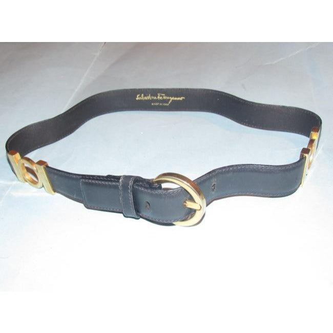For sale is a vintage, classic, Salvatore Ferragamo, black leather, 1.5" wide, 34" long belt with a 2.25" x 2" gold buckle and holes at 28", 29", and 30"! The belt is a unique style belt from Ferragamo that will last you a lifetime!