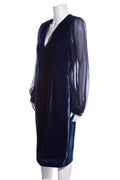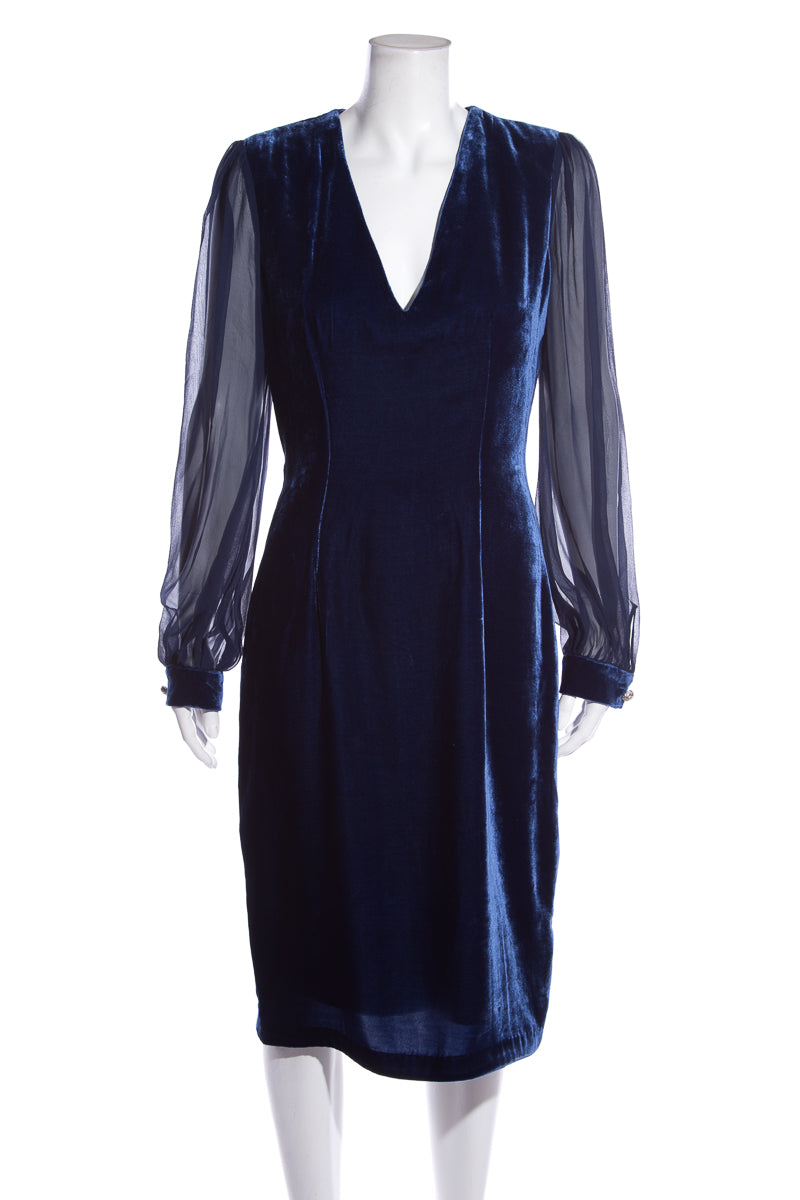 Sanchin & Babi Velvet Navy L/S Chiffon Silk Dress w/ concealed zipper at back. This item is new with tags.