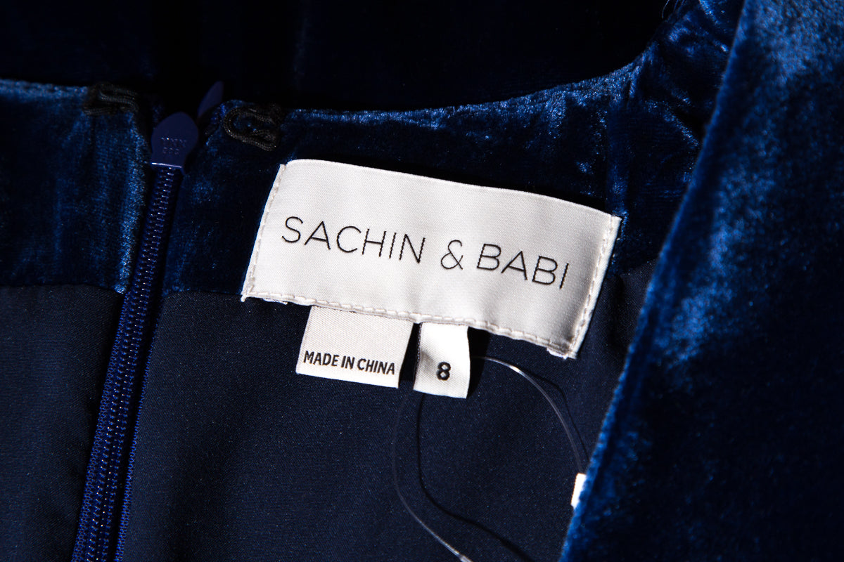 Sanchin & Babi Velvet Navy Dress SZ 8 NWT