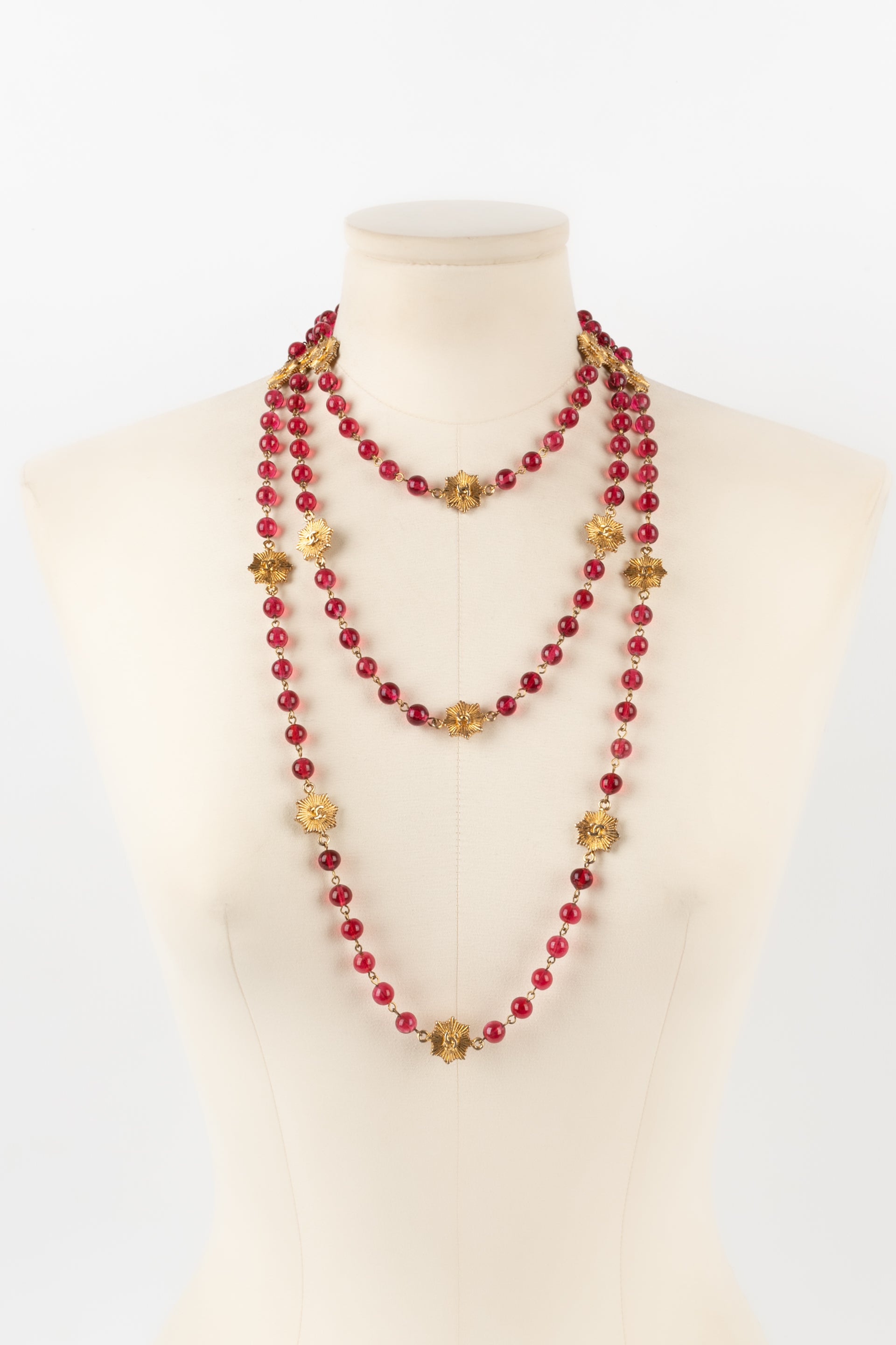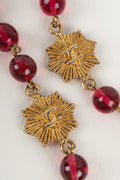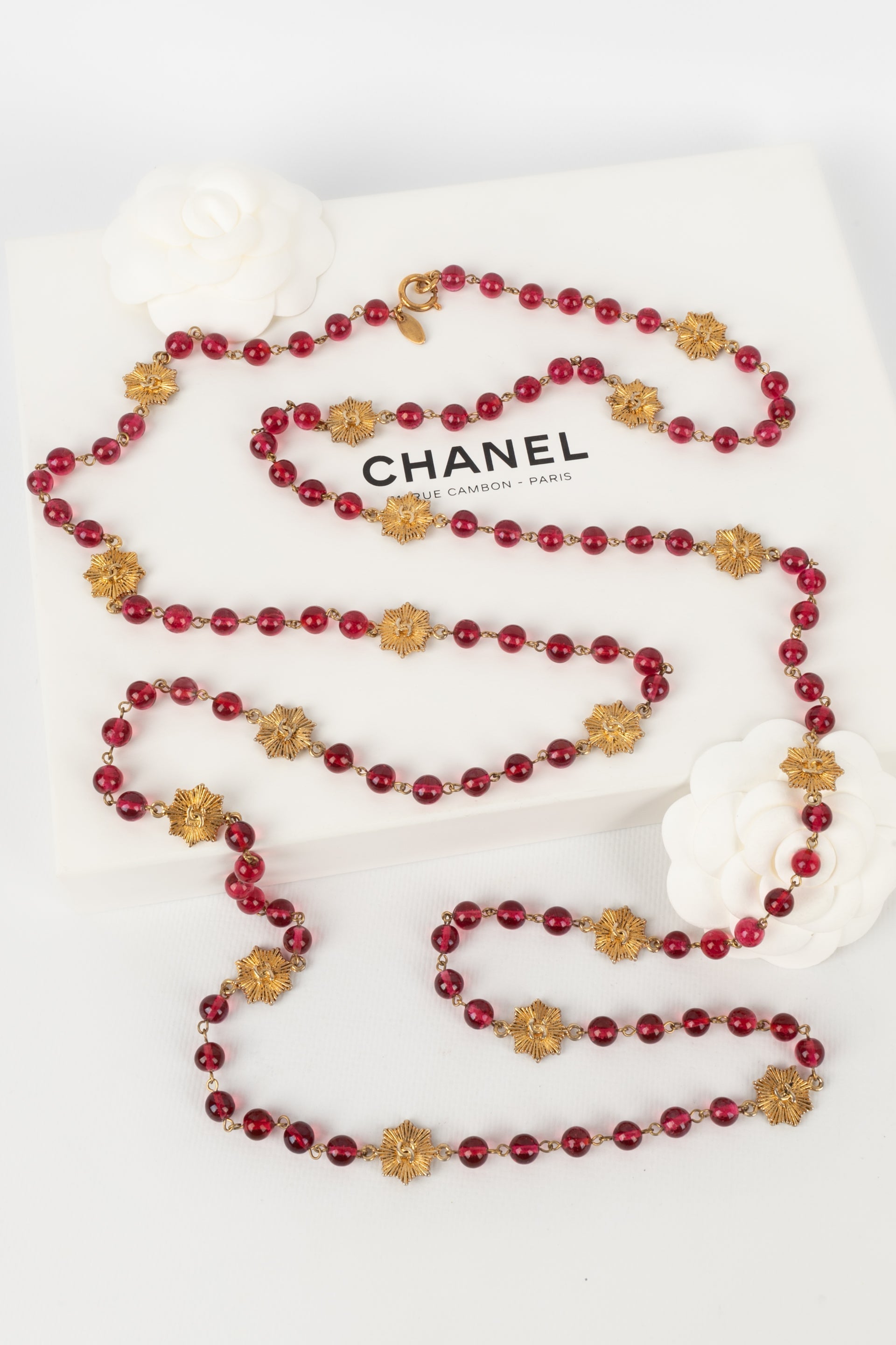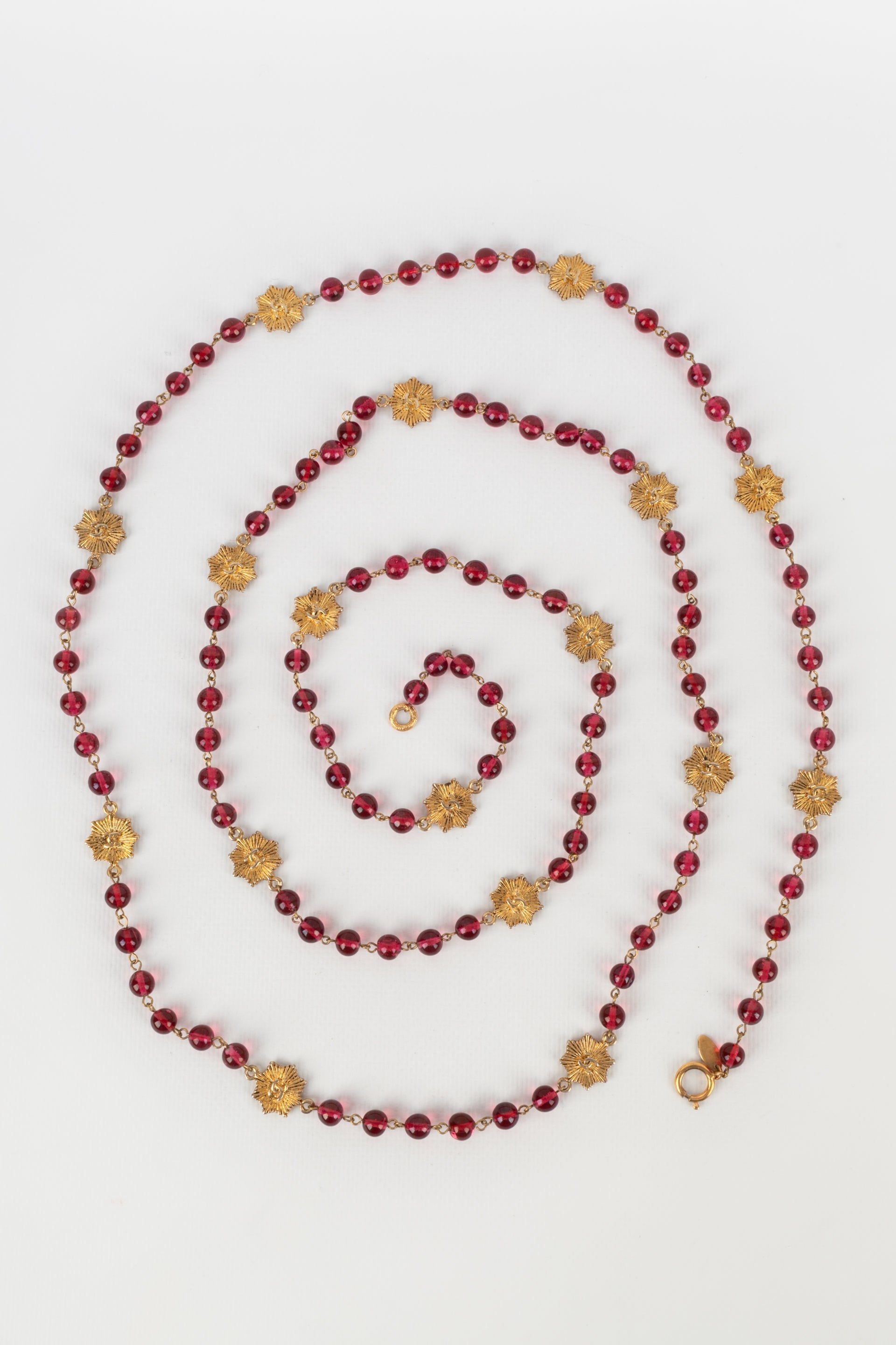 CHANEL - (Made in France) Sautoir en métal doré et perles de verres.