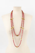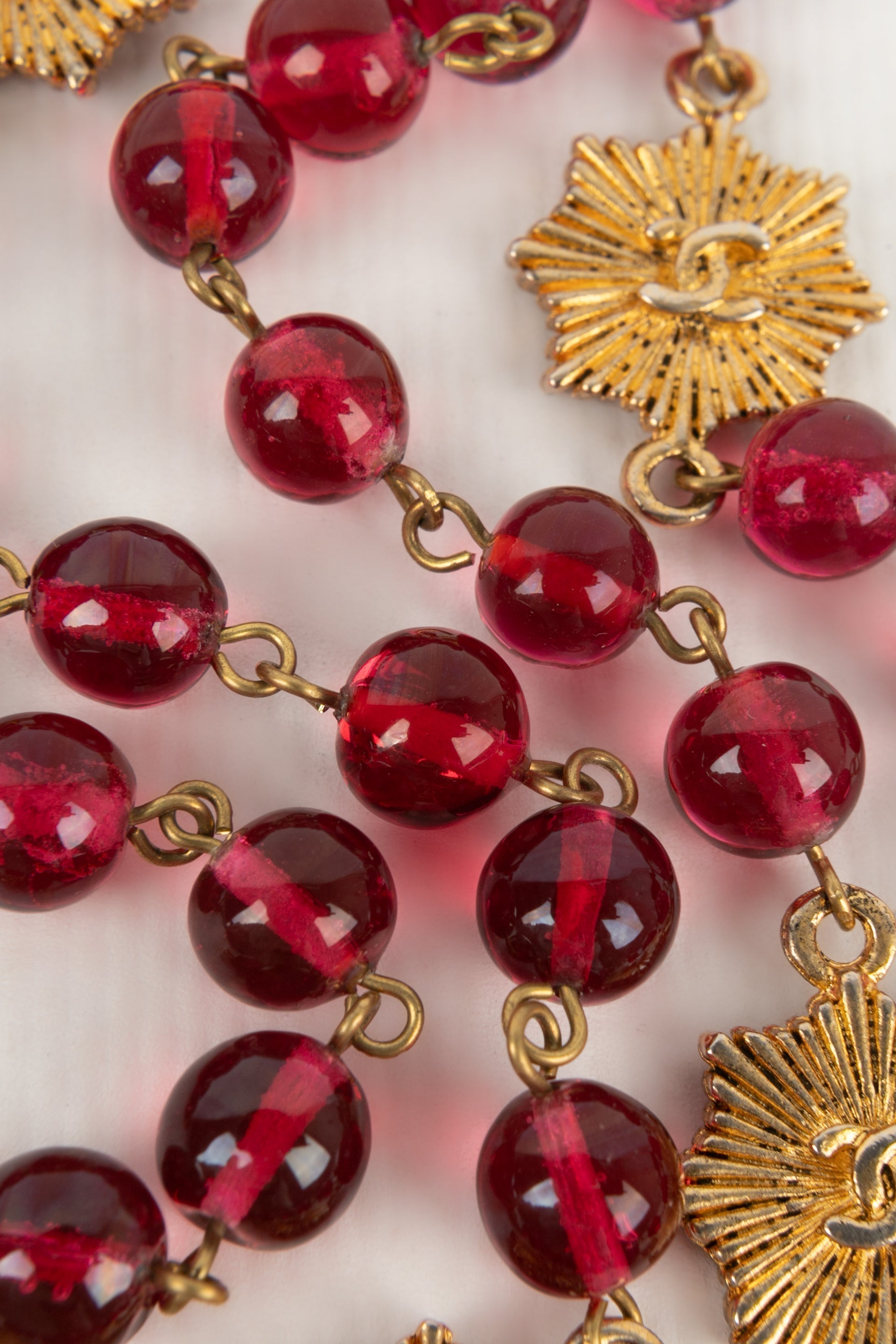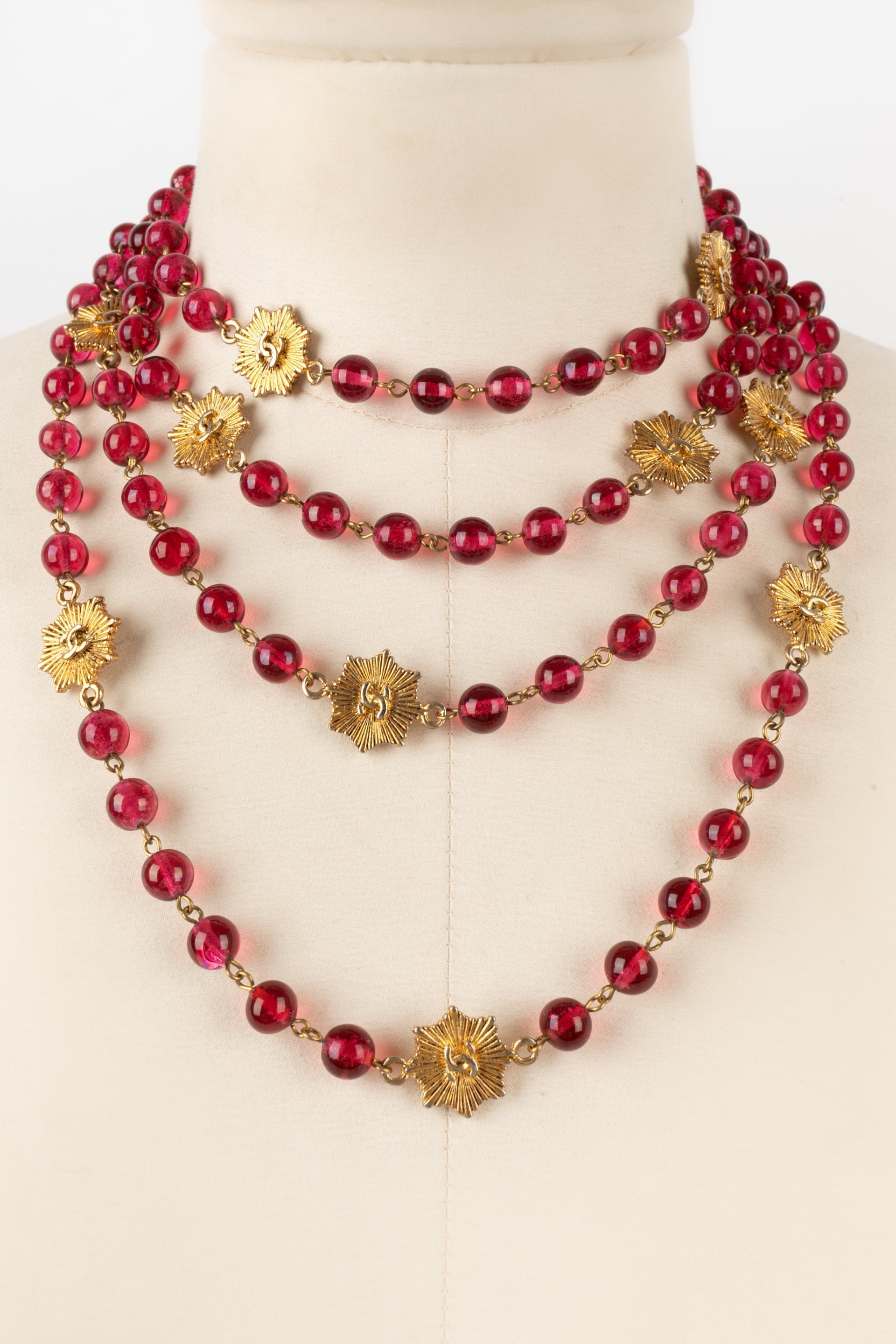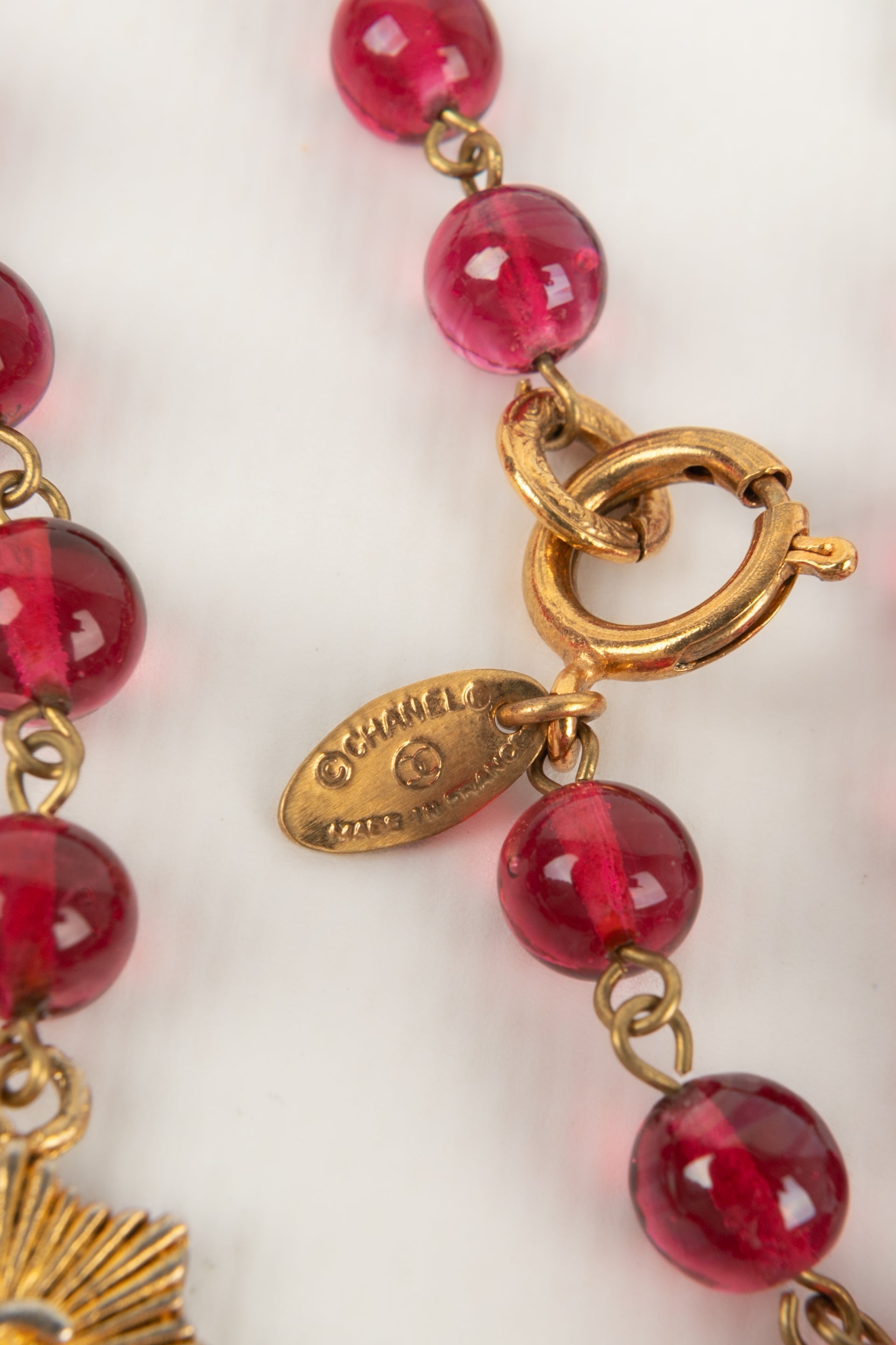 CHANEL - (Made in France) Sautoir en métal doré et perles de verres.