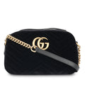 The Gucci Marmont marmont bag is a perfect compact bag to use day or night. The unique logo plaque has been revived from their archives of the 70’s era for the brand, and the chevron stitching brings the bag back to modern day and adds a little bit of interest to the eye.
