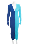 Staud Blue Two Tone Ribbed Long Sleeve Dress SZ S