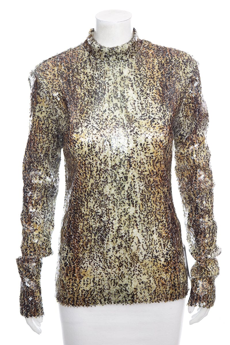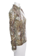 Stella McCartney Green Sequin Printed Long Sleeve Blouse SZ 46 NWT