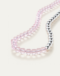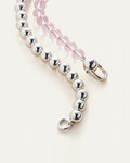 A lightweightstatement chain just in time for summer. A series of recycled, pink glass spheres are suspended from a curb chain. Finished in high-polish silver.