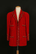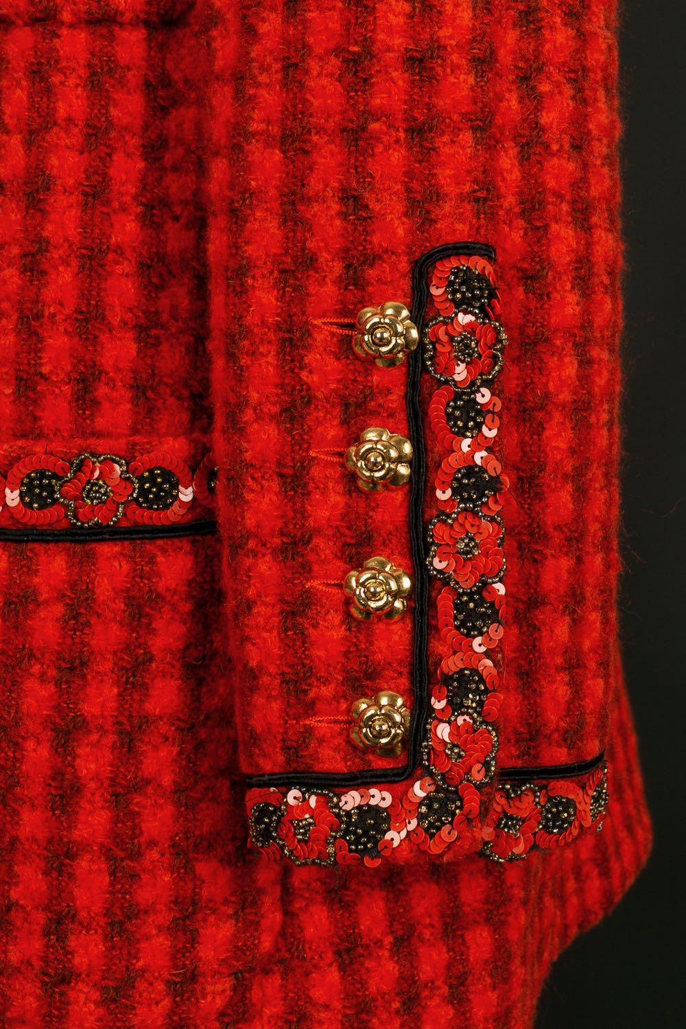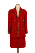 Note: Our Items are totally New High quality Brand Inspired Refurbished. Please make sure you are well aware of it before buying any of the Item. T&C's Apply in case of refunds.Please send us message on below chat to confirm availability. We will send the Refurbished Model in case you place an order with us. Enjoy Shopping.Always Send Us message to confirm availability before buying, In case of refund the transaction fee remains non refundable.�Thank�you. Tailleur jupe rouge et noir en tweed de laine cousu de sequins. Collection Automne-Hiver 1990/91. Taille 40FR.