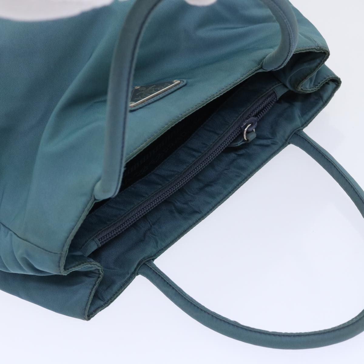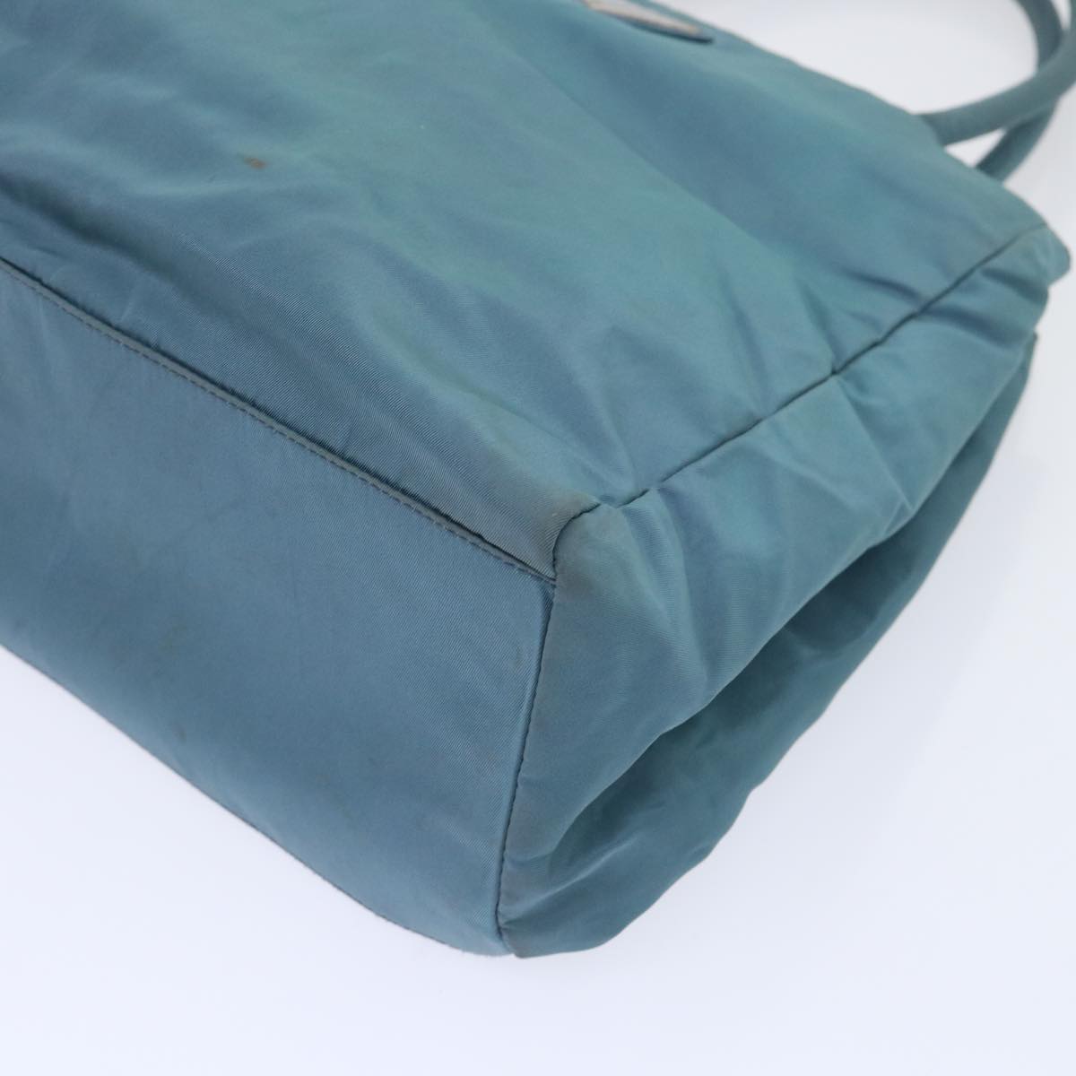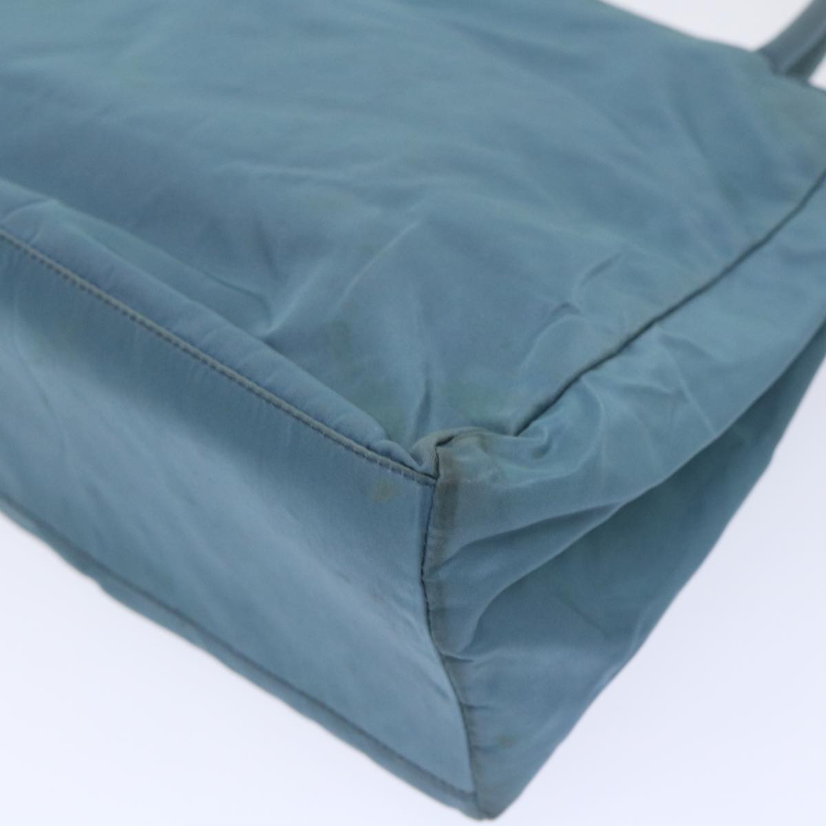 The PRADA Tessuto H Bag in a stylish blue hue is a fashionable practical accessory crafted from durable nylon. Its design belonging to the Tessuto line reflects a modern aesthetic with a touch of casual elegance making it suitable for various occasions.
