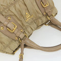 Brand: Prada Model: Color: Beige Material: Synthetic Inclusions: Dust Bag / Name Tag / Shoulder Strap / Guarantee Card Dimensions: W30cm x H25cm x D13cm / Shoulder Drop:55 - 60cm Serial number: 165 Country of origin: Italie Condition: AB - good condition. Prada the renowned luxury brand known for its exceptionally high-quality leather goods presents a bag that combines practicality and elegance. Its enchanting beauty is sure to captivate fashion enthusiasts in search of an accessory perfectly suited to their needs. The exterior of the bag has a slight loss of shape and exhibits rubbing along with sunburn. There are slight scratches on the metal fittings. Inside there is slight rubbing and the pockets and corners also show signs of slight rubbing. Additionally there is a storage odor present. We recommend that you look at all the photos before making your purchase to ensure that you are satisfied with the condition of the item.