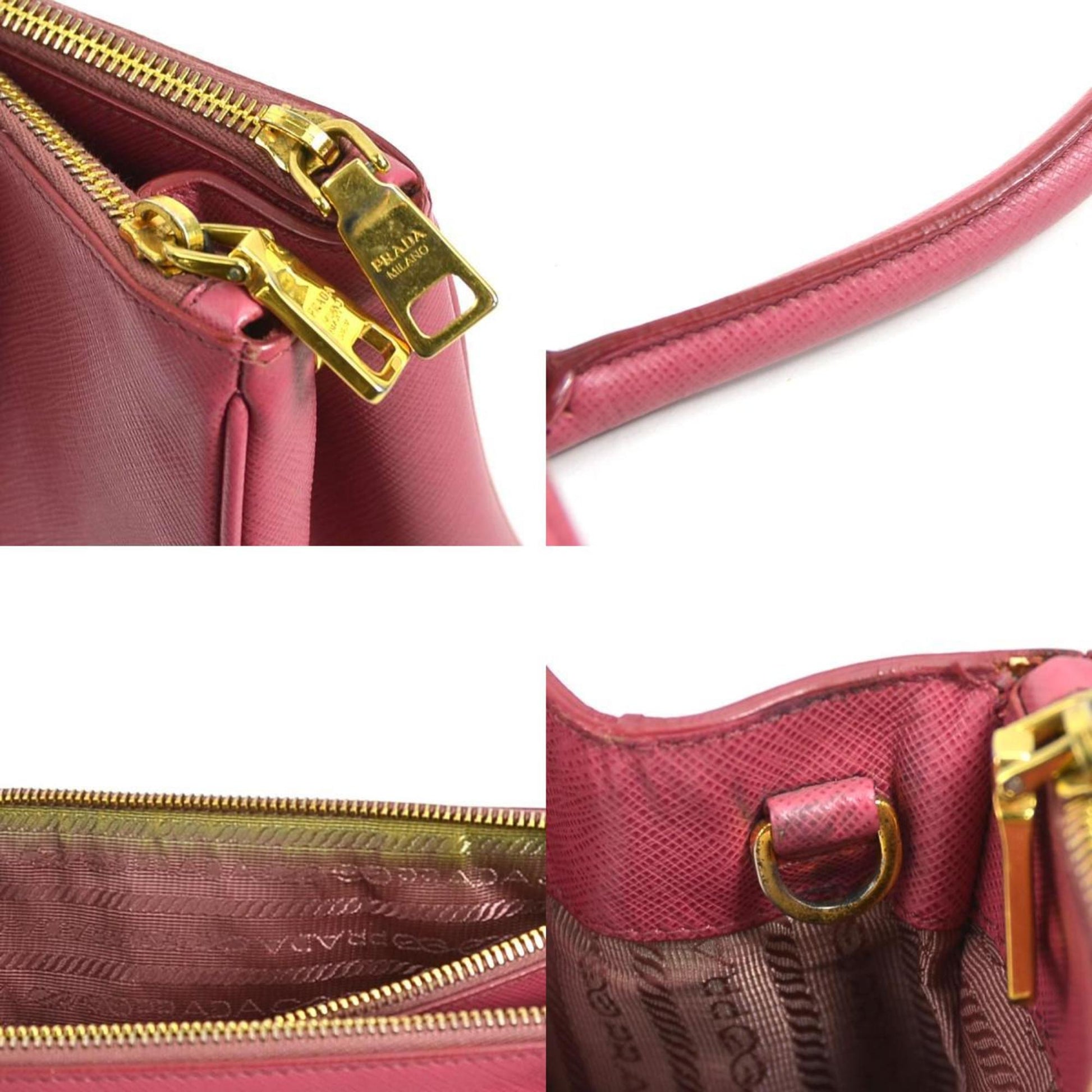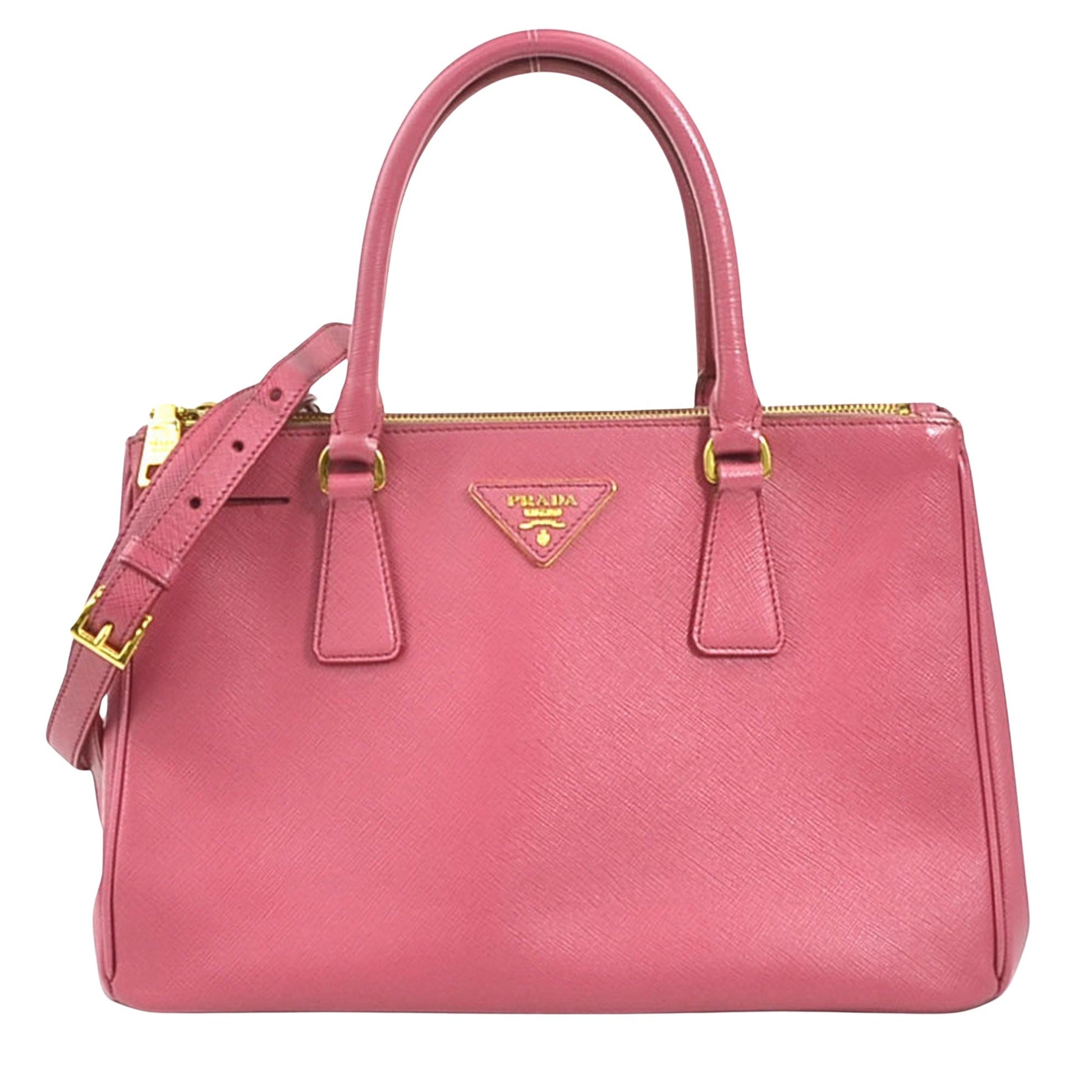 Brand: Prada Model: Galleria Color: Pink Material: Leather Inclusions: Shoulder strap Dimensions: 20cm x 30cm x 13cm Serial number: NA Country of origin: Italy Condition: AB - good condition. The Prada Galleria bag in Saffiano leather in its elegant pink color embodies the perfect marriage of luxury and contemporary style. Made from Prada's famous Saffiano leather renowned for its durability and scratch resistance this bag offers exceptional quality. Its structured silhouette and clean lines add a touch of sophistication to any outfit while its soft pink hue adds a feminine elegant touch. The interior of the item shows a slight stain while the exterior shows a slight scratch and also a slight loss of shape. Despite this the item remains in very good condition. We recommend that you look at all the pictures before making your purchase to ensure that you are satisfied with the condition of the item.