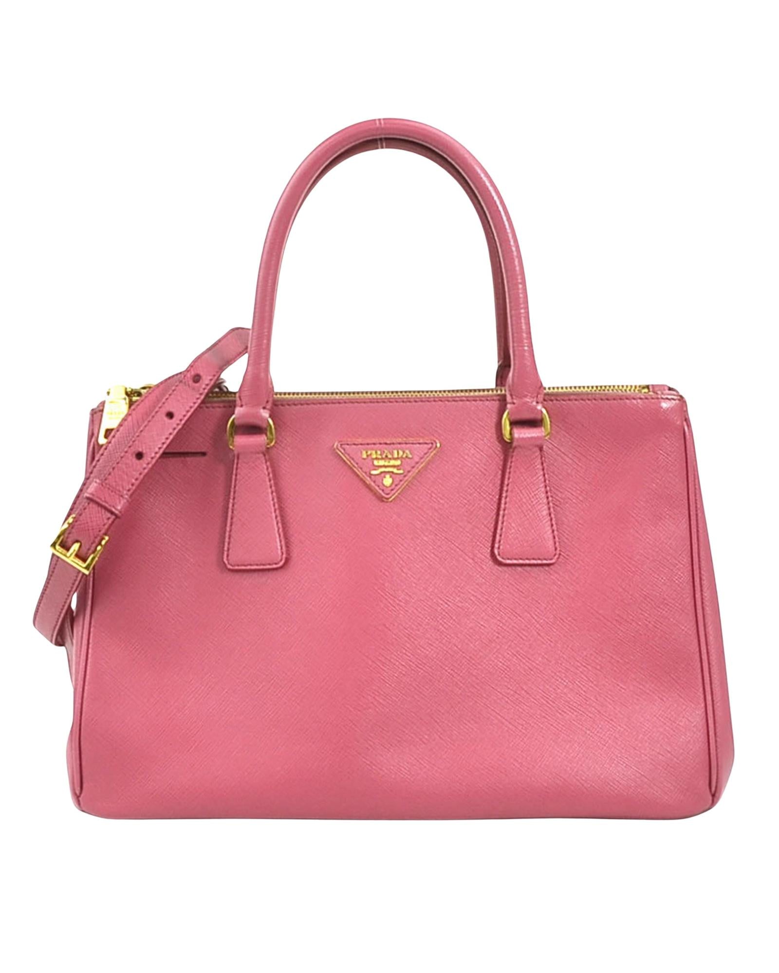 Brand: Prada Model: Galleria Color: Pink Material: Leather Inclusions: Shoulder strap Dimensions: 20cm x 30cm x 13cm Serial number: NA Country of origin: Italy Condition: AB - good condition. The Prada Galleria bag in Saffiano leather in its elegant pink color embodies the perfect marriage of luxury and contemporary style. Made from Prada's famous Saffiano leather renowned for its durability and scratch resistance this bag offers exceptional quality. Its structured silhouette and clean lines add a touch of sophistication to any outfit while its soft pink hue adds a feminine elegant touch. The interior of the item shows a slight stain while the exterior shows a slight scratch and also a slight loss of shape. Despite this the item remains in very good condition. We recommend that you look at all the pictures before making your purchase to ensure that you are satisfied with the condition of the item.