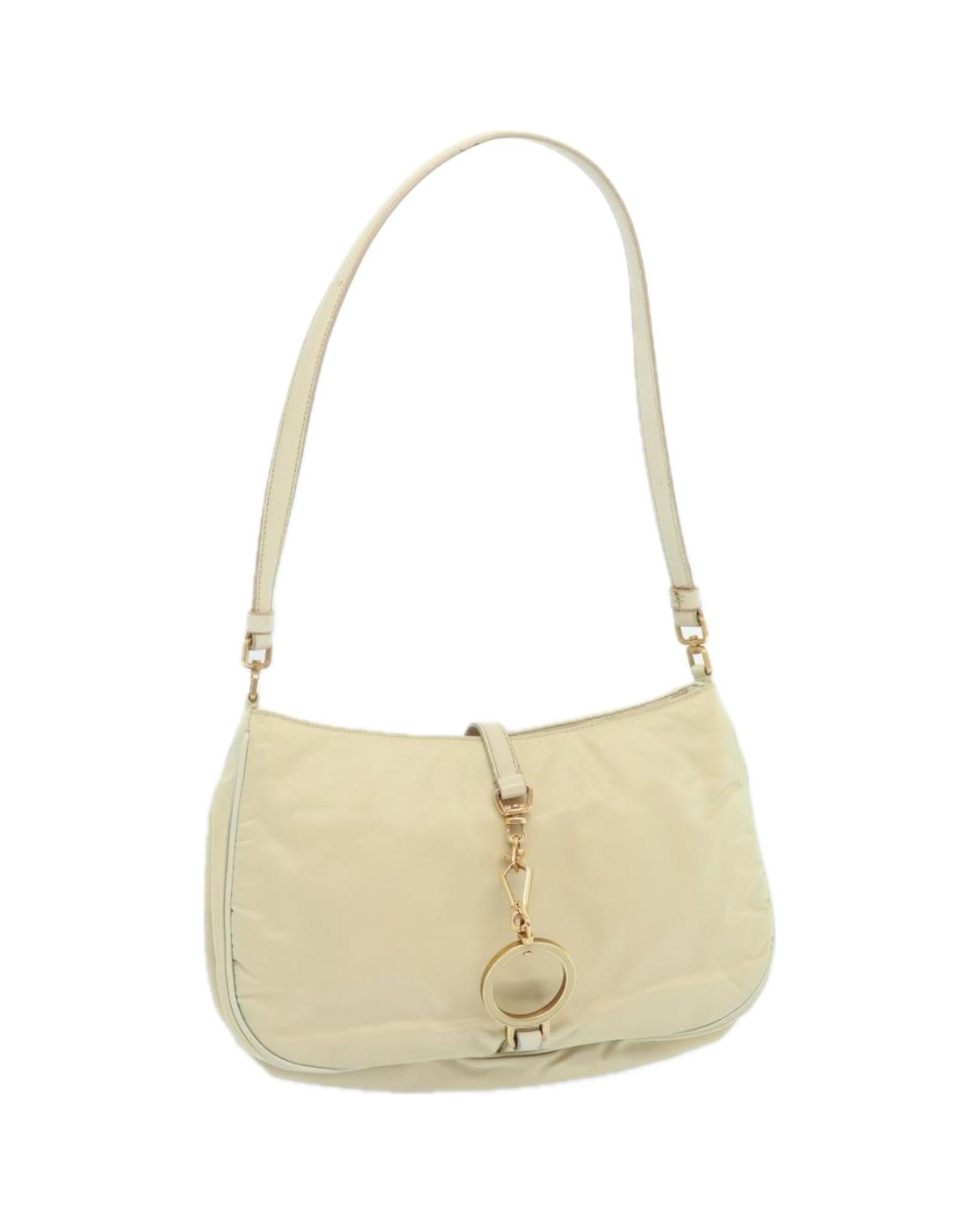 Prada Tessuto Shoulder Bag Chain Charm Beige