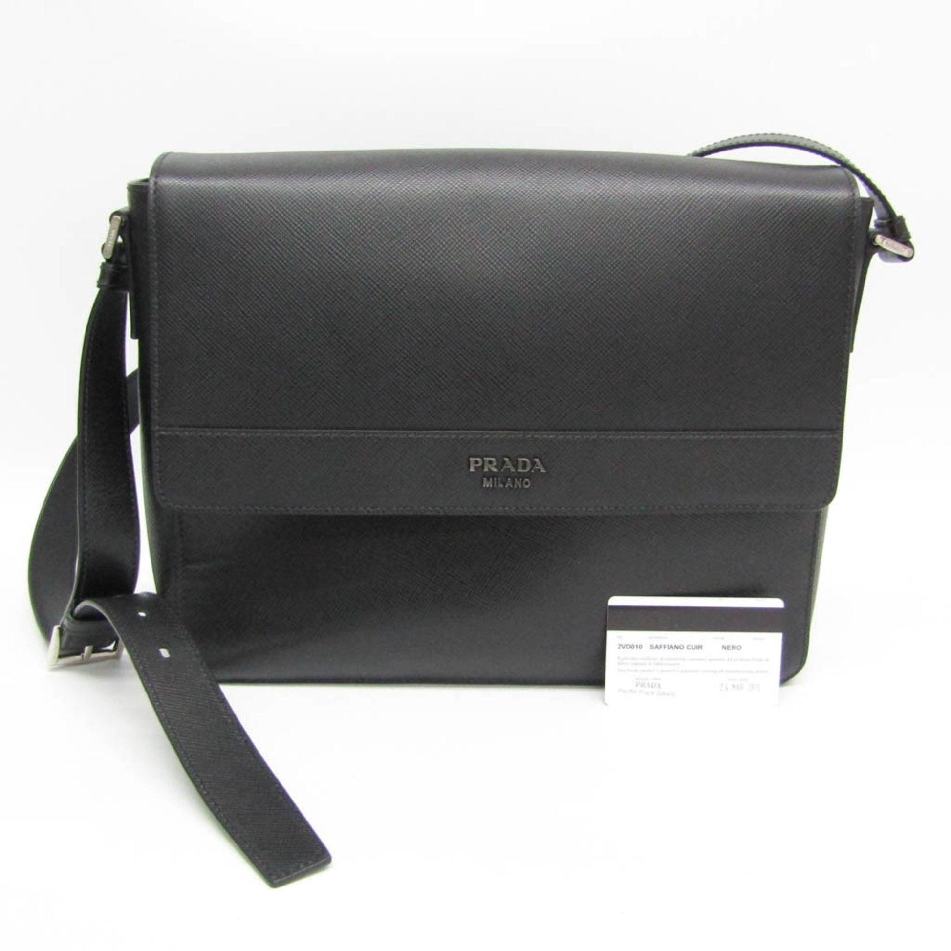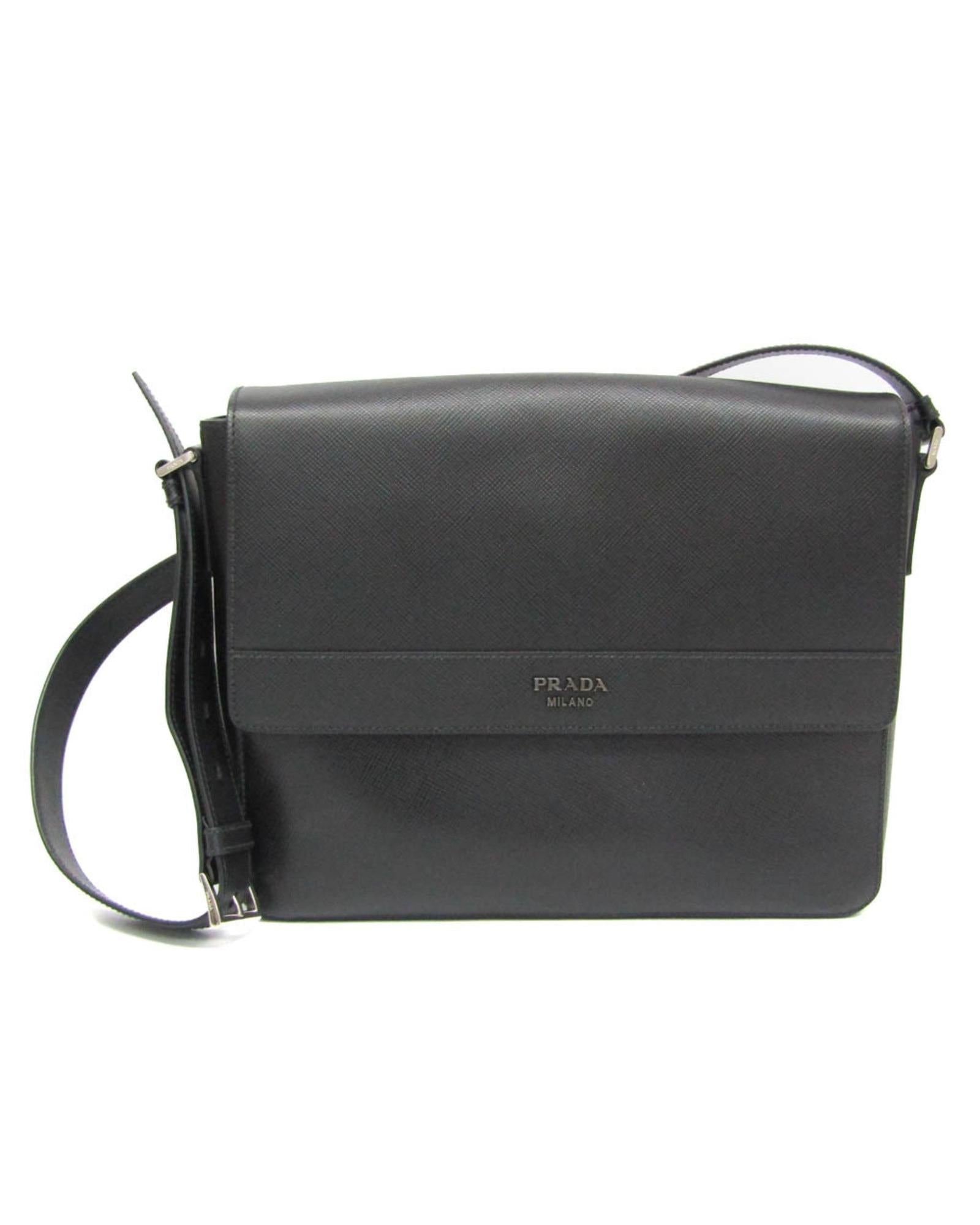 Brand: Prada Model: Saffiano Color: Black Material: Leather Inclusions: card Dimensions: 24.5cm x 32cm x 7.5cm Serial number: 56 Country of origin: Italy Condition: AB - good condition. The prestigious Prada brand from Italy and renowned for its excellence in leather goods presents its iconic Saffiano line. This shoulder bag for men made of black Saffiano leather embodies the elegance and refinement characteristic of the brand. However despite its distinguished appearance this Prada Saffiano bag has some slight imperfections. It can be observed that it is slightly dull and it also has slight scratches and stains. We recommend that you look at all the pictures before making your purchase to ensure that you are satisfied with the condition of the item.
