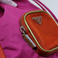 Brand: Prada Model: Tessuto Color: Pink Material: Synthetic Inclusions: Dust Bag Dimensions: W14cm x H20cm x D8cm Serial number: 31/28 Country of origin: Italy Condition: AB - good condition. Introducing the Prada Tessuto Pouch in a charming pink hue a delightful blend of style and practicality. Crafted from high-quality Nylon Tessuto this pouch exudes a sense of modern sophistication while offering durability and versatility. Its sleek design and vibrant color make it a standout accessory for any occasion whether it's a casual outing or a formal event. The bag's exterior shows a slight loss of shape with minimal rubbing on the handle and corners as well as slight scratches on the metal fittings. Inside there is also minimal rubbing present. We recommend that you look at all the photos before making your purchase to ensure that you are satisfied with the condition of the item.