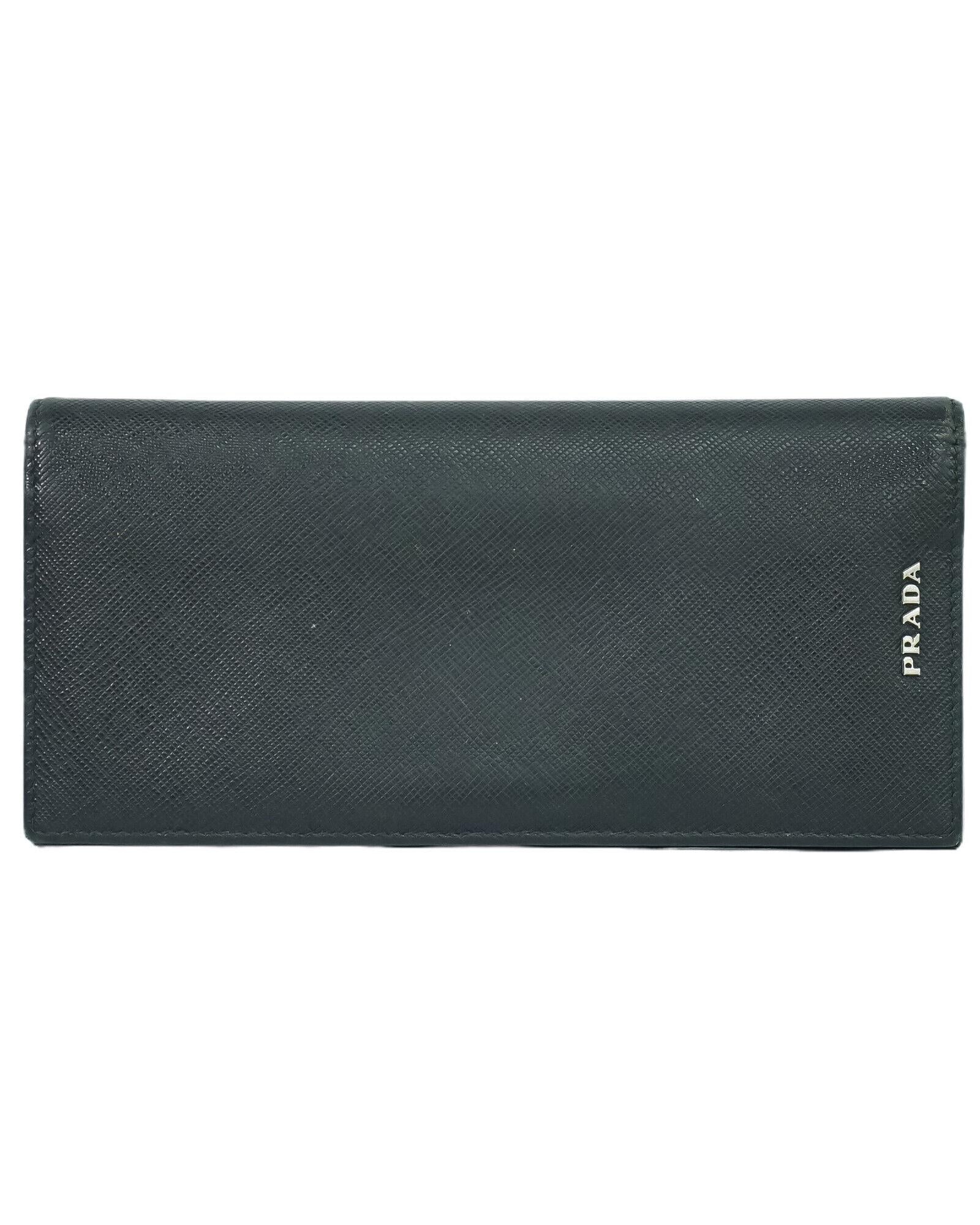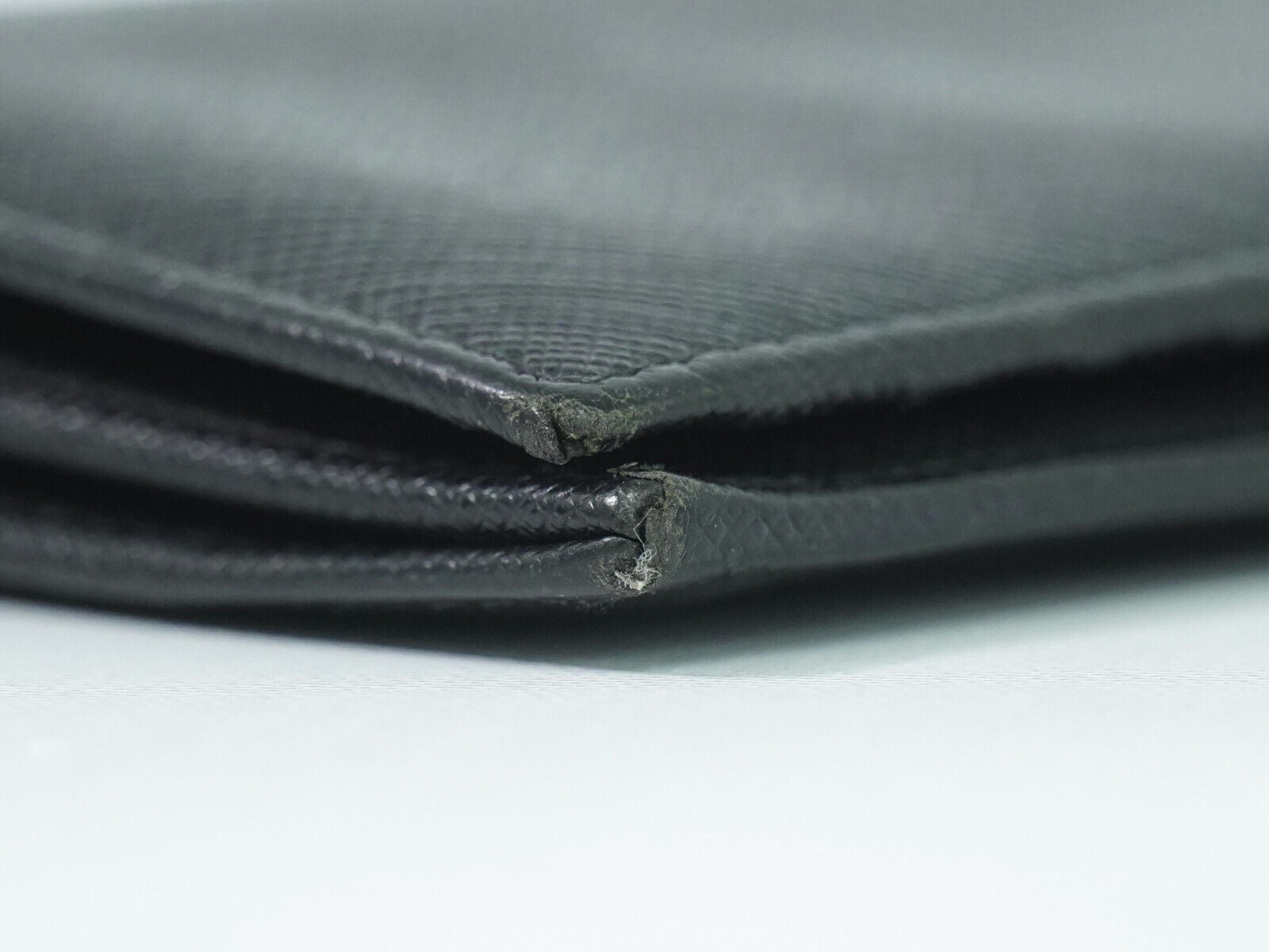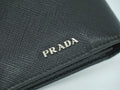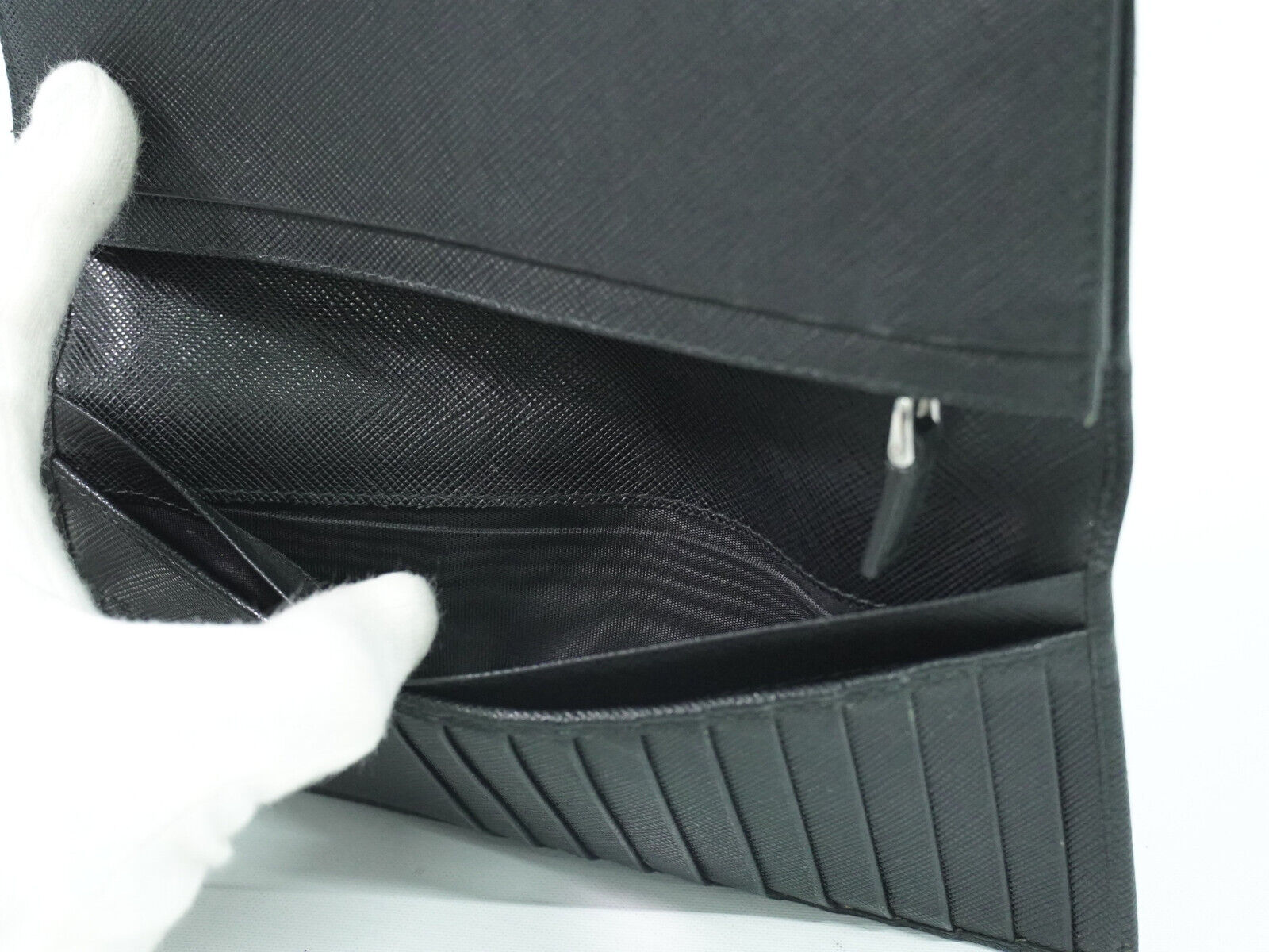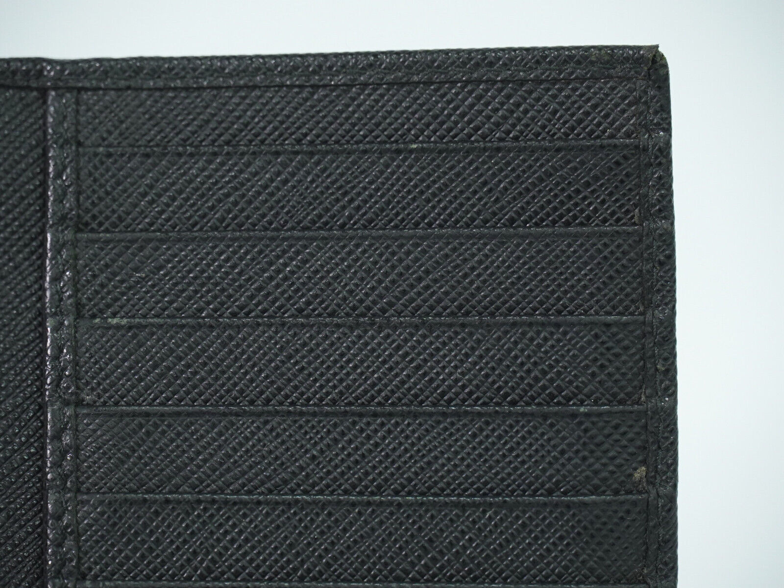 Brand: Prada Model: Saffiano Color: Black Material: Leather Inclusions: / Dimensions: W 9 x H 19 x D 1 cm Serial number: 181A Country of origin: Italy Condition: B - good condition. The Prada Saffiano bifold wallet in black leather combines elegance with practicality in a design suited for any gender. Made from the renowned Saffiano leather this long wallet features a textured finish that is both durable and stylish. Its bifold style offers a sleek profile while the well-organized interior includes multiple pockets for convenient storage of cards cash and other essentials. The exterior features wrinkles rubbing peeling and minor stains. The interior has slight rubbing minor stains card marks and additional rubbing and stains in the zipped pocket. The hardware shows slight scratches and a bit of tarnish. There is also a faint storage odor. We recommend that you look at all the photos before making your purchase to ensure that you are satisfied with the condition of the item.