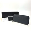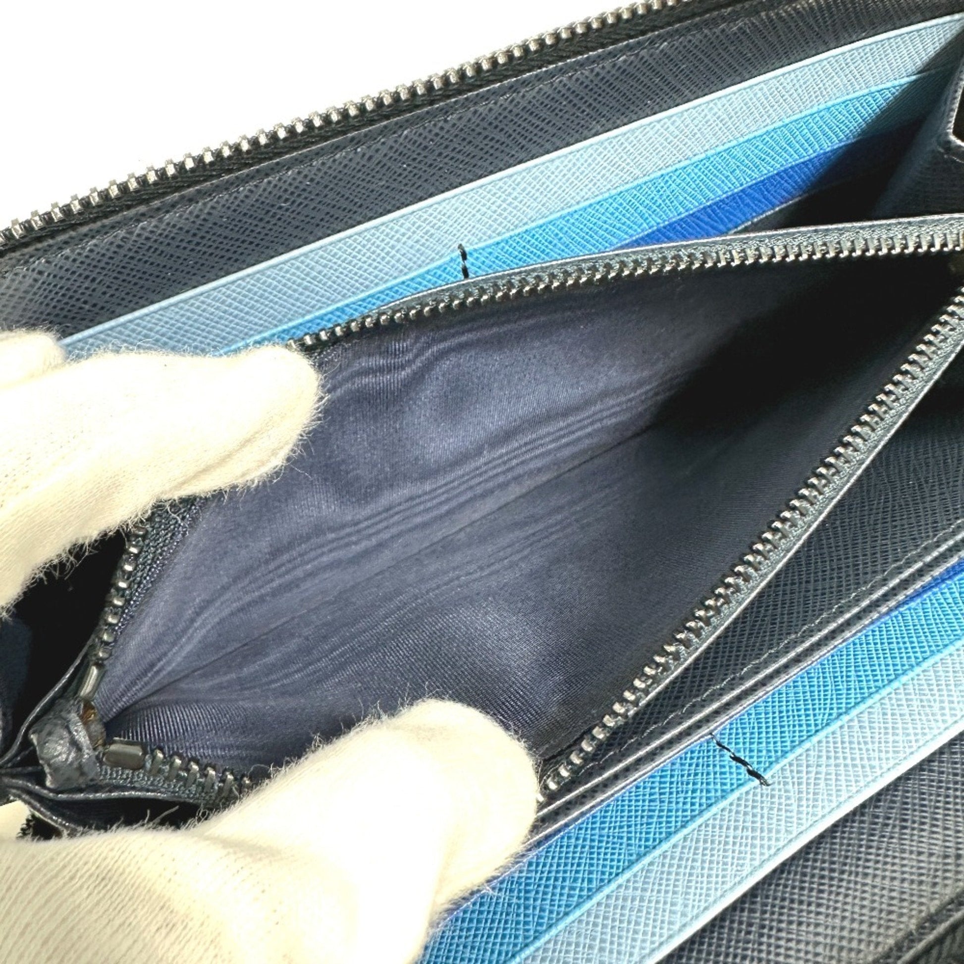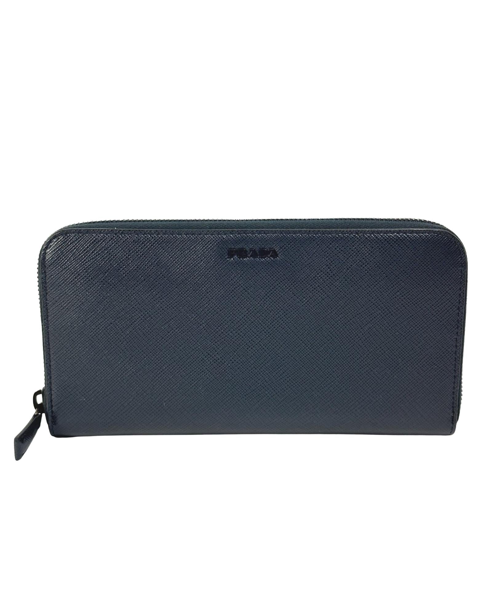 Brand: Prada Model: Color: Navy Material: Leather Inclusions: Box guarantee card Dimensions: W20cmxH10cm/W7.9xH3.9inch Serial number: None Country of origin: Italy Condition: AB - good condition. Outside : scratch Corners : A few scratch Inside : Stain Metal : Scuff
