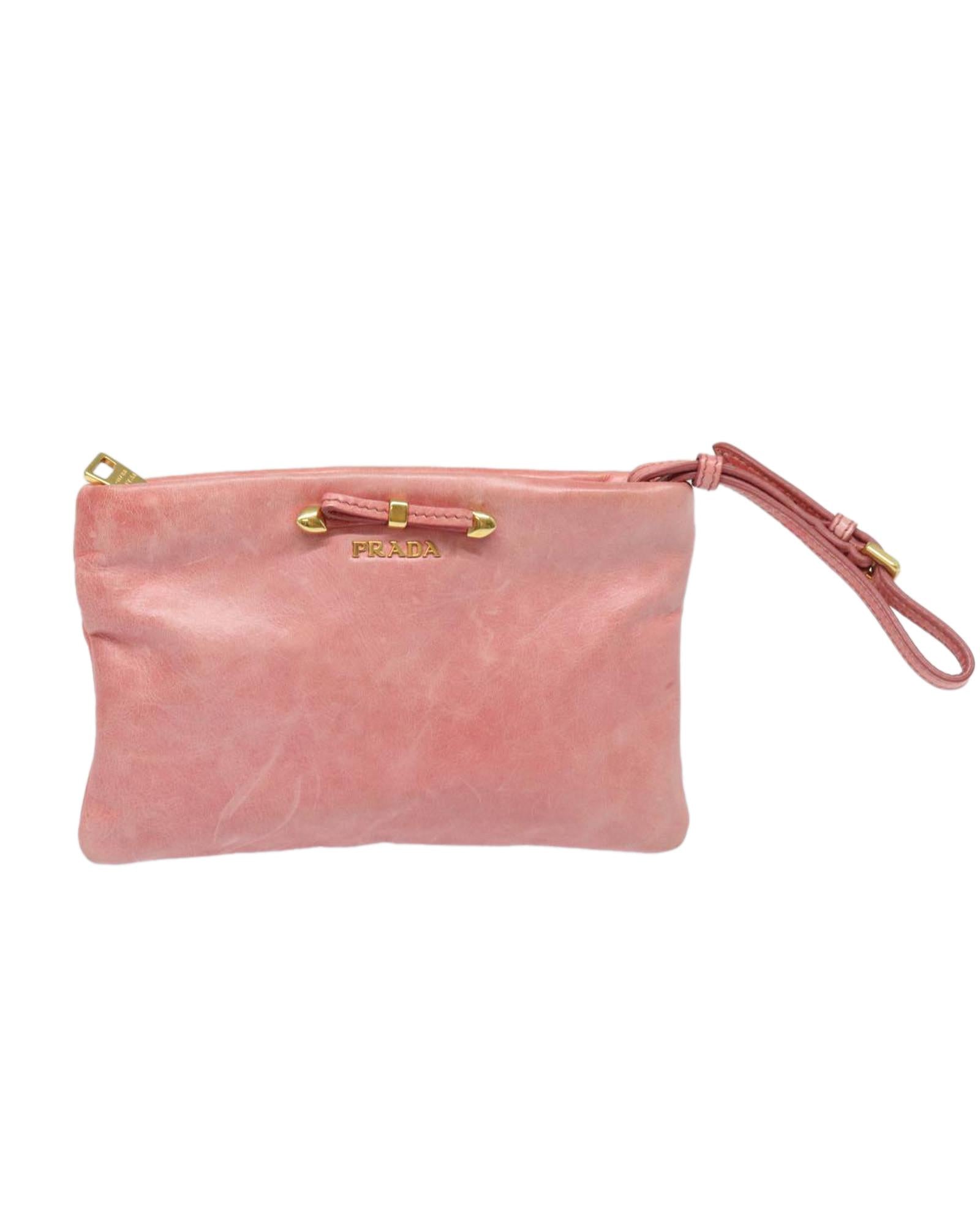 Brand: Prada Model: Saffiano Color: Pink Material: Leather Inclusions: / Dimensions: W21cm x H13cm Serial number: 7 Country of origin: Italy Condition: B - good condition. This Prada Saffiano pouch in pink leather is a stylish accessory for women crafted in Italy. Its elegant design and luxurious material make it a versatile addition to any wardrobe. The exterior shows some loss of shape with rubbing and staining at the corners. The metal fittings have slight scratches and the inside of the pouch exhibits rubbing. We recommend that you look at all the pictures before making your purchase to ensure that you are satisfied with the condition of the item.