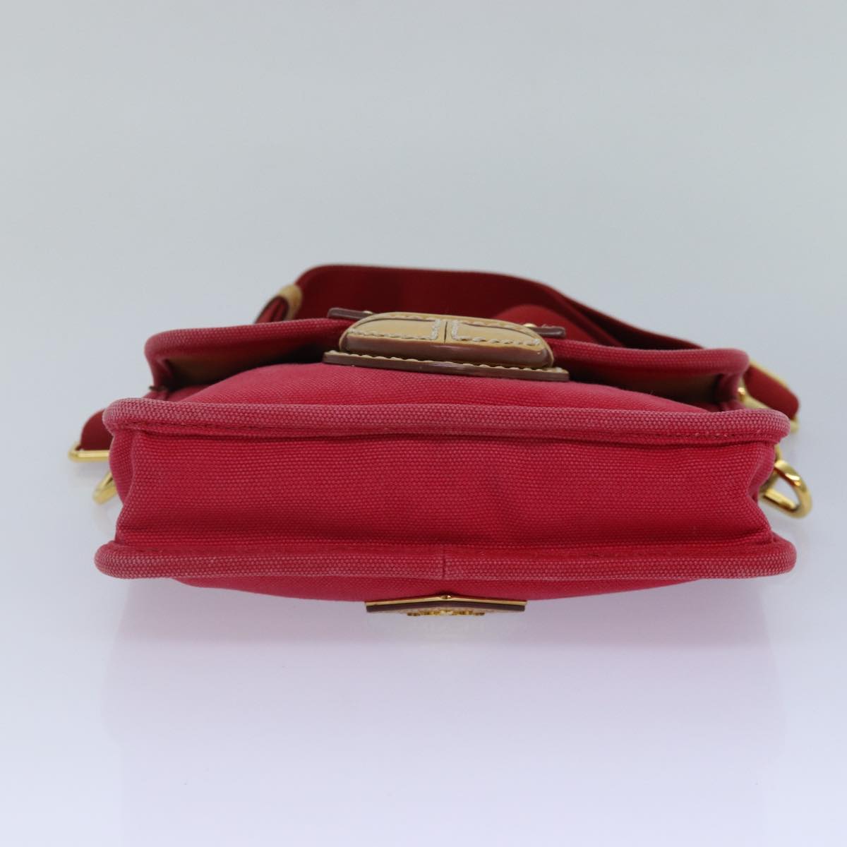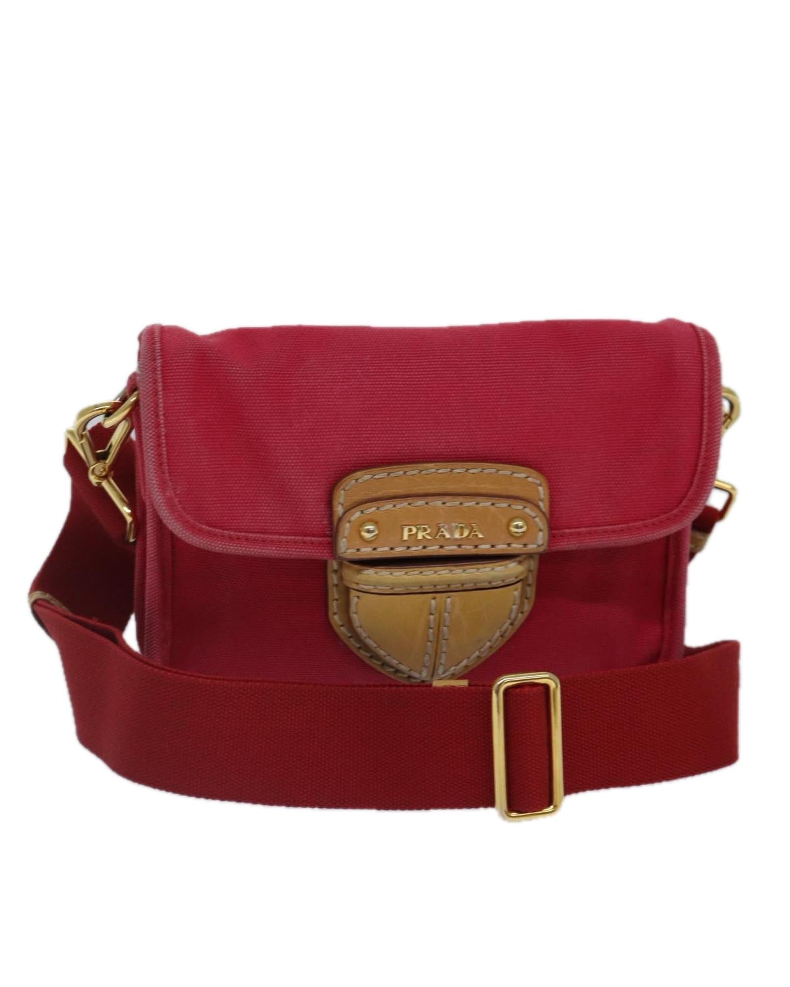 Brand: Prada Model: Color: Red Material: Canvas Inclusions: Dust Bag Dimensions: W21cm x H16cm x D5cm Serial number: 208 Country of origin: Italie Condition: B - good condition. Prada is an Italian luxury fashion house founded in 1913 by Mario Prada. The brand is known for its high-quality products including leather goods accessories shoes and ready-to-wear. The Prada logo usually features the brand name in capital letters and the characteristic inverted triangle.If you're looking for a bag that is both practical and elegant this PRADA bag is perfect for you! Its captivating beauty effortlessly charms fashion enthusiasts especially women. The exterior surface shows a loss of shape and signs of rubbing. The shoulder strap also exhibits rubbing. The metal fittings have scratches. Inside there is rubbing along with a slight stain. The pocket displays rubbing and a slight stain as well. The corners show signs of rubbing. Additionally there is a persistent storage smell. We recommend that you look at all the photos before making your purchase to ensure that you are satisfied with the condition of the item.