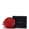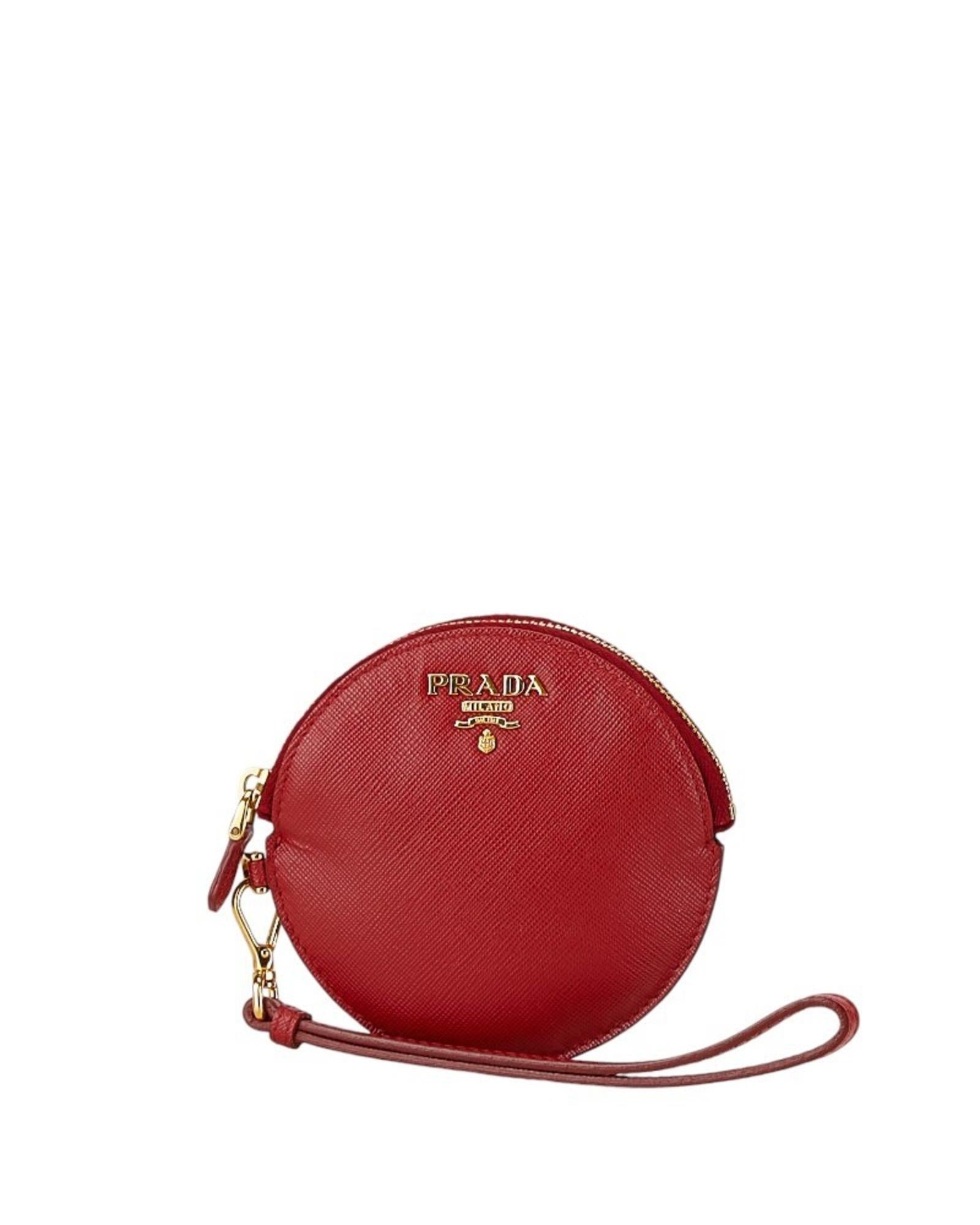 Brand: Prada Model: Saffiano Color: Red Material: Leather Inclusions: Box Dimensions: 11cm x 11cm x 3.00mm / 4.33'' x 4.33'' x 0.11'' Serial number: 42 Country of origin: Italy Condition: AB - good condition. Hardware: minor discoloration Inside: minor stain