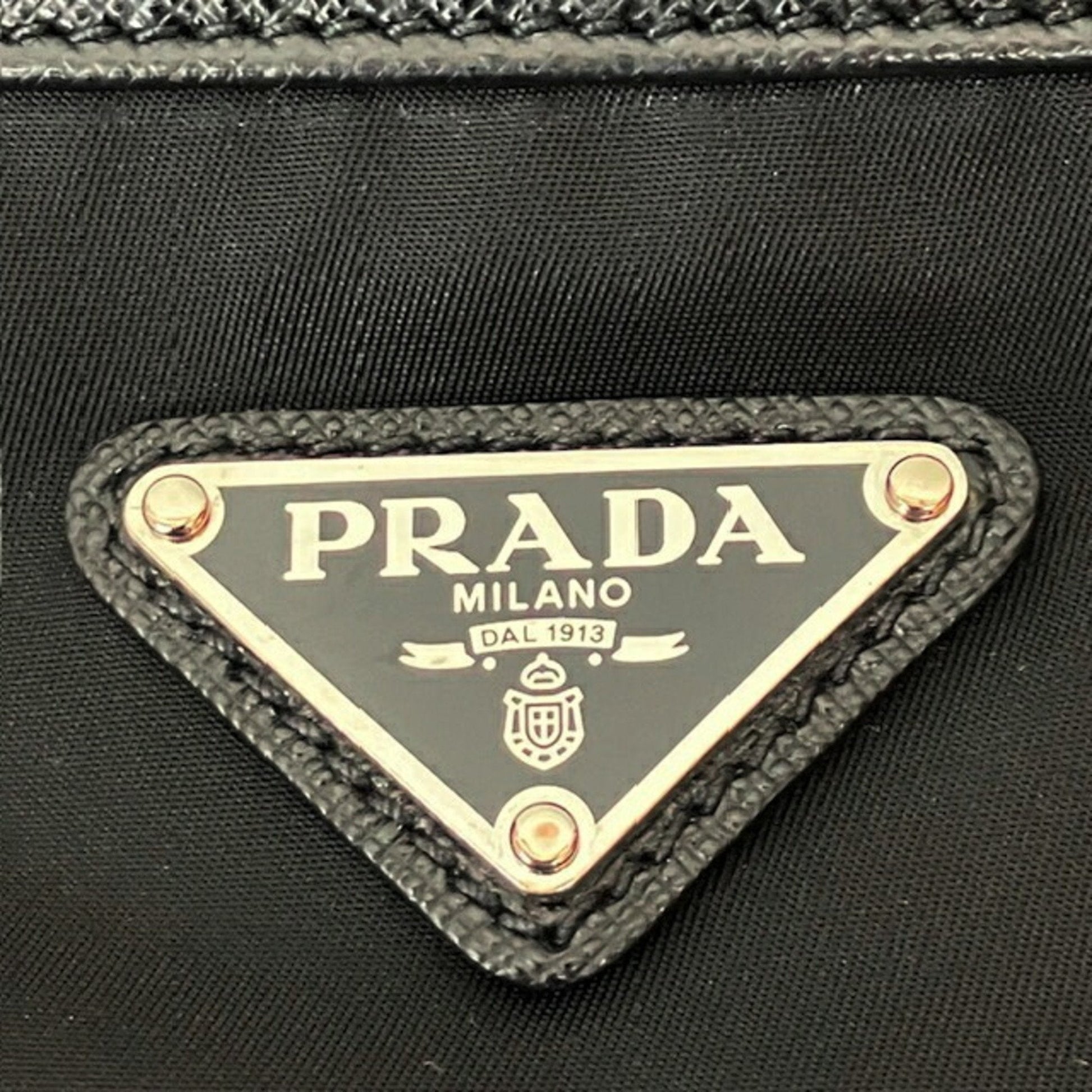 Brand: Prada Model: Color: Black Material: Synthetic Inclusions: None Dimensions: 25cm x 27cm x 6cm / 9.84'' x 10.62'' x 2.36'' Serial number: None Country of origin: Italy Condition: AB - good condition. Outside condition?:?Overall Stain Inside condition?:?Stain Handle condition?:?Lint balls Corner condition?:?Scuff Metal fittings condition?:?Scratch