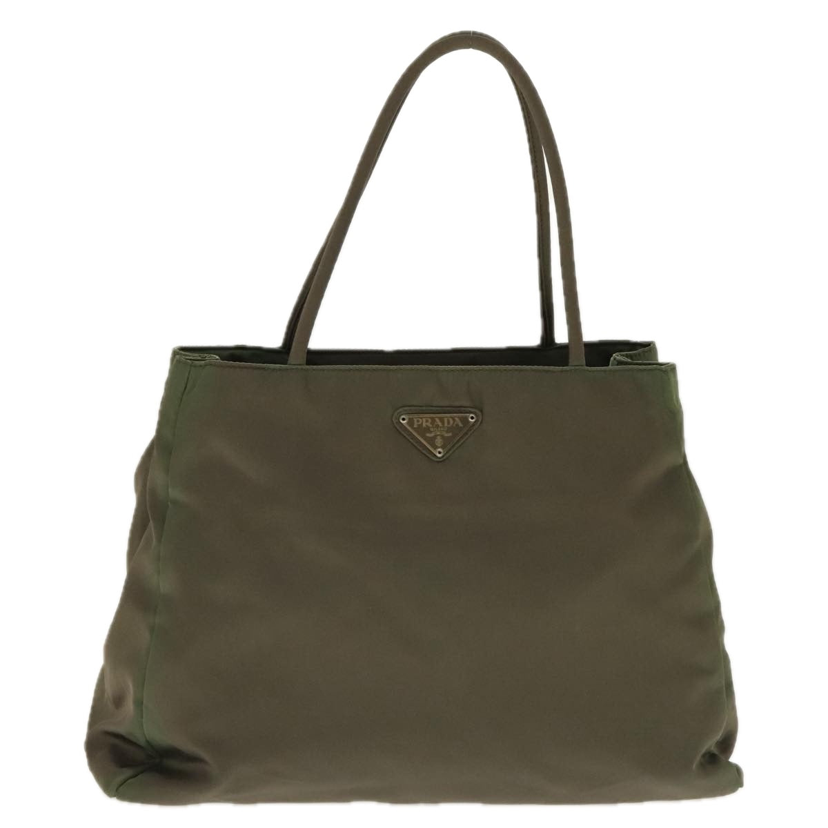 Brand: Prada Model:  Color: Khaki Material: Synthetic Inclusions:  Dimensions: W32cm x H25cm x D12cm(Approx) Serial number: 59 Country of origin: Italy Condition: B - good condition. Outside condition?:?ose shape  rubbing  slight stain  discoloration  Inside condition?:?rubbing Handle condition?:?rubbing Corner condition?:?rubbing Metal fittings condition?:?scratches  slight rust  Odor : There is keeping(storage) smell.