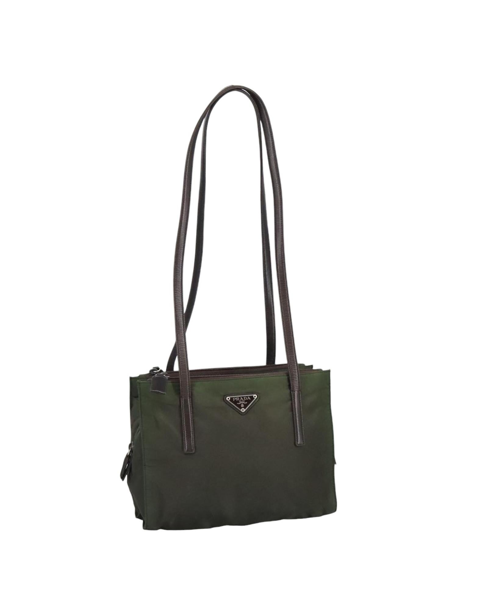 Brand: Prada Model: Color: Khaki Material: Synthetic Inclusions: Dimensions: W25cm x H19cm x D8cm/ Shoulder Drop:36cm Serial number: 22 Country of origin: Italy Condition: AB - good condition. Outside condition?:?lose shape rubbing slight stain Inside condition?:?rubbing Handle condition?:?rubbing Corner condition?:?rubbing Metal fittings condition?:?scratches Odor : There is keeping(storage) smell.