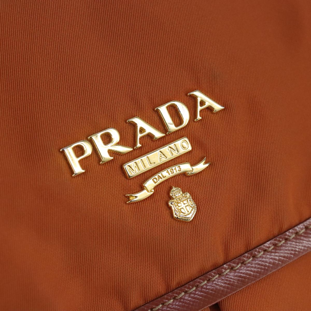 Brand: Prada Model: Re-Nylon Color: Orange Material: Synthetic Inclusions: Dimensions: W26cm x H23cm x D11cm / Shoulder Drop:50 - 55cm Serial number: 172 Country of origin: Italy Condition: AB - good condition. Outside condition?:?lose shape slight rubbing stain Inside condition?:?rubbing Handle condition?:?rubbing Corner condition?:?rubbing Metal fittings condition?:?scratches Odor : There is keeping(storage) smell.