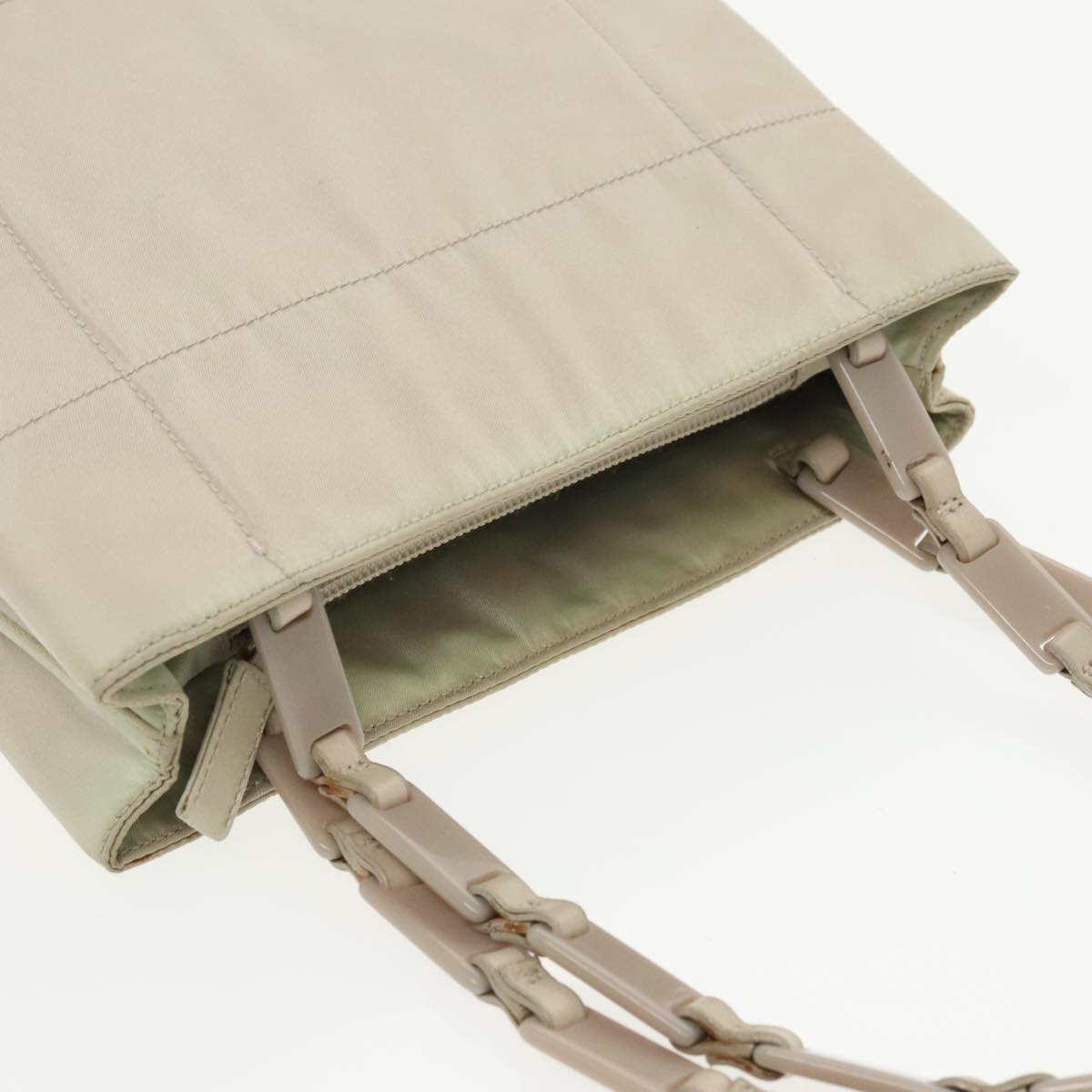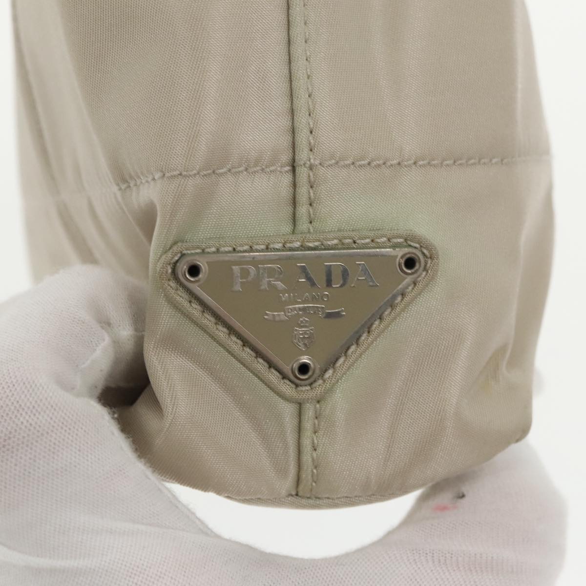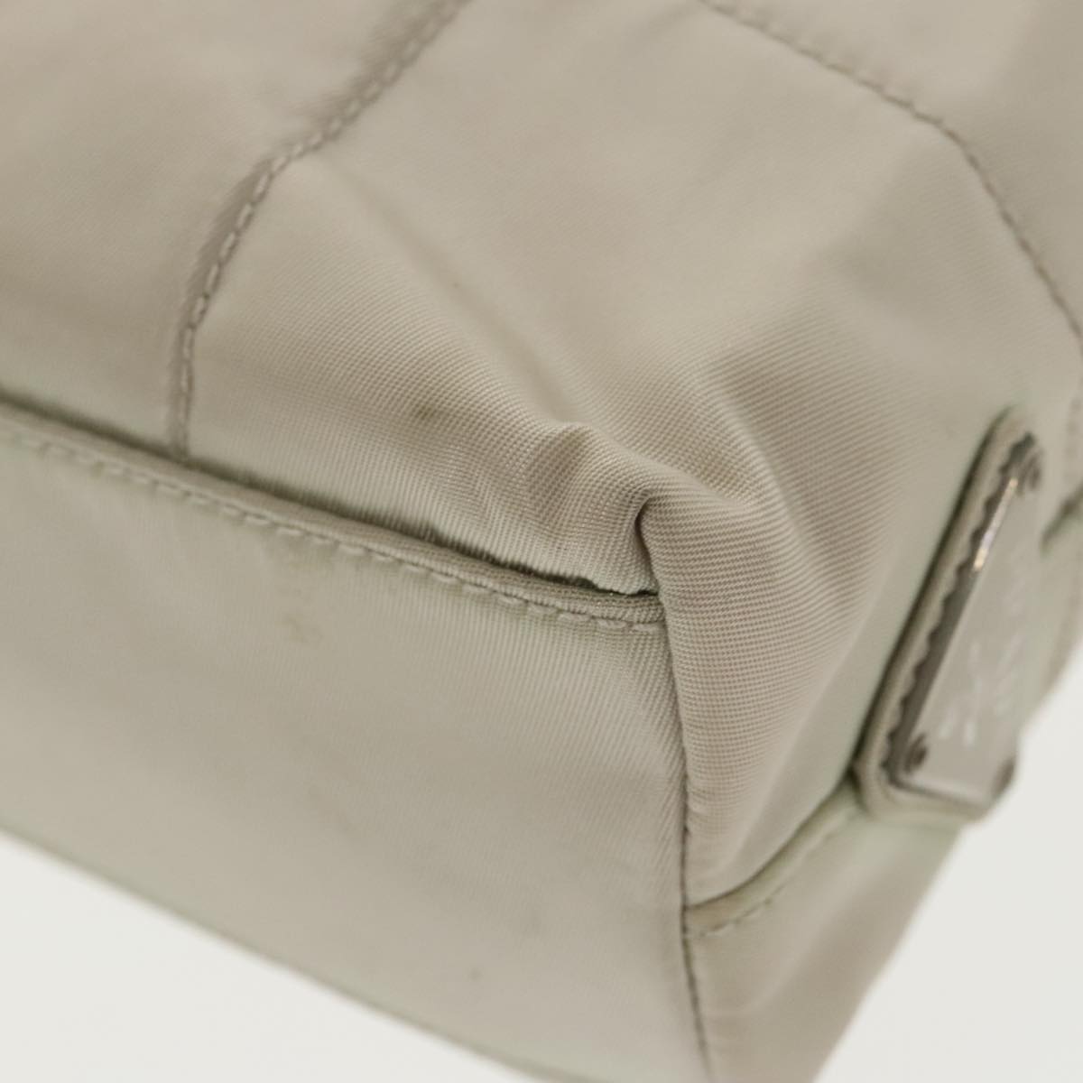 Brand: Prada Model: -- Color: Beige Material: Canvas Inclusions: Dimensions: W 22 cm x H 20 cm x D 6 cm Serial number: 53 Country of origin: Italy Condition: B - good condition. Outside condition?:?Slight misshapen slight scuff slight rusty Inside condition?:?Slight dirt Handle condition?:?Rubbing Corner condition?:?Slight warp Metal fittings condition?:?Slight scratches