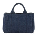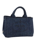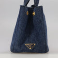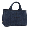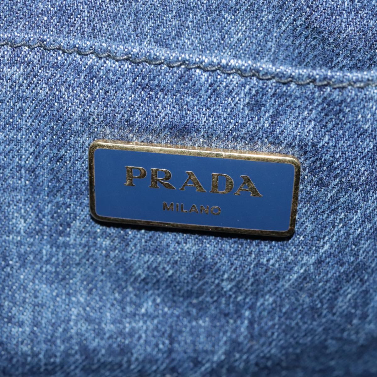 Brand: Prada Model: Canapa Color: Navy Material: Denim - Jeans Inclusions: Dust Bag / Guarantee Card Dimensions: W 28 cm x H 18 cm x D 14 cm Serial number: 197/B Country of origin: Turkey Condition: AB - good condition. Outside condition?:?slight lose shape rubbing Inside condition?:?slight rubbing Handle condition?:?slight rubbing Corner condition?:?slight rubbing Metal fittings condition?:?slight scratches Odor : There is keeping(storage) smell.