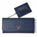 Brand: Prada Model: Color: Blue Material: Leather Inclusions: Box Guarantee card Dimensions: 9cm x 19cm x 2cm / 3.54'' x 7.48'' x 0.78'' Serial number: None Condition: A - excellent condition. not specify