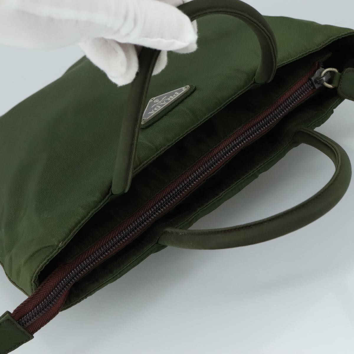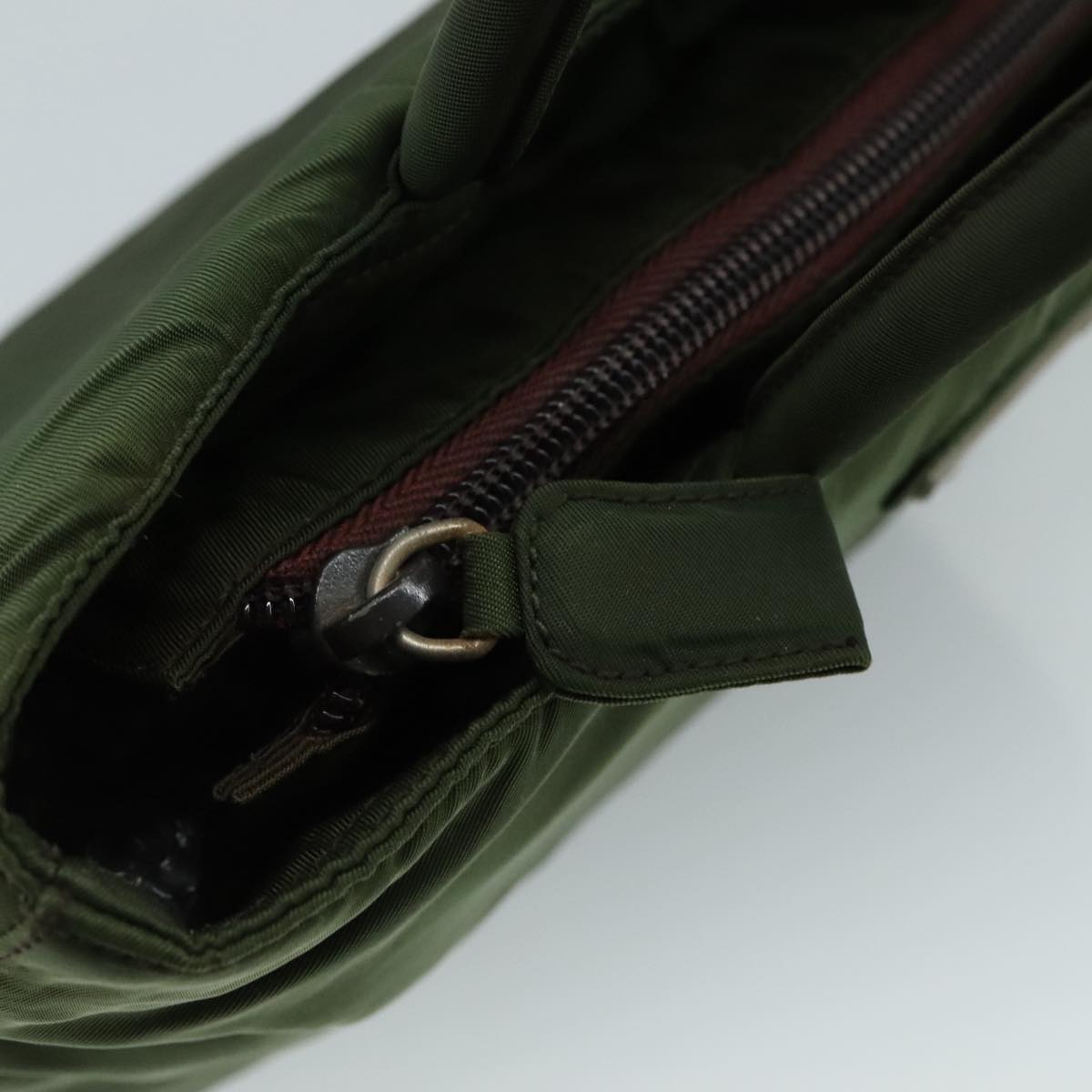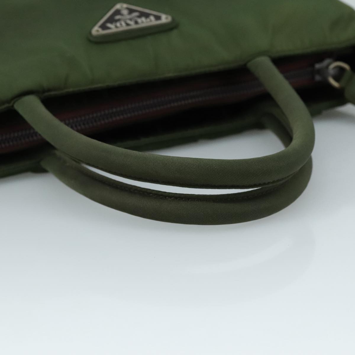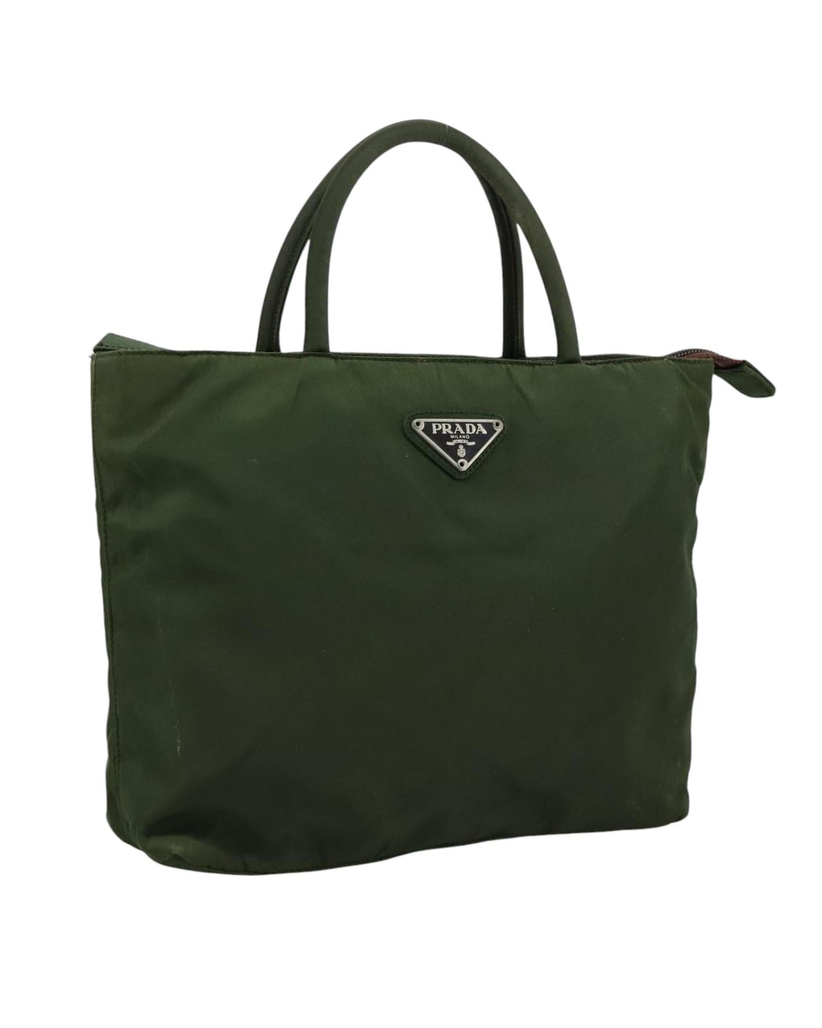 Brand: Prada Model: Color: Khaki Material: Synthetic Inclusions: Dimensions: W22cm x H20cm x D6cm(Approx) / Handle Drop 10cm(Approx) Serial number: 98 Country of origin: Italy Condition: B - good condition. Outside condition?:?lose shape rubbing stain discoloration Inside condition?:?rubbing Handle condition?:?rubbing stain Corner condition?:?rubbing Metal fittings condition?:?scratches painting off Odor : There is keeping(storage) smell.