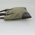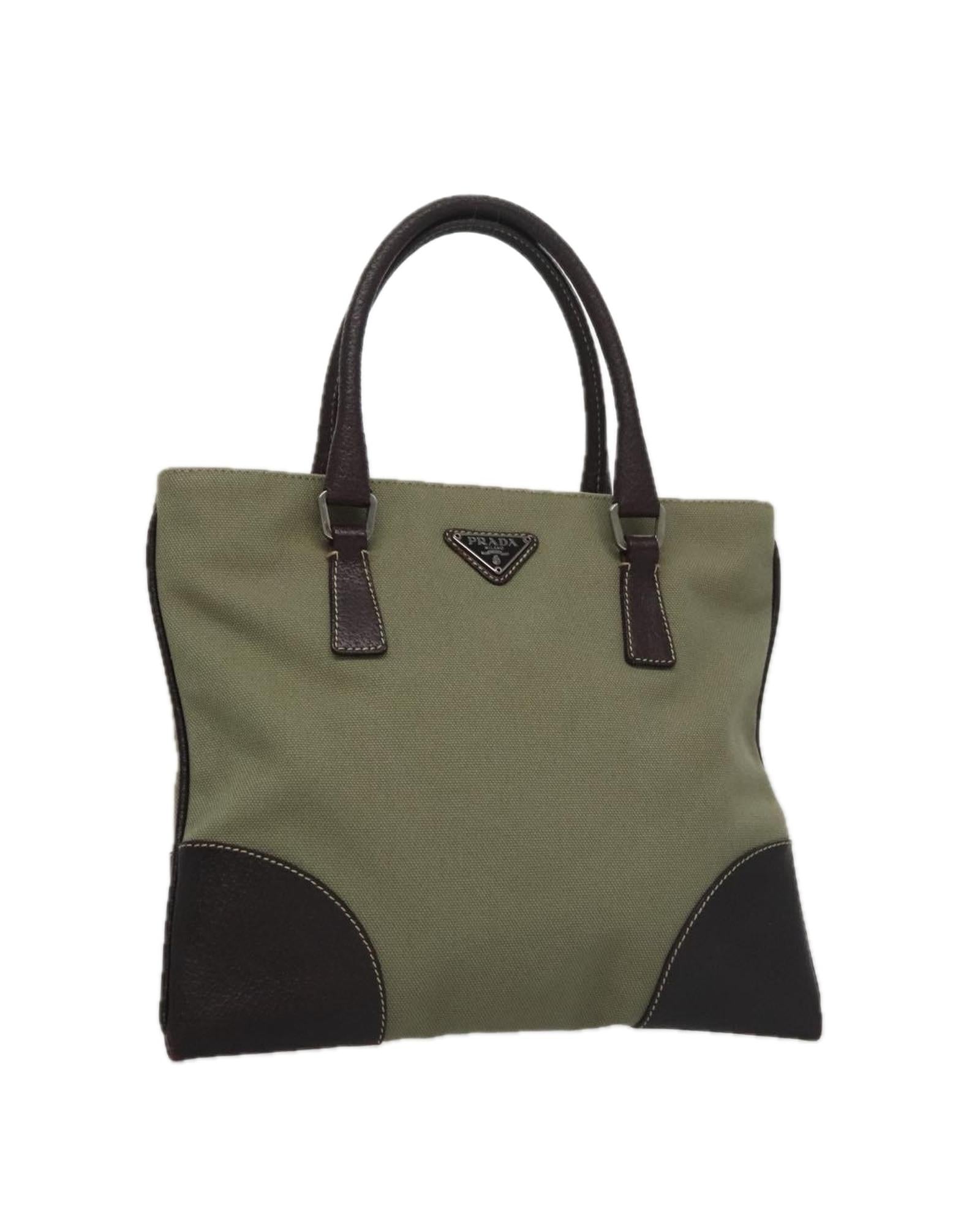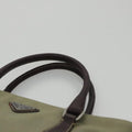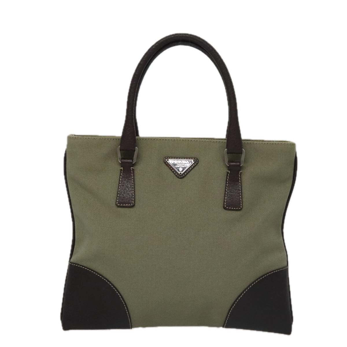 Brand: Prada Model:  Color: Khaki Material: Canvas Inclusions: Guarantee Card Dimensions: W25cm x H21cm Handle Drop 11cm Serial number: 31 Country of origin: Italy Condition: AB - good condition. Outside condition?:?lose shape  rubbing  slight stain Inside condition?:?rubbing Handle condition?:?rubbing  slight scratches Corner condition?:?rubbing  slight shaved Metal fittings condition?:?scratches Odor : There is keeping(storage) smell.