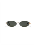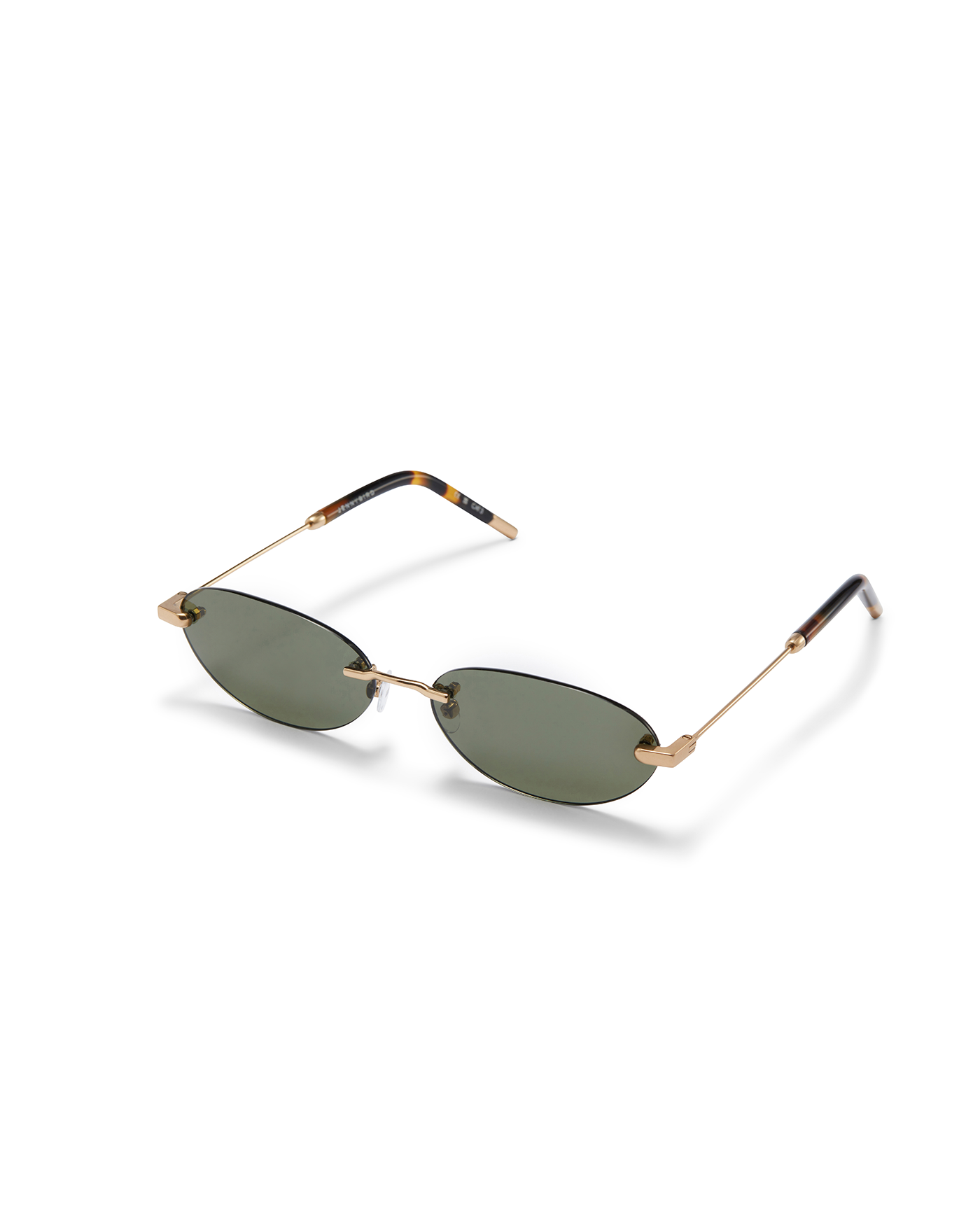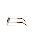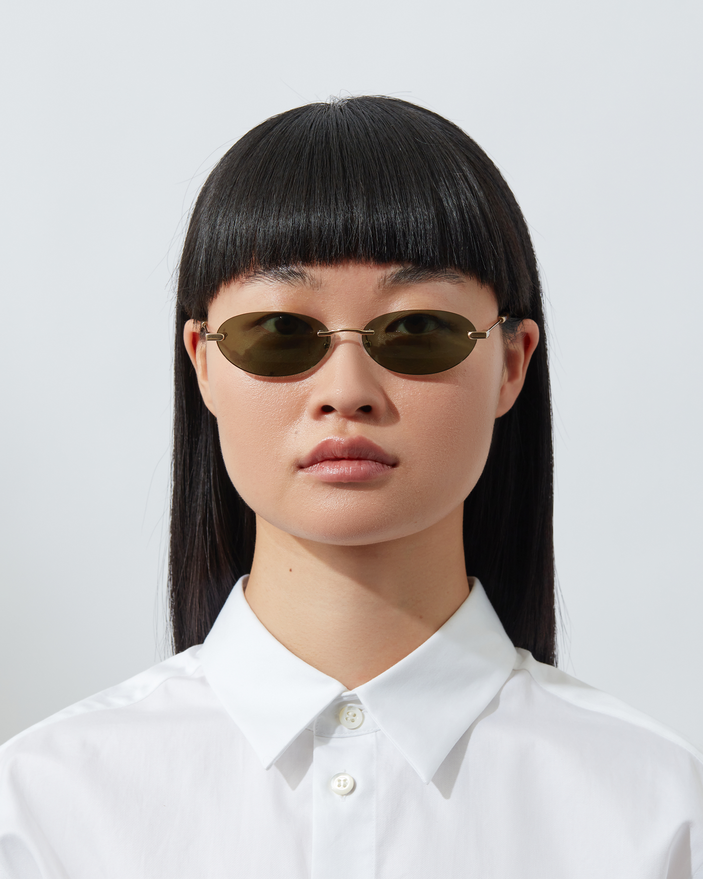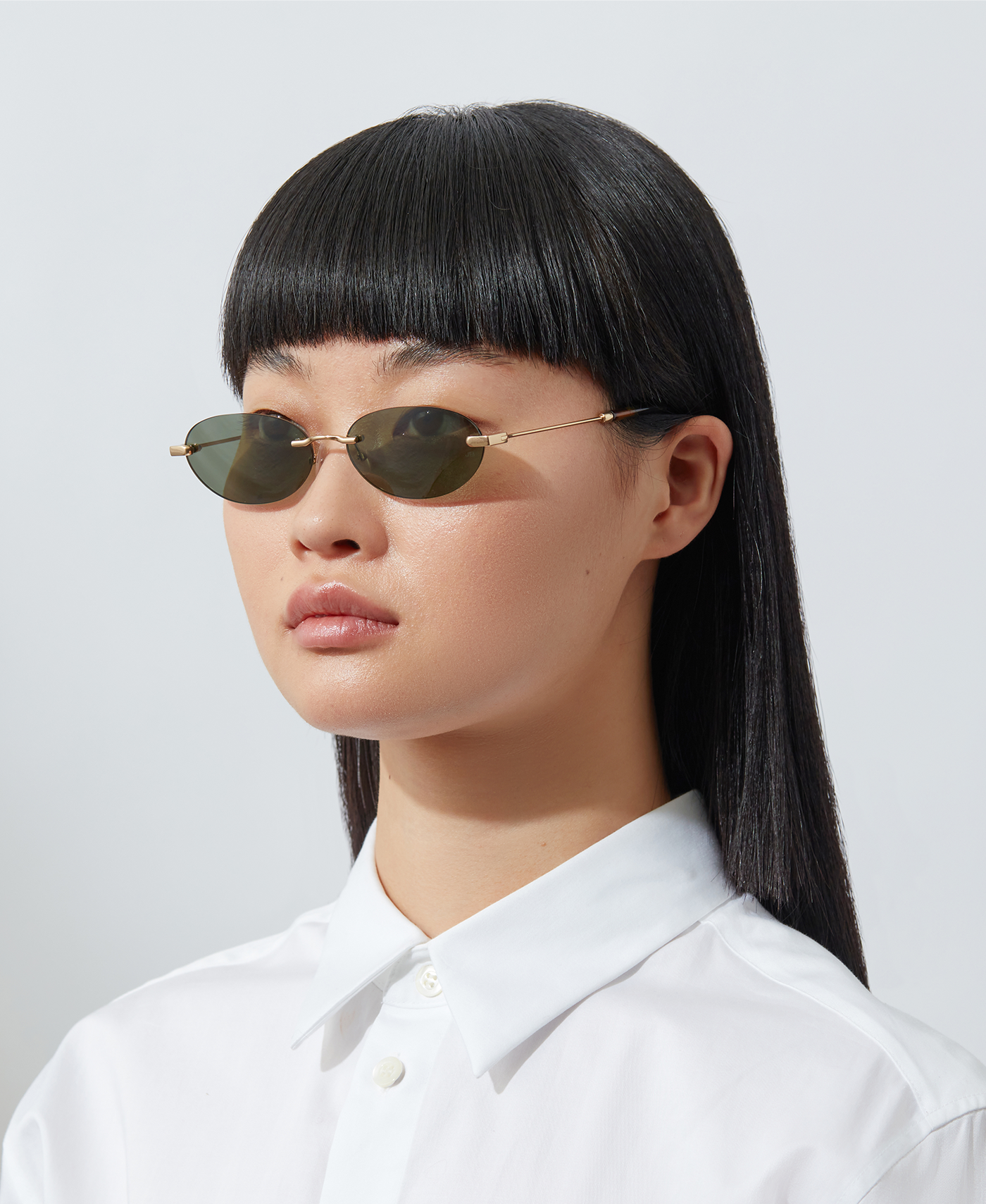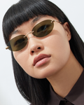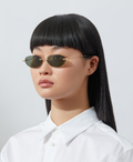 A '90s-inspired oval silhouette with a rimless-structure. These light frames are balanced by fine tubular temples and copper tips.