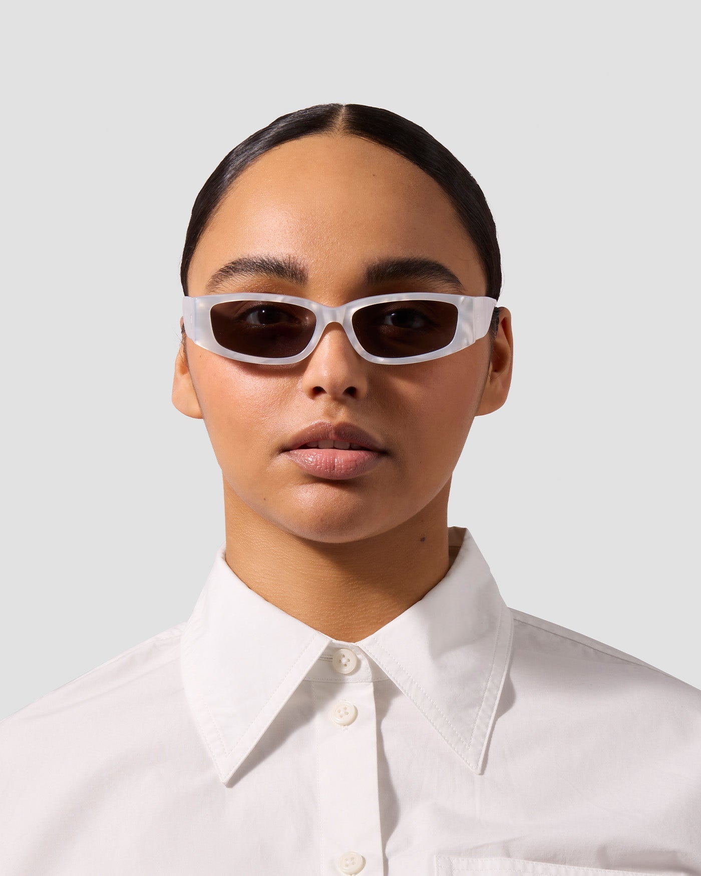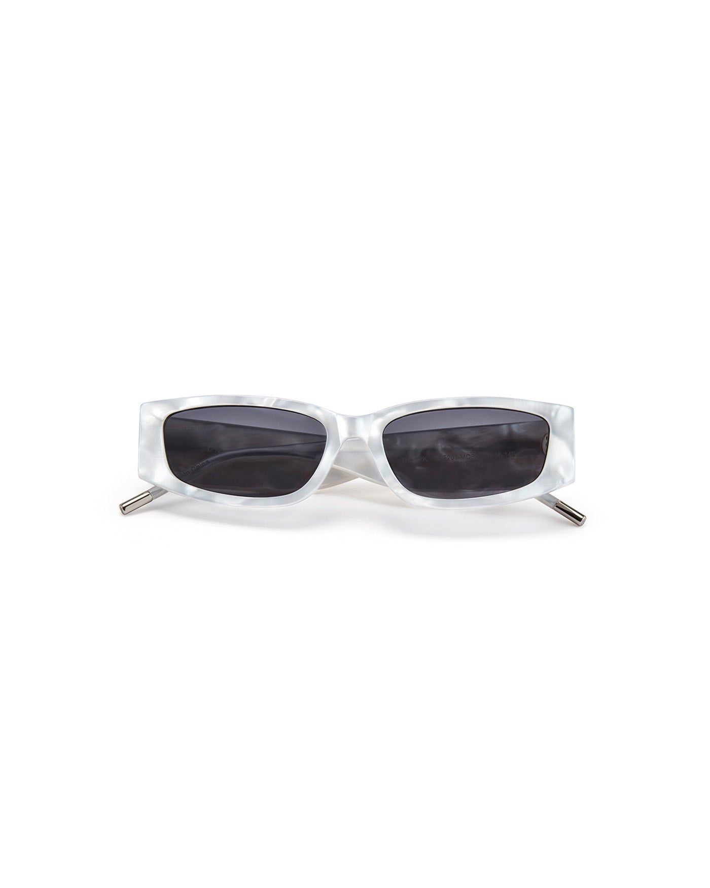 A '90s-inspired slim rectangular frame with a modern, flat profile. These light frames are hand-crafted from biodegradable acetate and have a comfortable fit. The temples are finished with branded metal tips.
