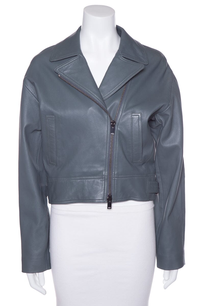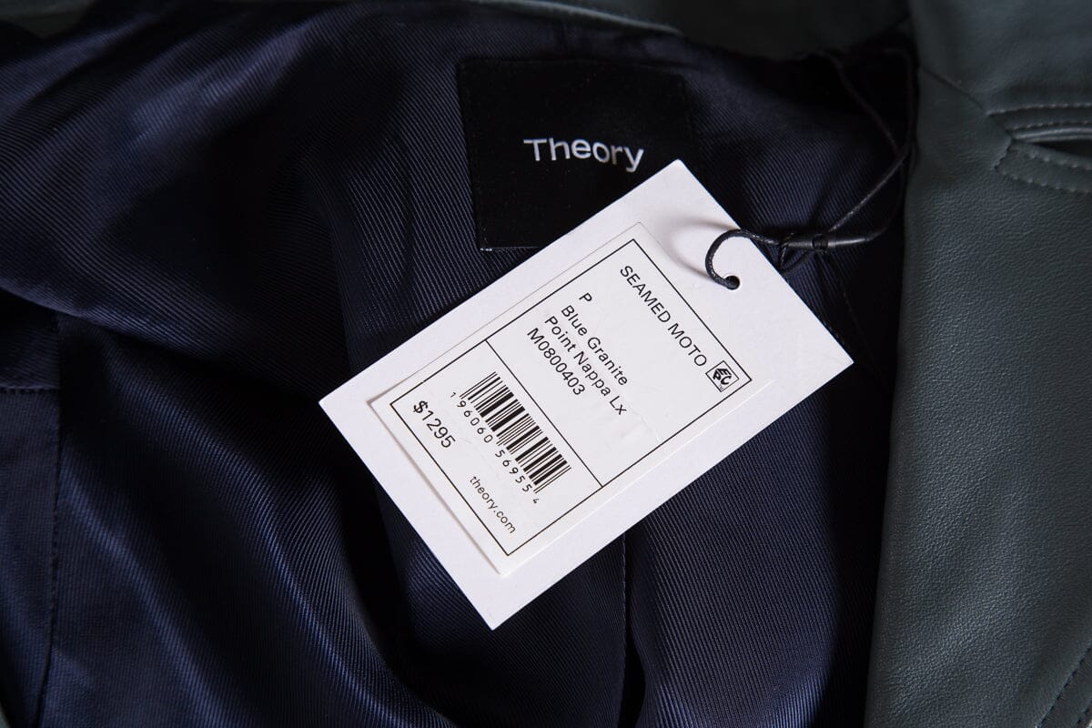 Theory Blue Granite Leather Moto Jacket SZ P NWT