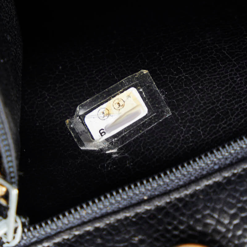 This Timeless CC Caviar Tote Bag features a Black Caviar leather.