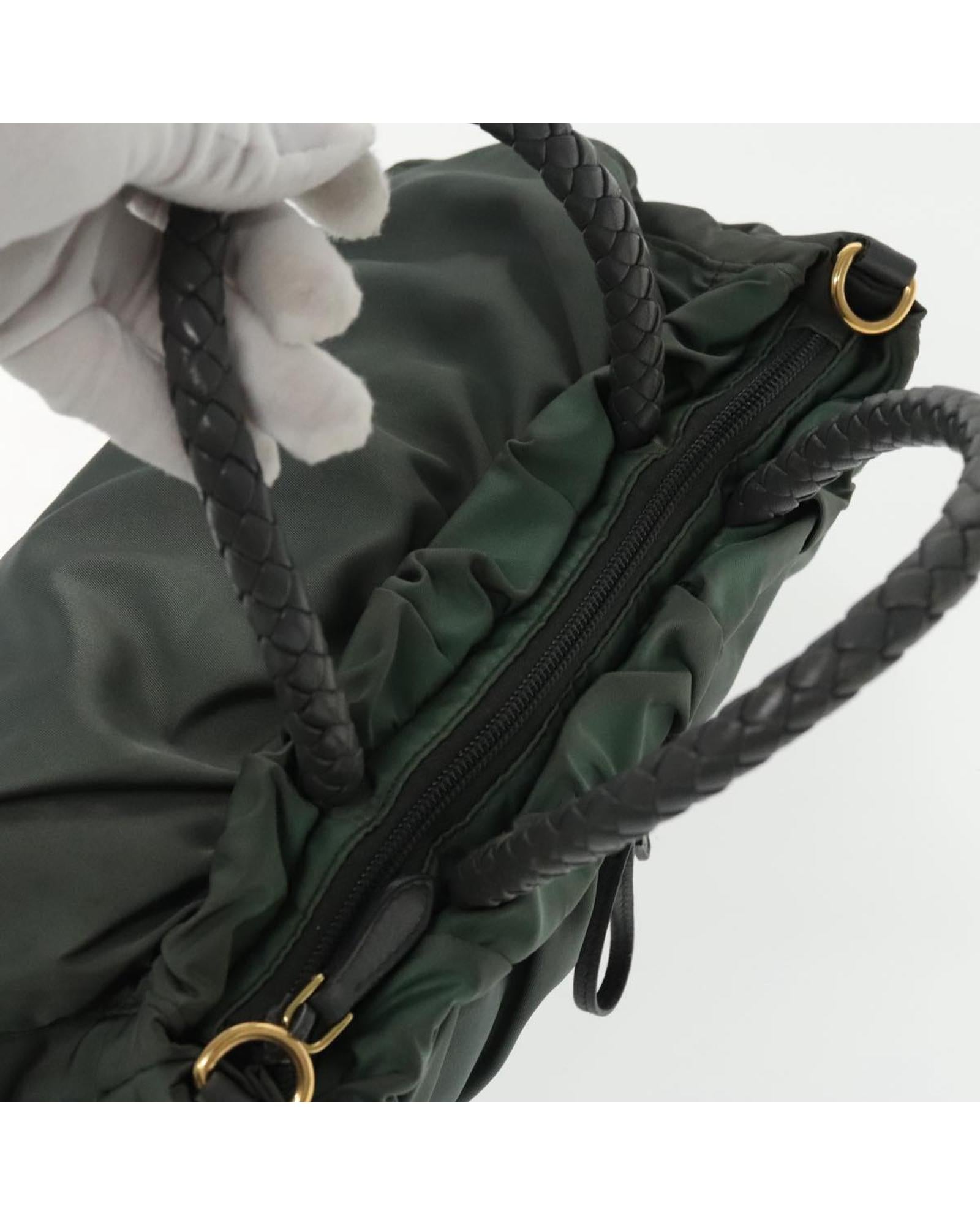 Nylon 2way Hand Bag with Gold-Tone Hardware