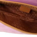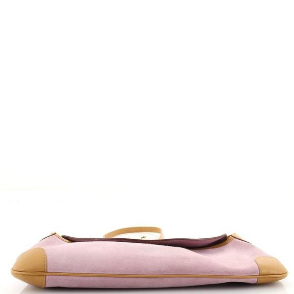 Inside, it has one, large interior compartment with a zip pocket. The bag has a lining with the tan, square Gucci logo print that is very clean! It is vintage, but the exterior is in gorgeous condition- see pictures. There's very little wear on the leather or suede- the owner took excellent care of this purse. Because the suede is a lighter color, it could use cleaning, but there are no stains, spots, rips, or tares. The purse has serial #001.4113.2123 behind the Gucci leather tag. It is rare Gucci style, very desirable, and will always be in style!